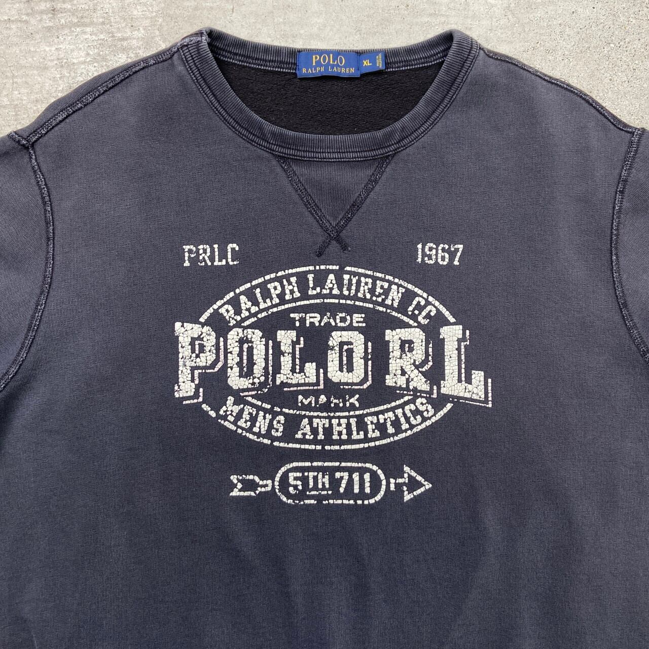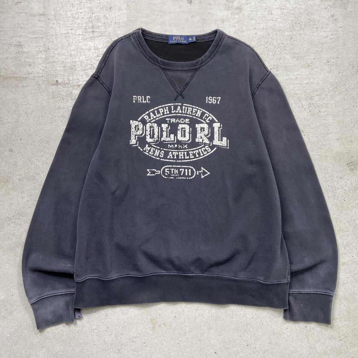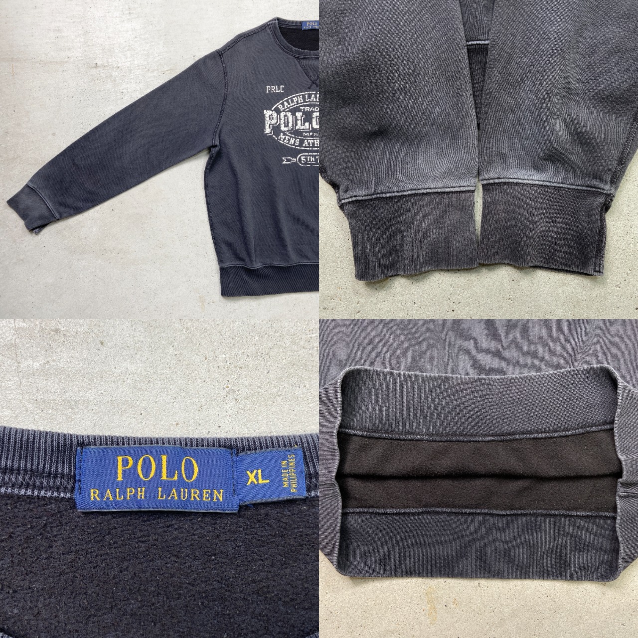 ■Polo Ralph Lauren ポロラルフローレン スウェットシャツ ロゴプリント メンズXL 古着 前Vガゼット フェードブラック 墨黒【スウェットシャツ】/ブラック