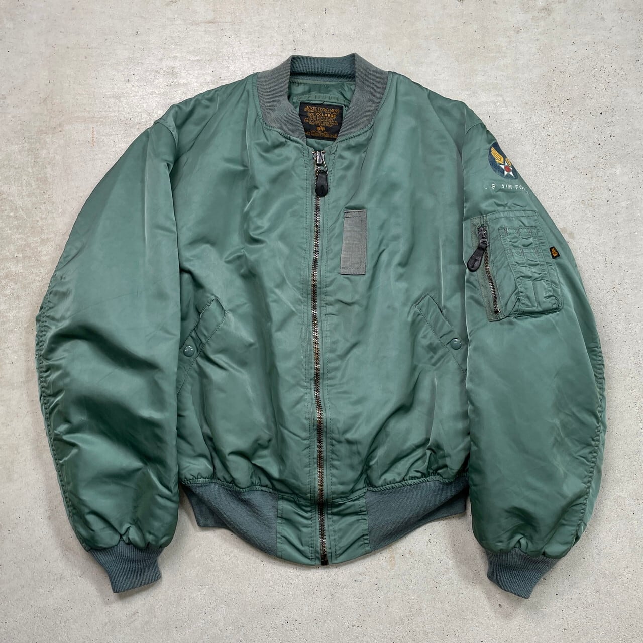 ■90年代 50s復刻 ALPHA MA-1 ミリタリー フライトジャケット 初期型 民間品 メンズ2XL 古着 90s 中綿入り VINTAGE ヴィンテージ ボンバージャケット ステンシル入り USAF セージグリーン オリーブグリーン ビッグサイズ 大きいサイズ【ミリタリージャケット】/カーキグリーン
