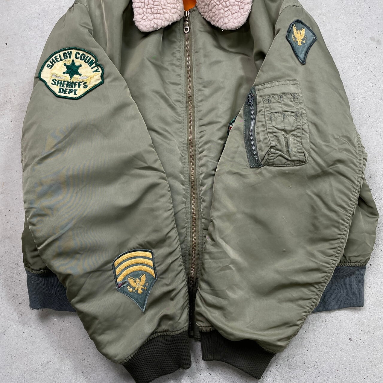 90年代 USA製 カスタム ALPHA MA-1 ミリタリー フライトジャケット 民間品 メンズ2XL 古着 90s 中綿入り VINTAGE ヴィンテージ アルファインダストリーズ ボンバージャケット オリーブグリーン セージグリーン ビッグサイズ 大きいサイズ【ミリタリージャケット】/カーキグリーン
