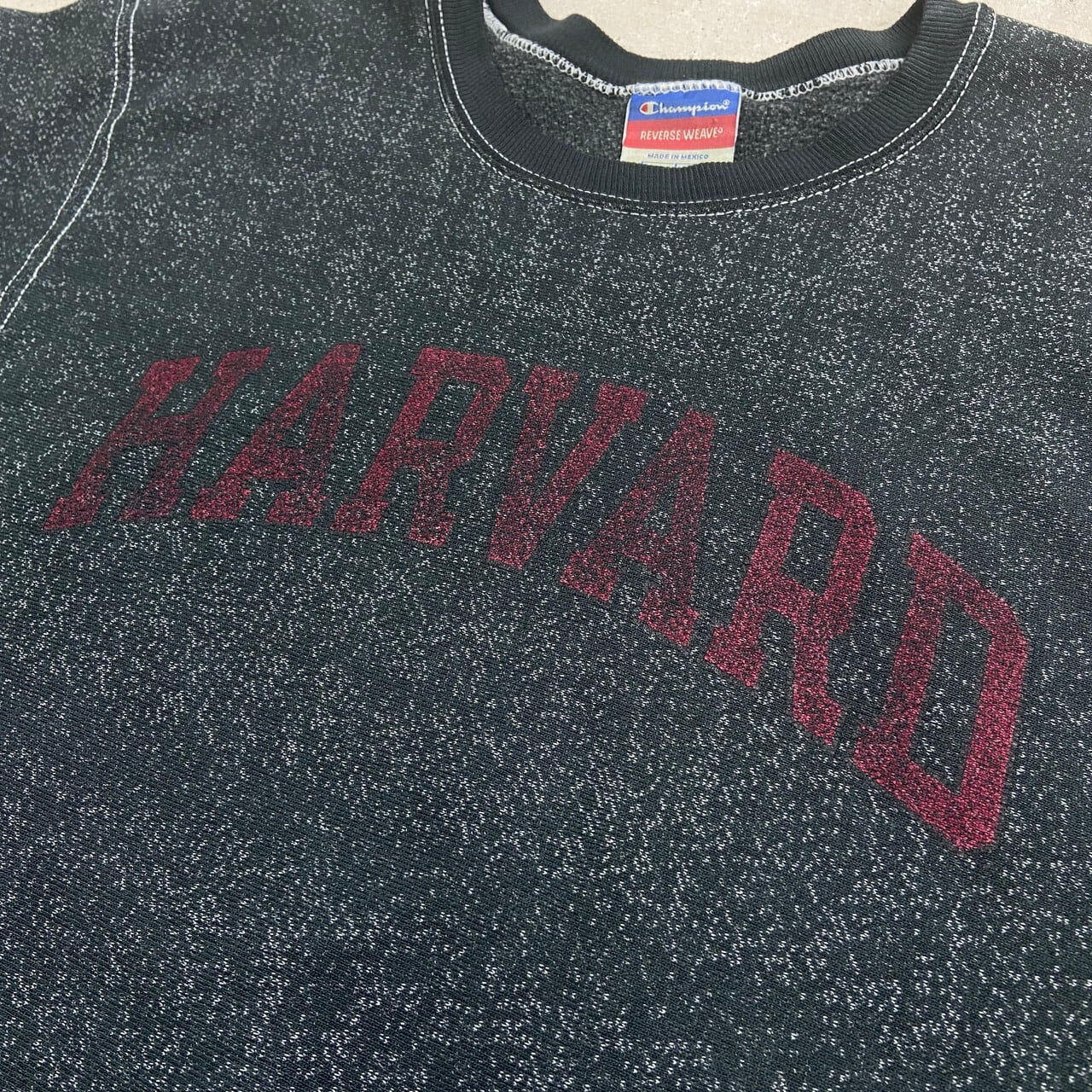 ■Champion REVERSE WEAVE チャンピオン リバースウィーブ HARVARD カレッジプリント ごま塩 後染めブラック スウェットシャツ メンズS レディース 古着 アメカジ トレーナー 霜降り 黒色【スウェット】/ブラック