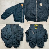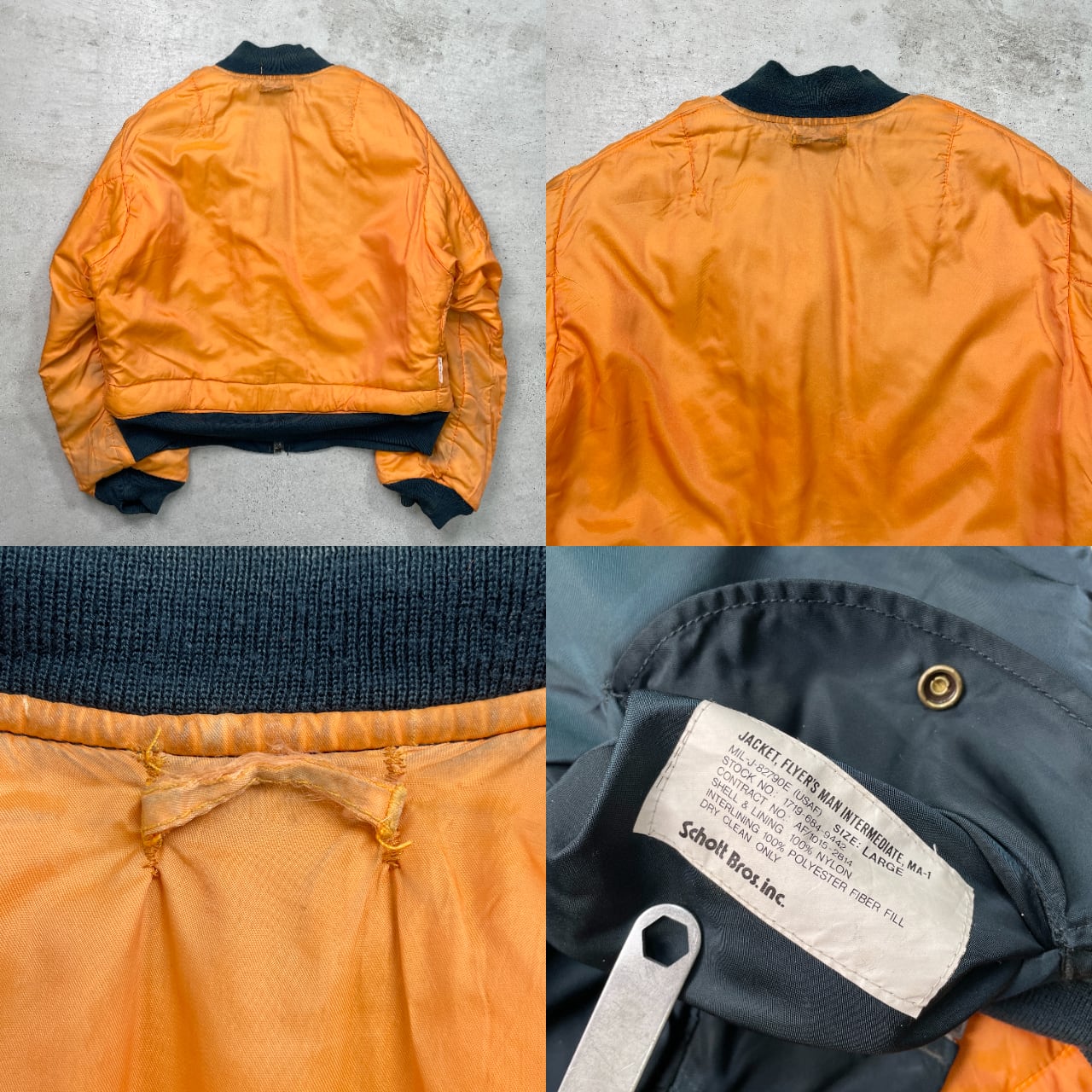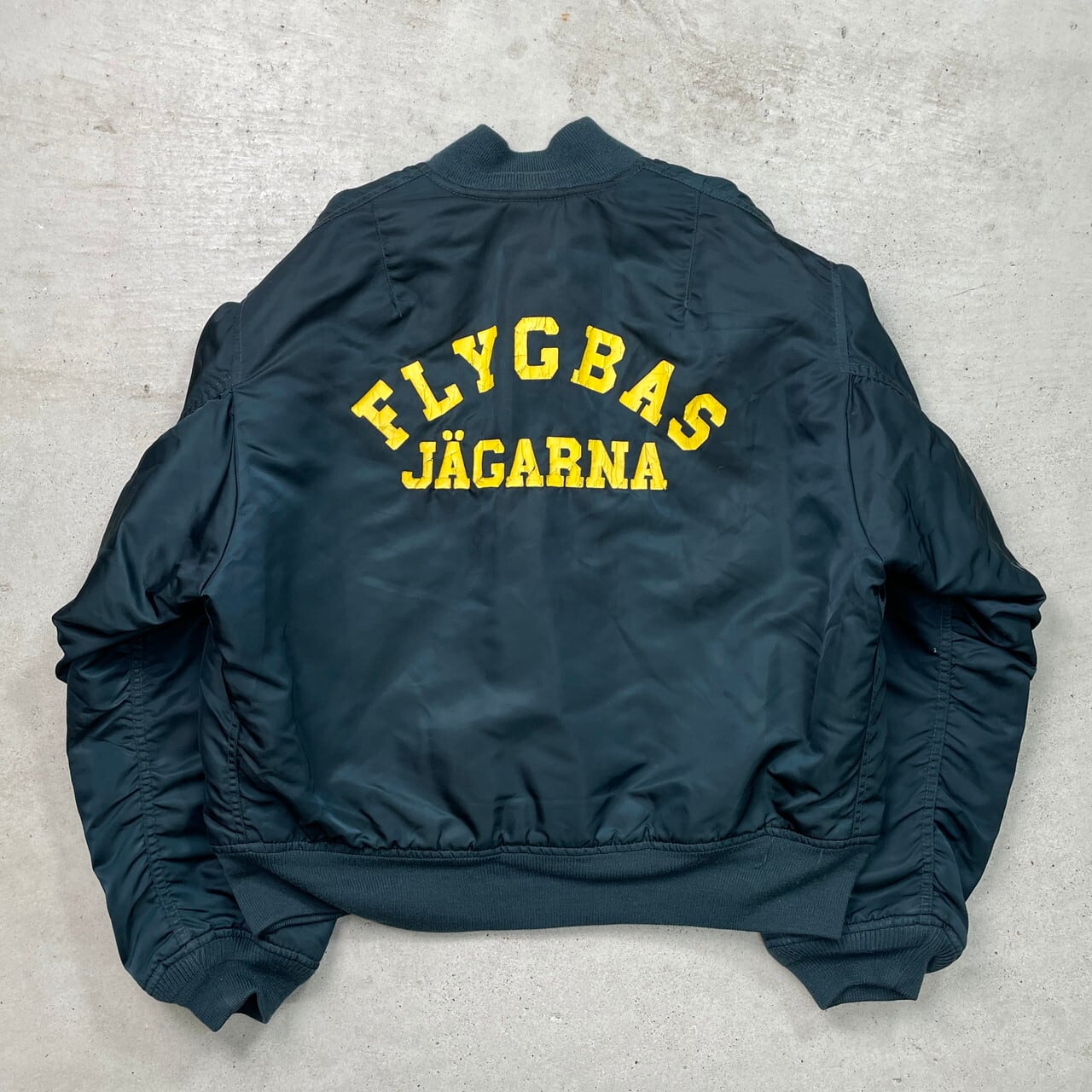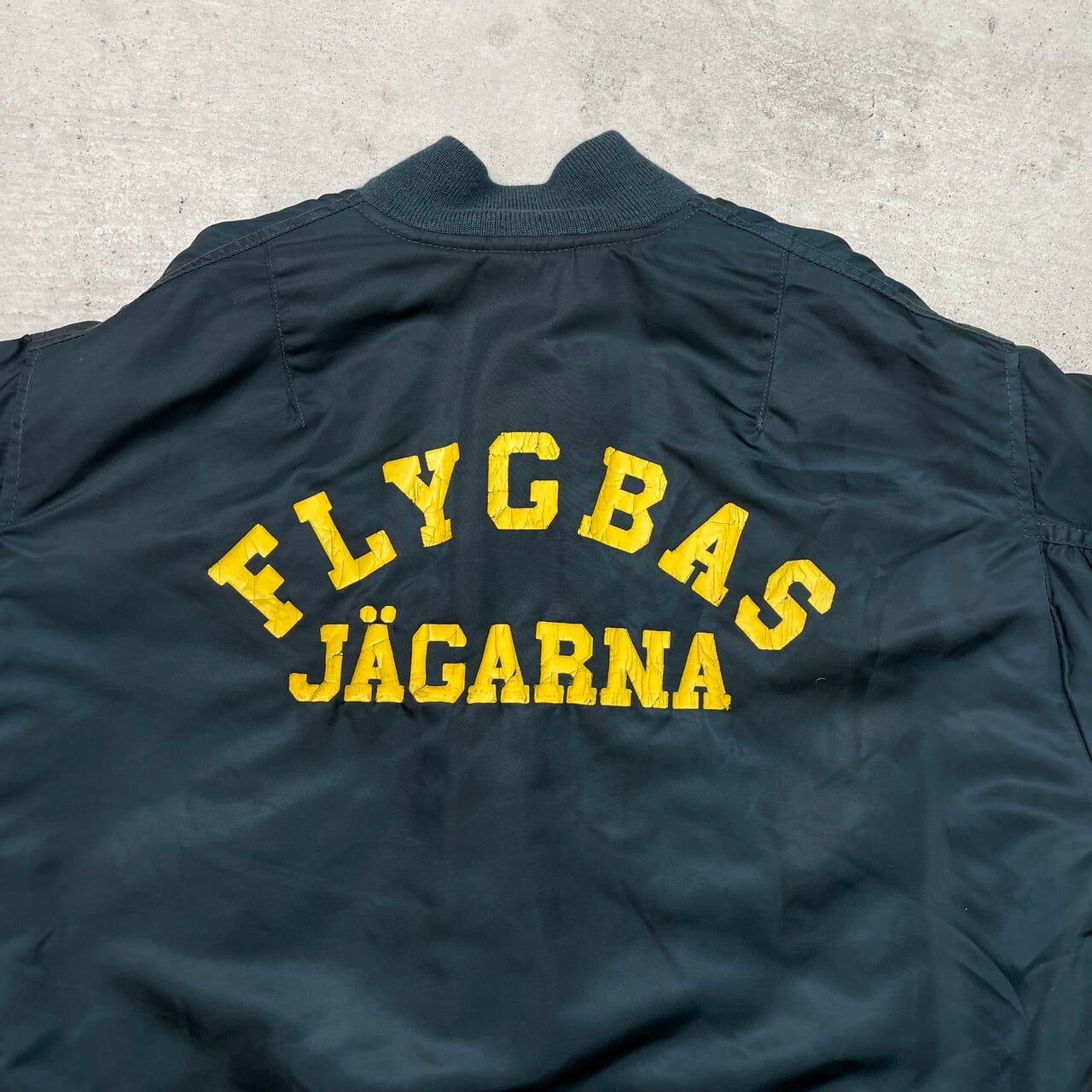 Schott ショット MA-1 FLYGBASJAGARNA ミリタリー フライトジャケット 民間品 スウェーデン空軍特殊部隊 ロゴプリント メンズXL相当 古着 ユーロ 中綿入り アメカジ ボンバージャケット 紺色 オレンジ 【ミリタリージャケット】/ネイビー