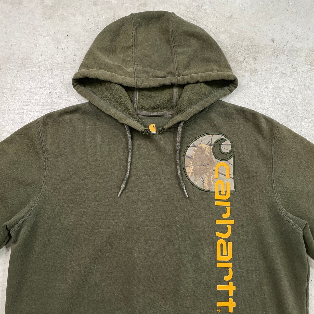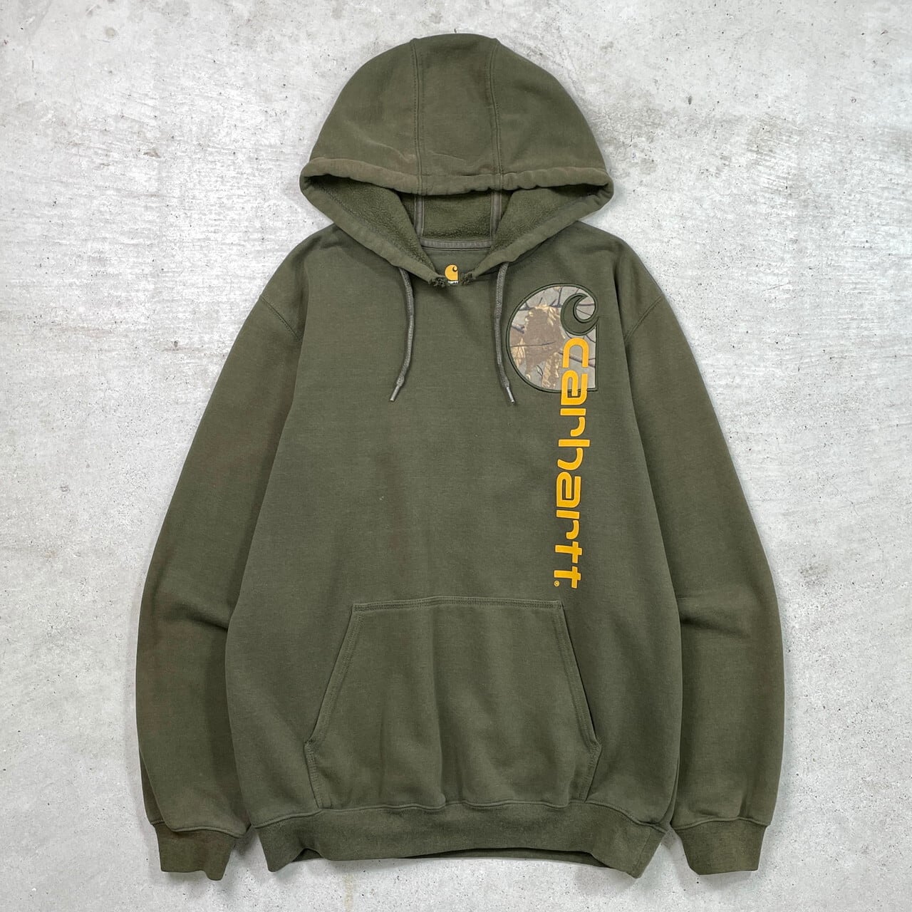 ■Carhartt カーハート スウェットパーカー ORIGINAL FIT メンズL相当 古着 オリジナルフィット プルオーバーパーカー フーディー フェード グリーン 【パーカー】/カーキグリーン