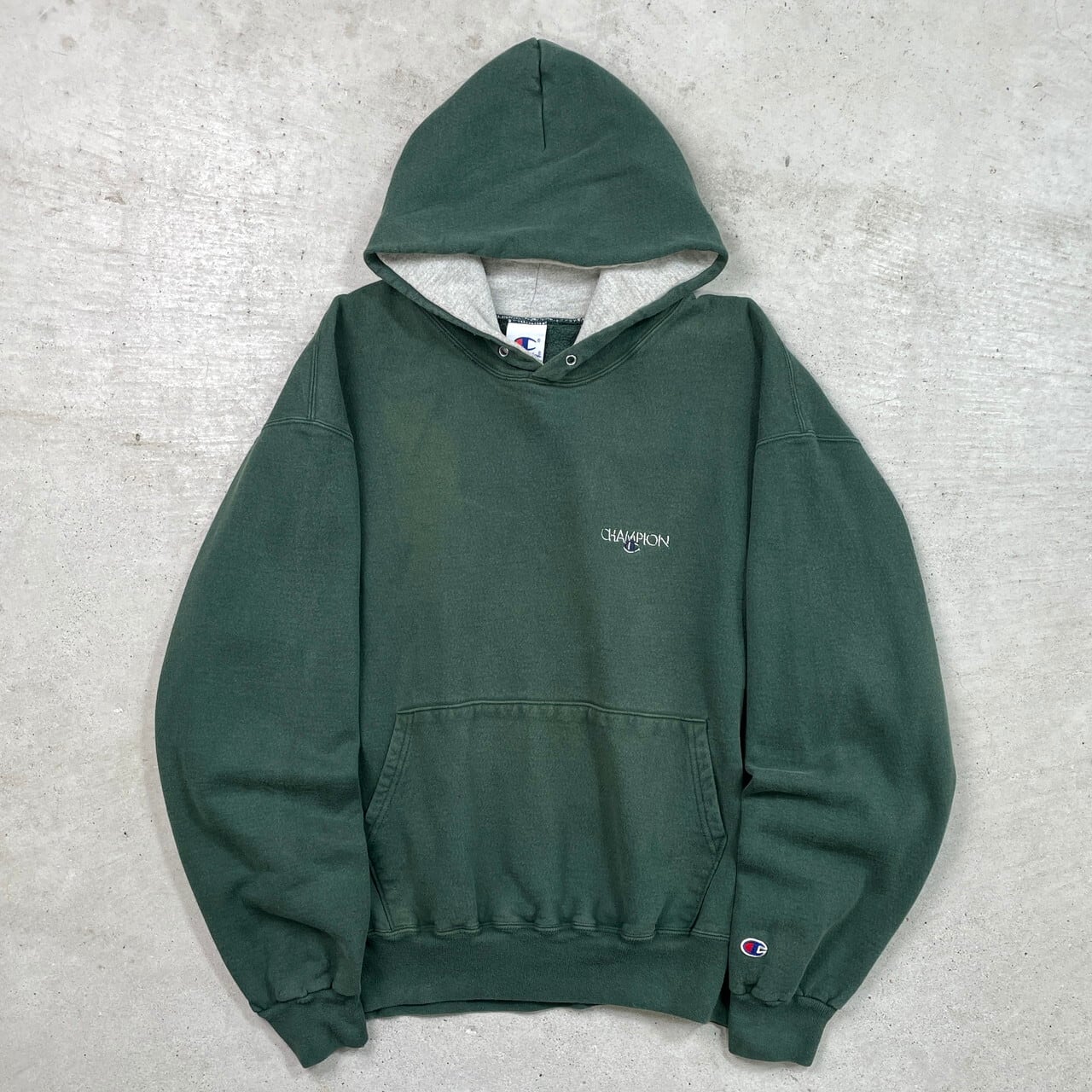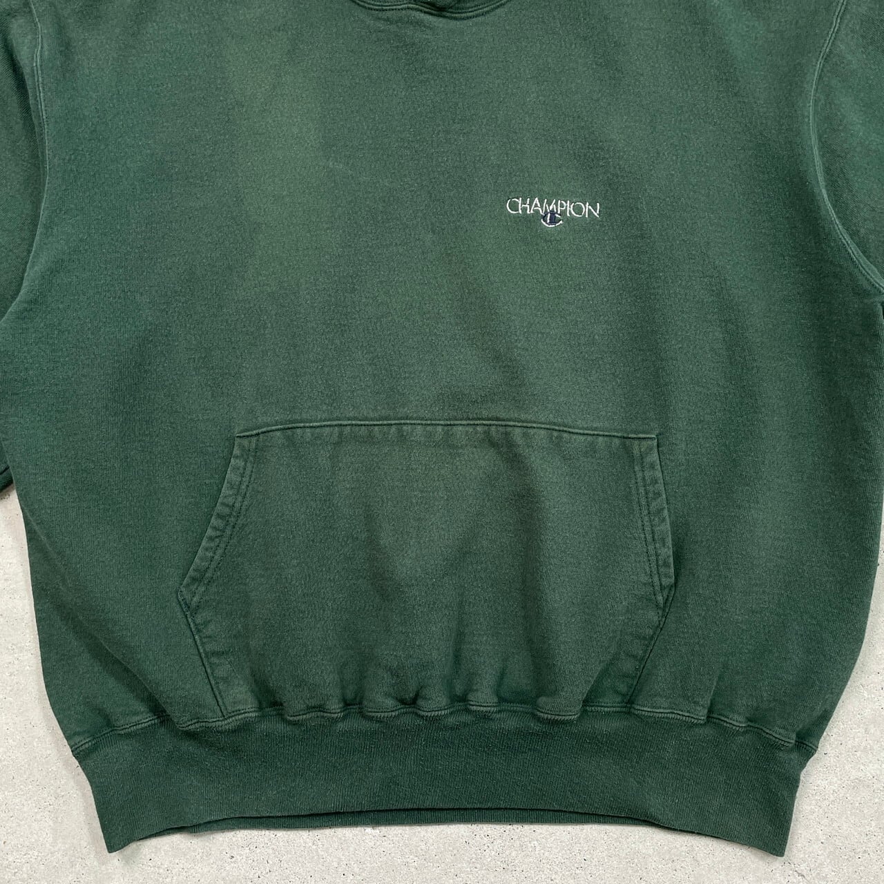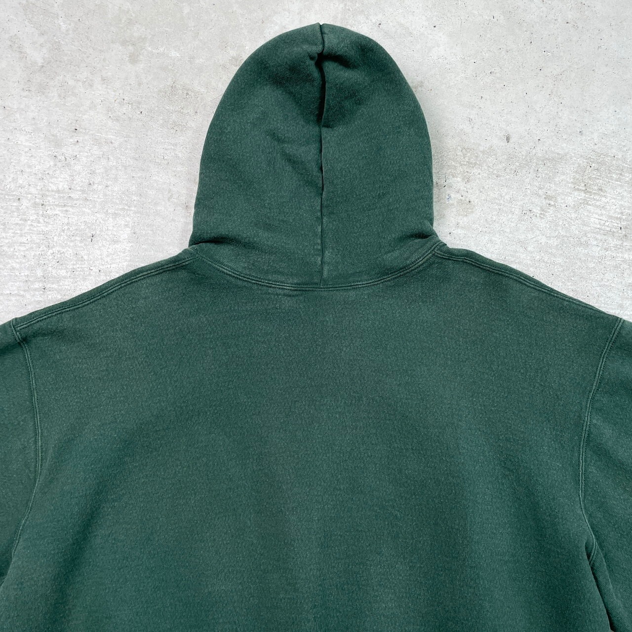 ■90年代 Champion チャンピオン スウェットパーカー サンフェード メンズXL相当 古着 90s ヴィンテージ VINTAGE アメカジ ワンポイントロゴ刺繍 フーディー フェード 緑色【パーカー】/グリーン