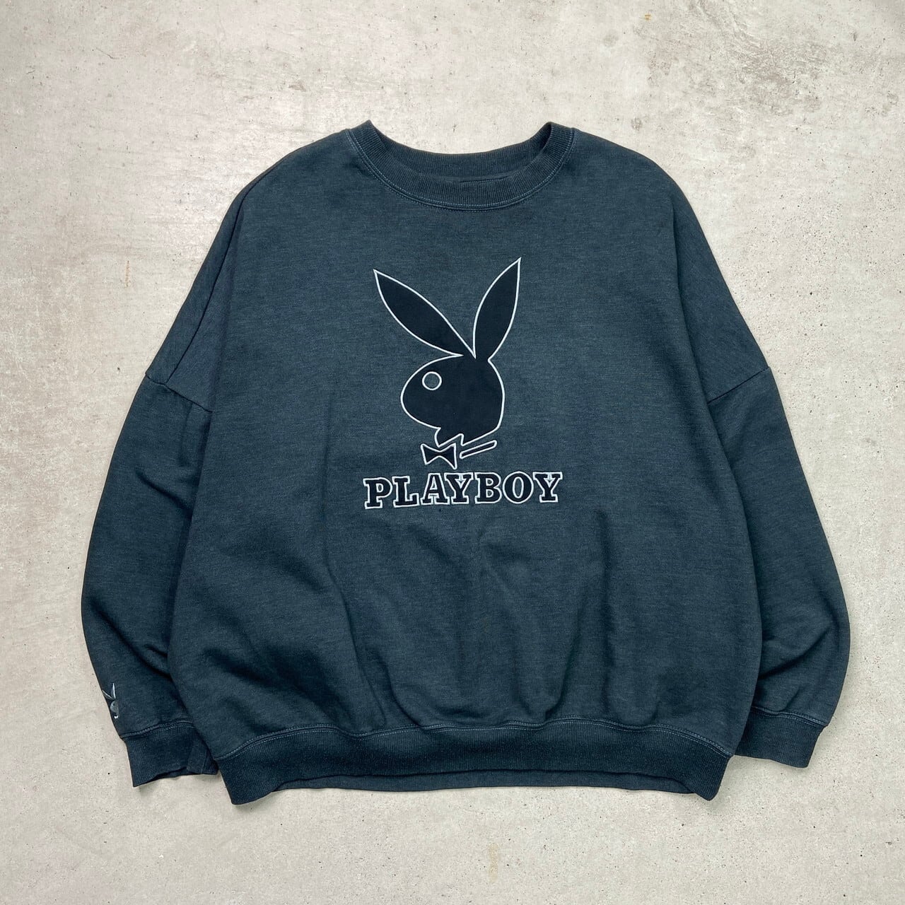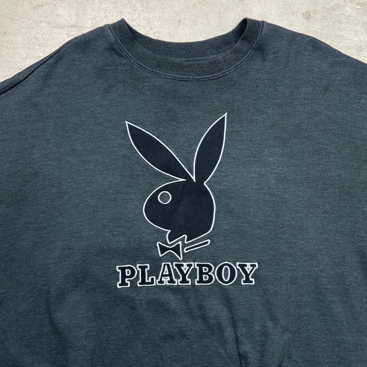 ■PLAYBOY プレイボーイ スウェットシャツ ビッグロゴ刺繍 ドロップショルダー メンズXL相当 古着 アメカジ チャコールグレー 灰色【スウェット】/グレー