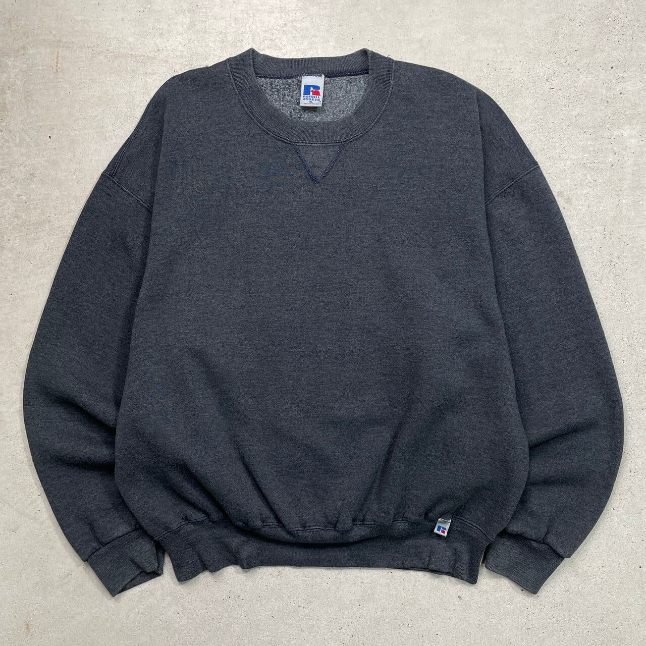 00年代 RUSSELL ATHLETIC ラッセル アスレチックス 後染め ブランクスウェットシャツ 無地 メンズXL 古着 00s VINTAGE ヴィンテージ アメカジ トレーナー 前Vガゼット 刺繍タグ ダークグレー 灰色【スウェット】/グレーSS30