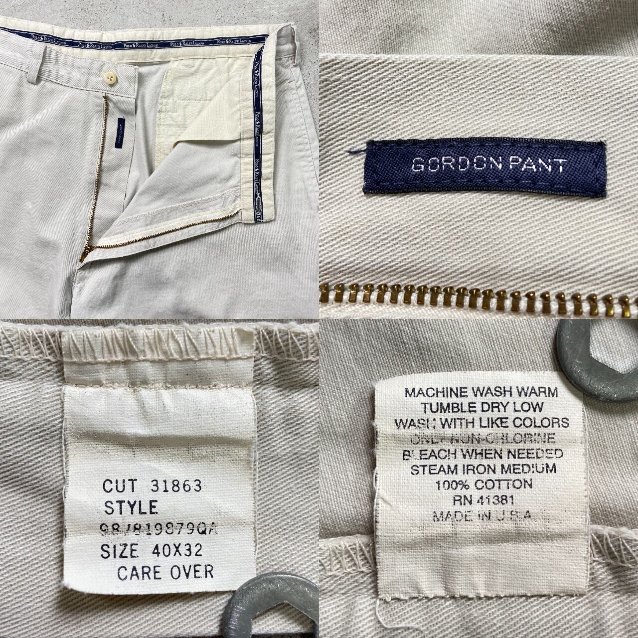 ■90年代 USA製 Polo by Ralph Lauren ポロバイラルフローレン チノパンツ GORDON PANT メンズW40 古着 90s アメカジ VINTAGE ヴィンテージ ポロチノ ビッグサイズ 大きいサイズ【チノパンツ,コットンパンツ】/ベージュ