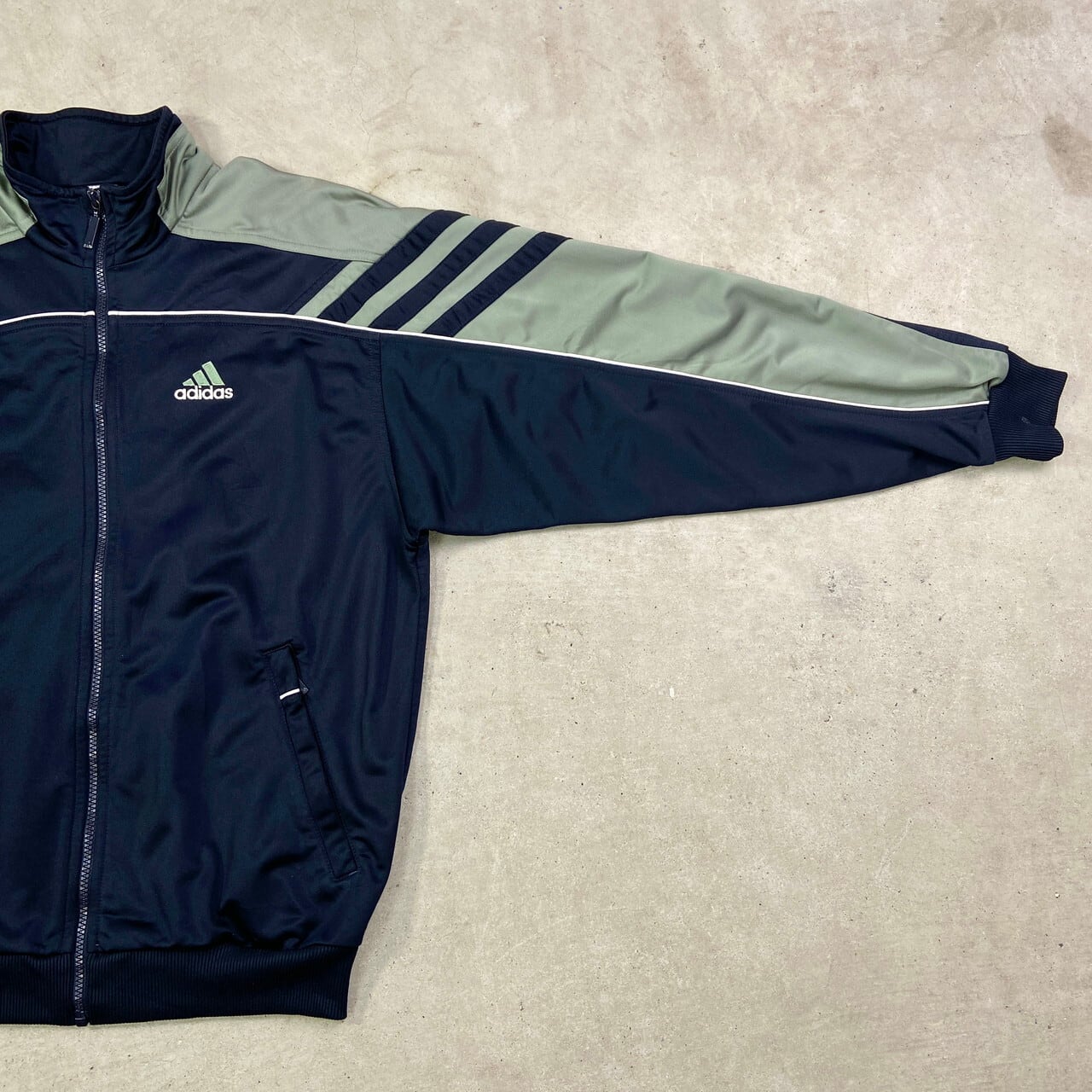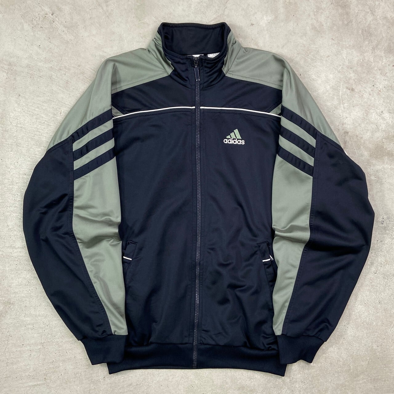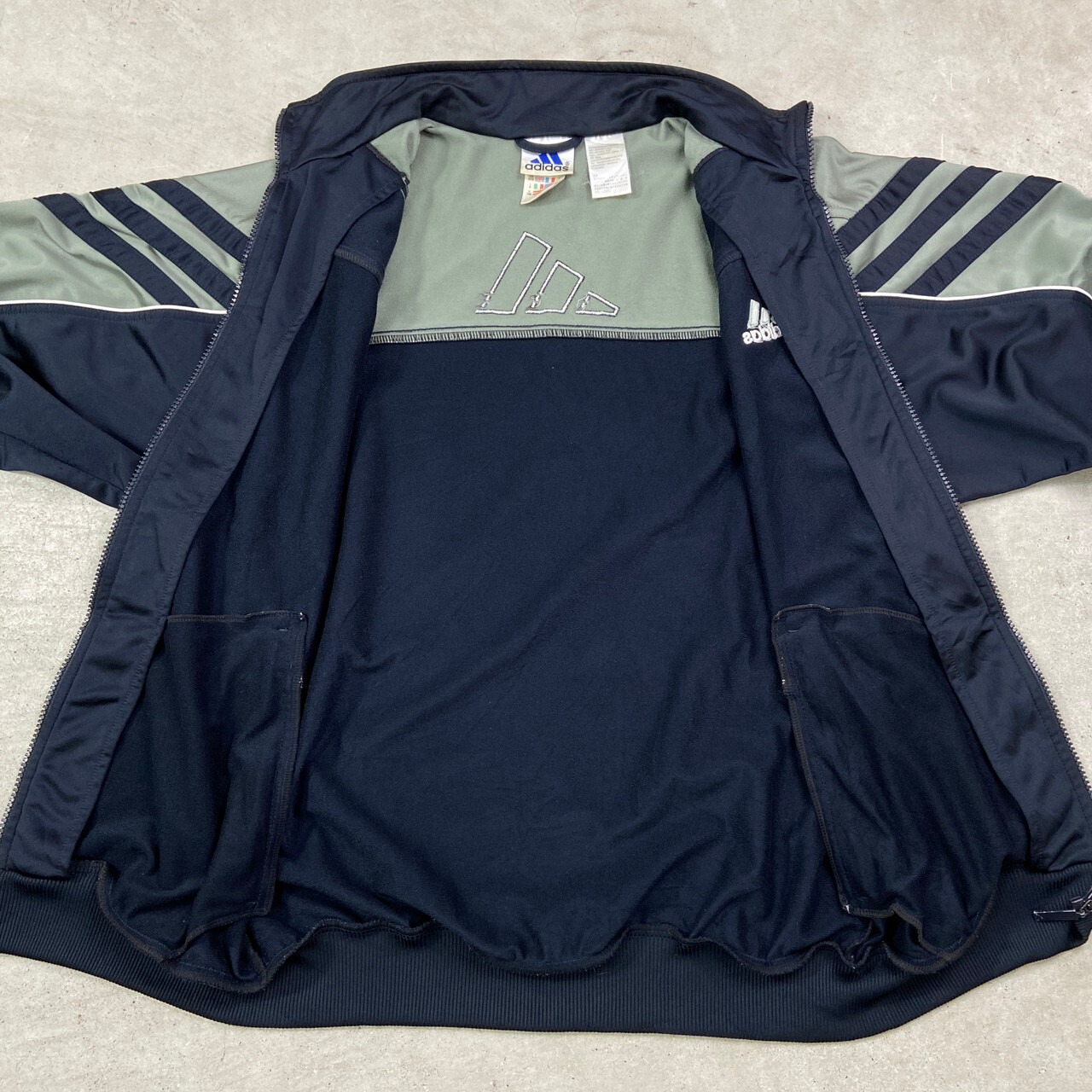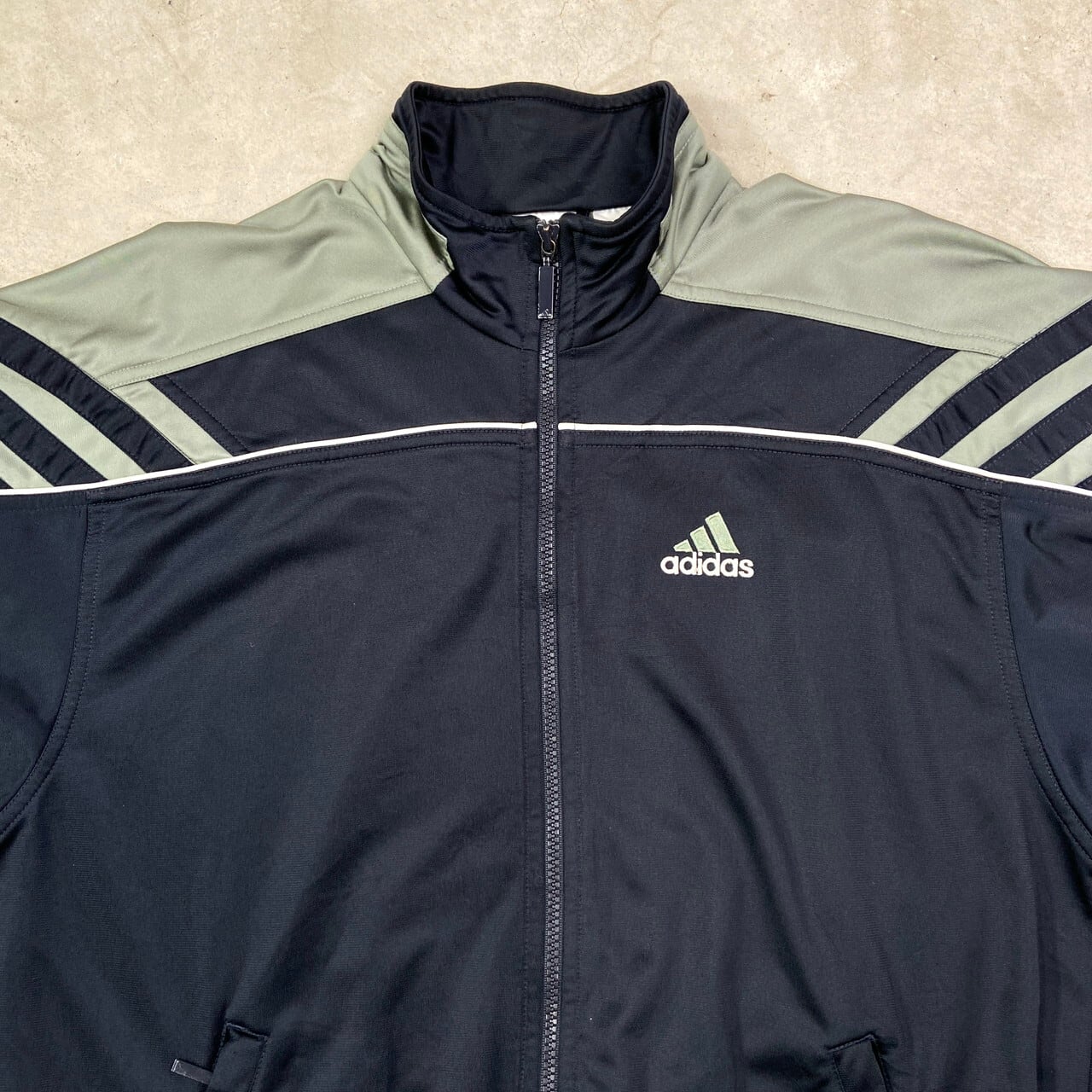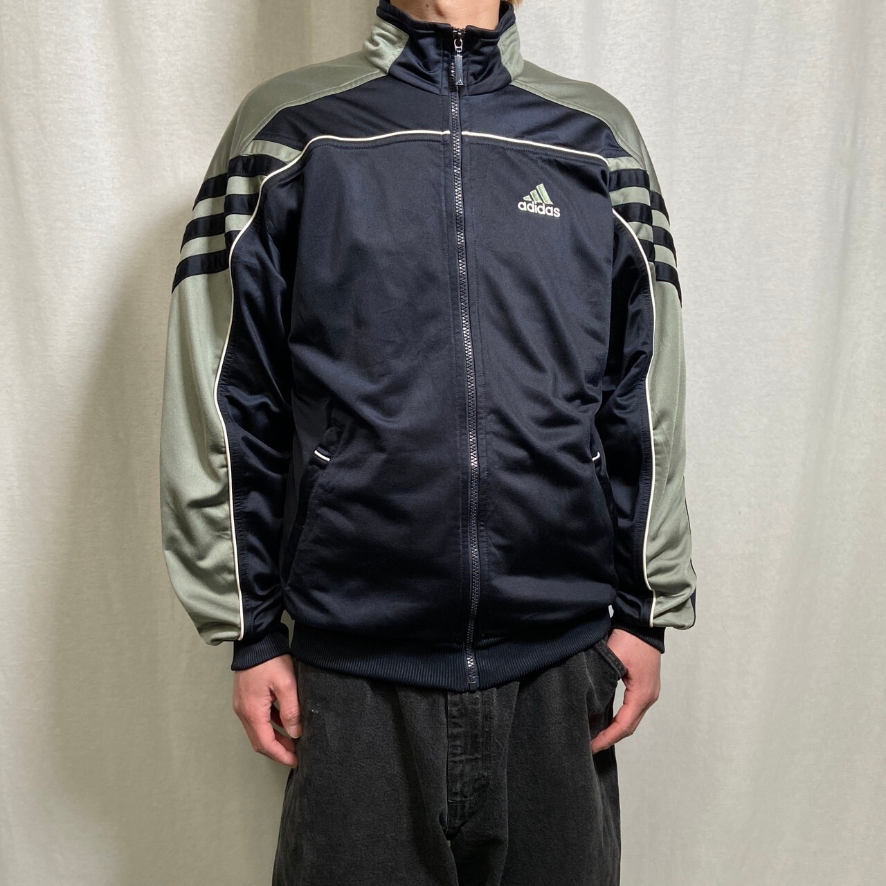 00年代 adidas アディダス トラックジャケット ジャージ パフォーマンスロゴ刺繍 メンズM相当 古着 00s Y2K ヴィンテージ VINTAGE カーキ ネイビー 紺色【ジャージ・トラックジャケット】/マルチカラーSS30