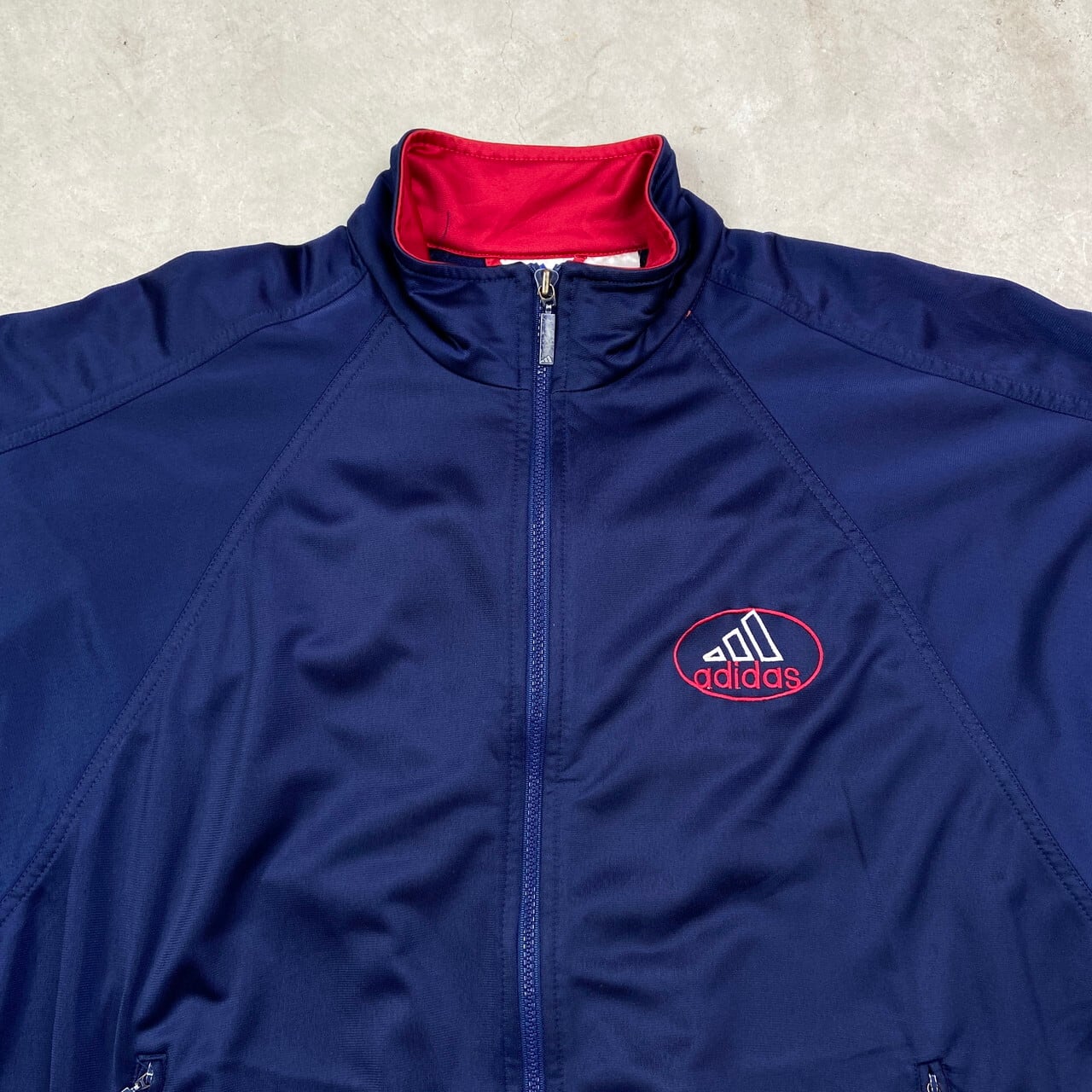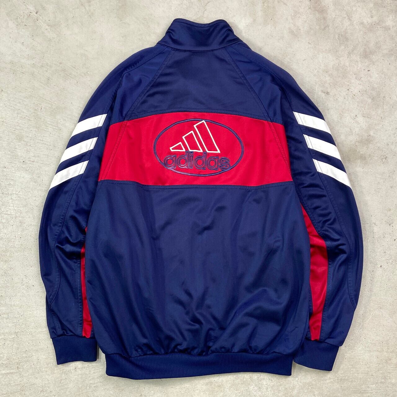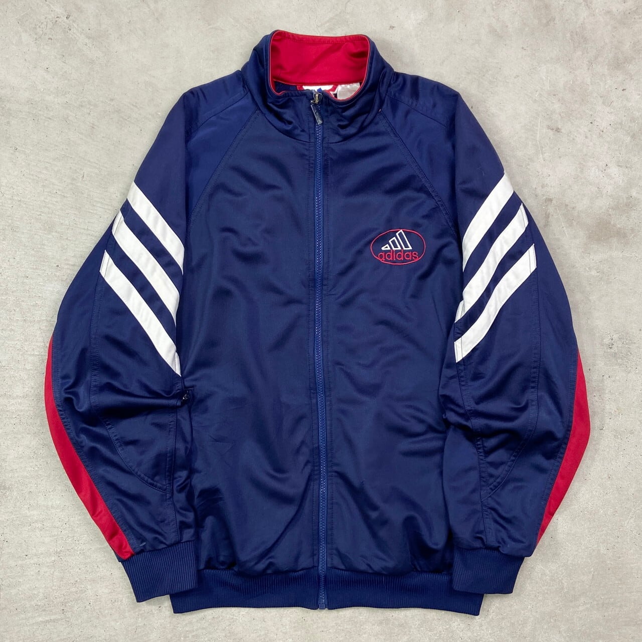 90年代 adidas アディダス トラックジャケット ジャージ パフォーマンスロゴ刺繍 メンズL相当 古着 90s ヴィンテージ VINTAGE ワインレッド ネイビー ホワイト えんじ 紺色 白【ジャージ・トラックジャケット】/マルチカラーSS30