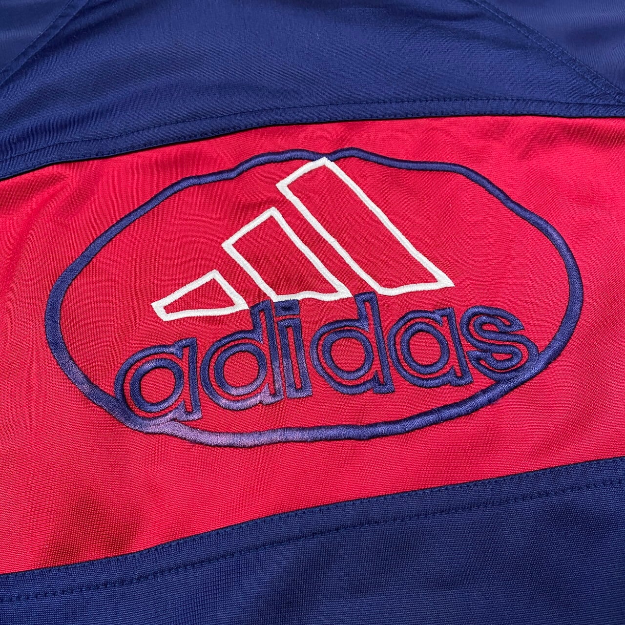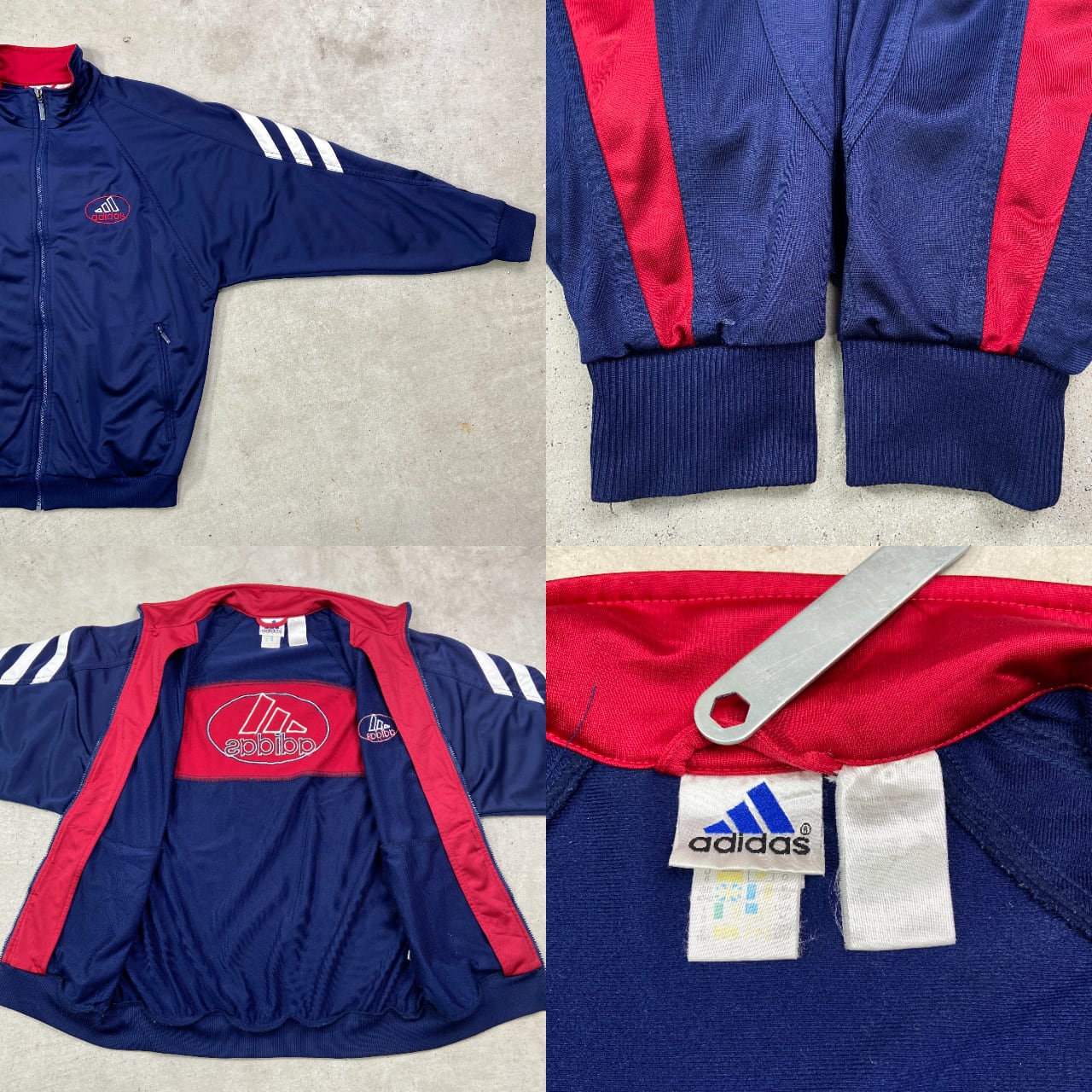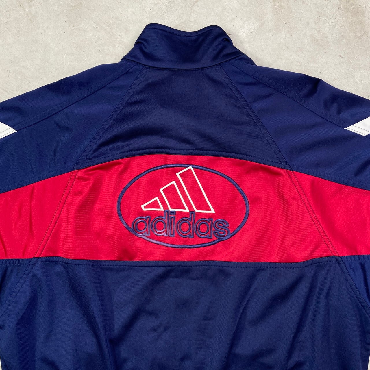 90年代 adidas アディダス トラックジャケット ジャージ パフォーマンスロゴ刺繍 メンズL相当 古着 90s ヴィンテージ VINTAGE ワインレッド ネイビー ホワイト えんじ 紺色 白【ジャージ・トラックジャケット】/マルチカラーSS30