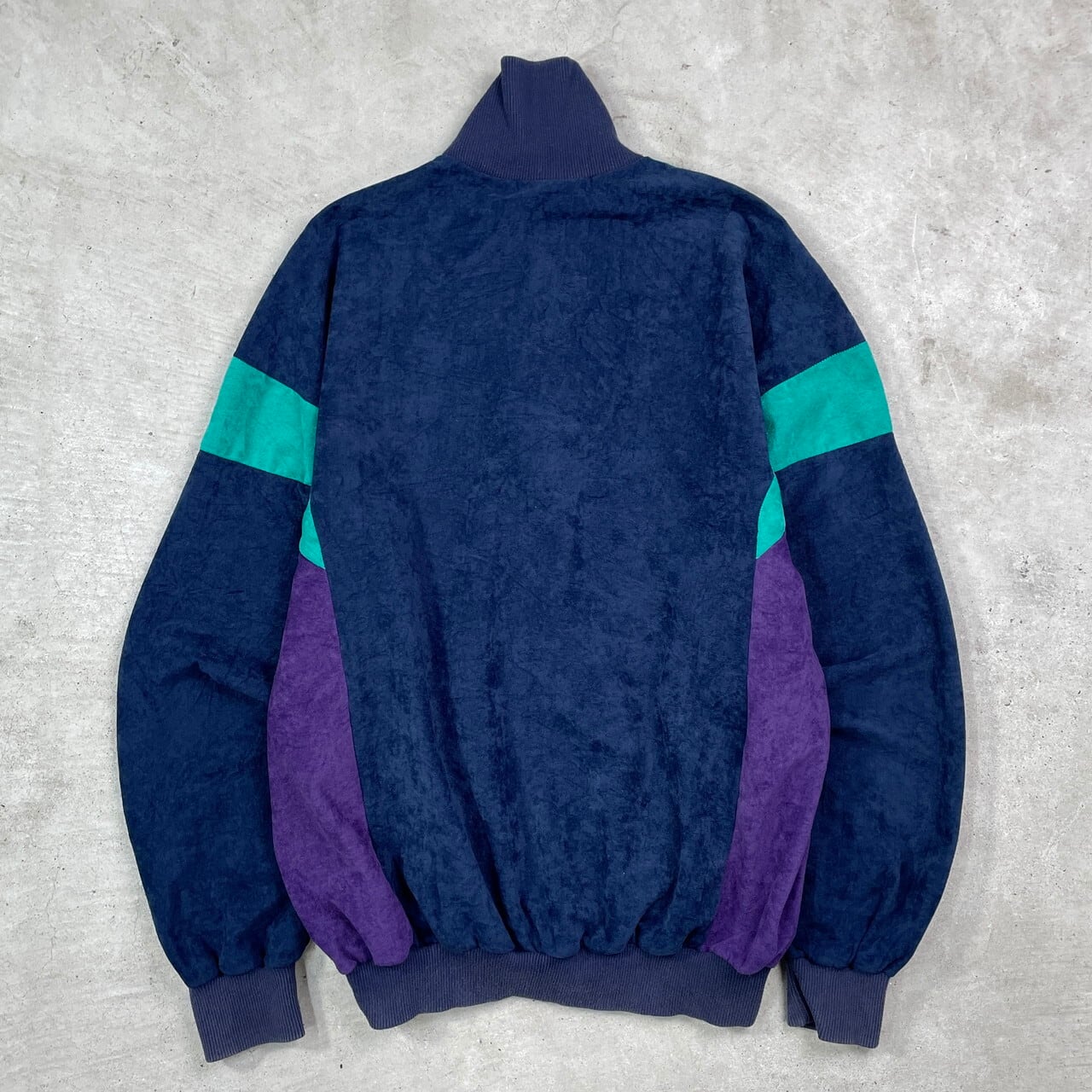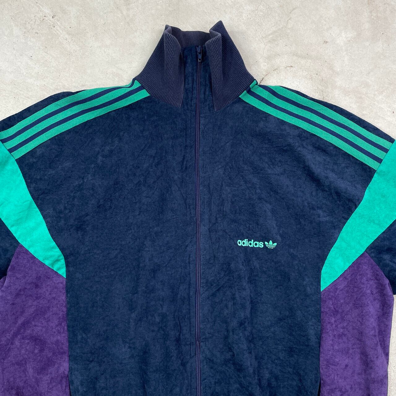 70〜80年代 ポルトガル製 adidas アディダス VENTEX社製 ベロアジャージ トラックジャケット メンズL 古着 70s 80s ヴィンテージ VINTAGE ハイネック 切り替えデザイン ネイビー グリーン パープル 紺 緑 紫【ジャージ・トラックジャケット】/マルチカラー
