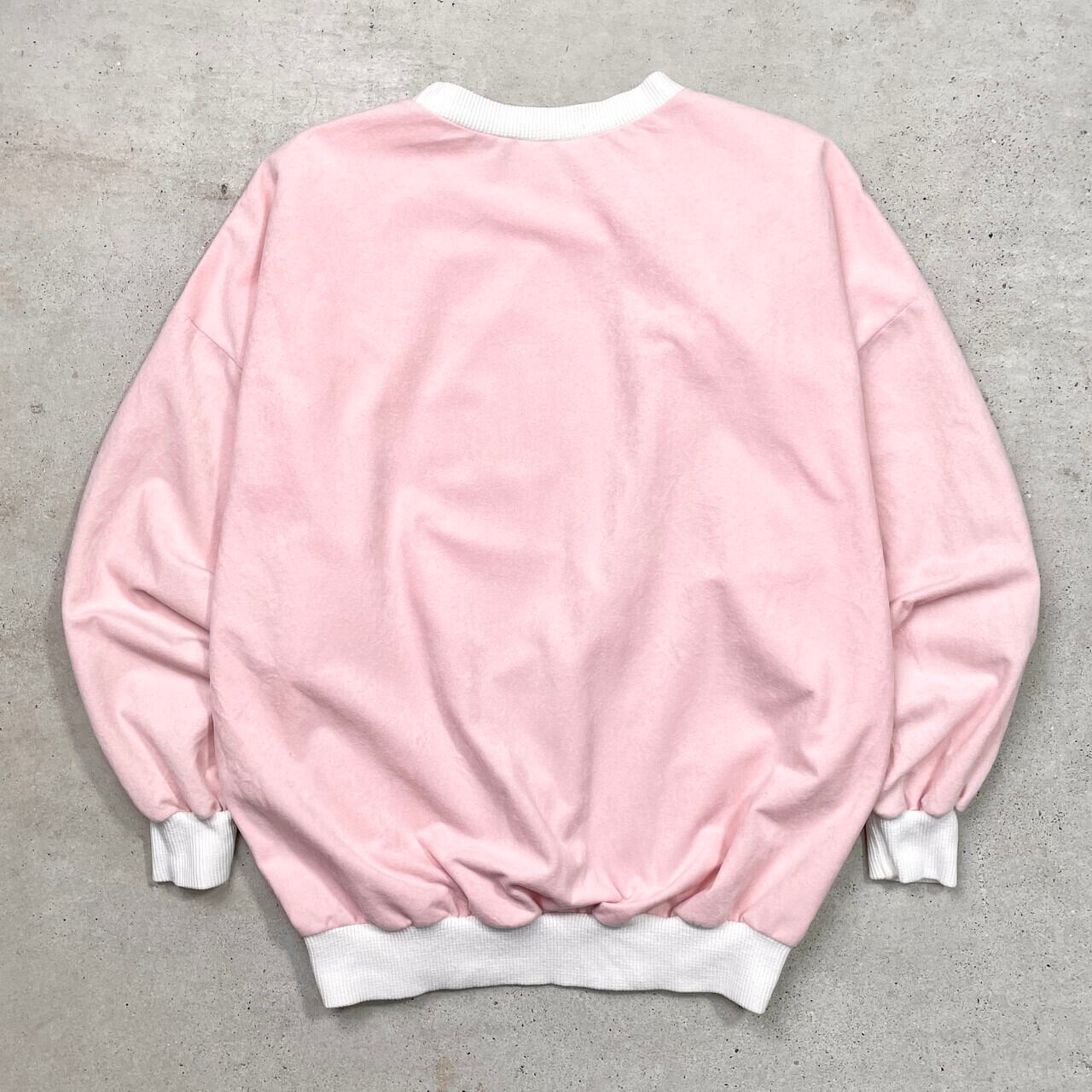 ■〜80年代 フランス製 VENTEX社製 adidas アディダス ベロアスウェットシャツ 変形デザイン レディースM相当 古着 80s VINTAGE ヴィンテージ トレーナー ユーロ ベビーピンク ホワイト 白 【スウェット】/マルチカラー