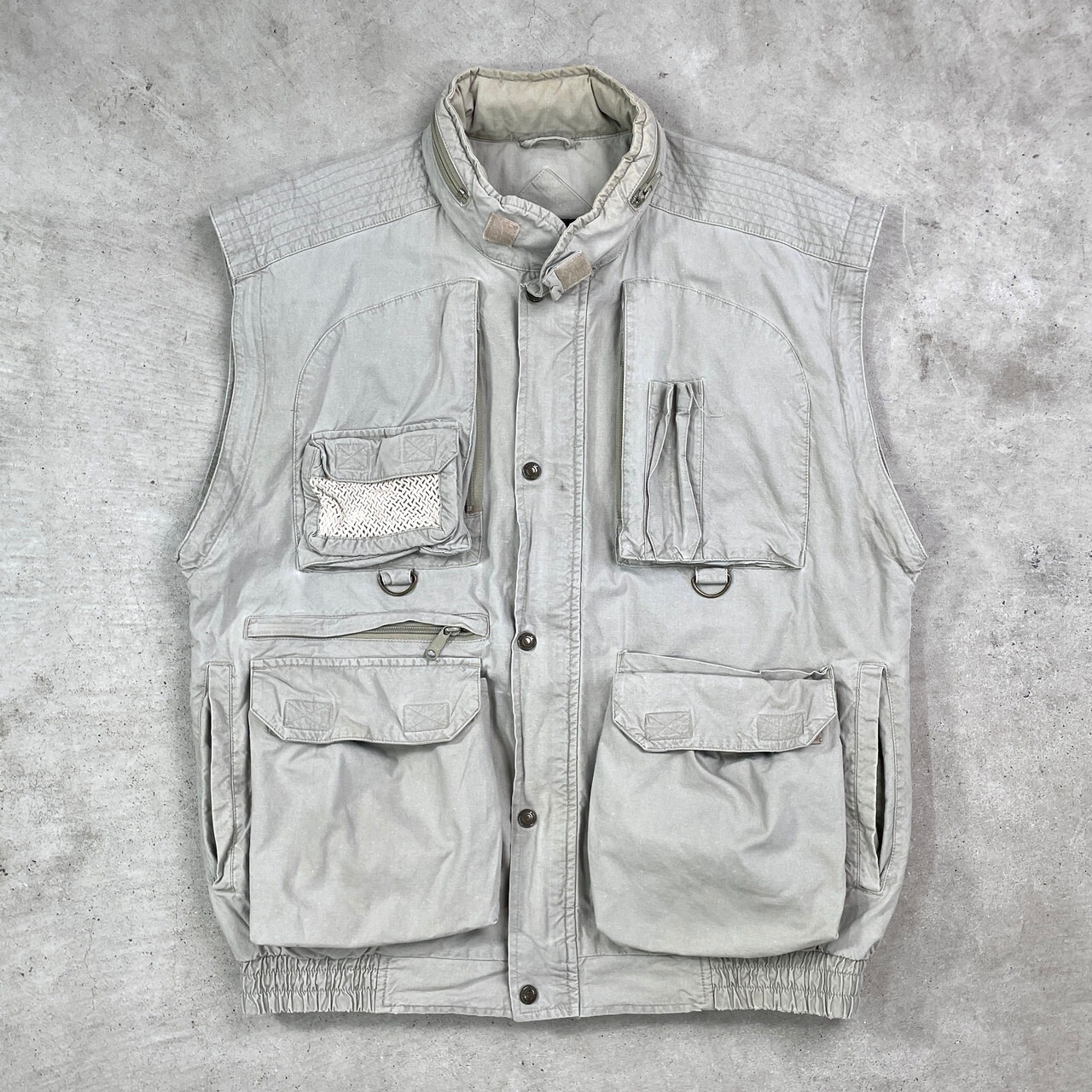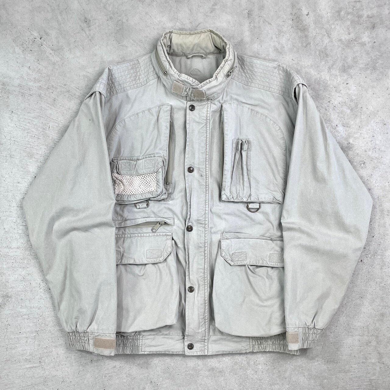 ■80~90年代 Eddie Bauer エディーバウアー コットンフィッシングジャケット デタッチャブル 2WAY メンズL相当 古着 ヴィンテージ ビンテージ アウトドア 80s 90s 黒タグ 短丈 ショート丈 【アウトドアジャケット】/ベージュ