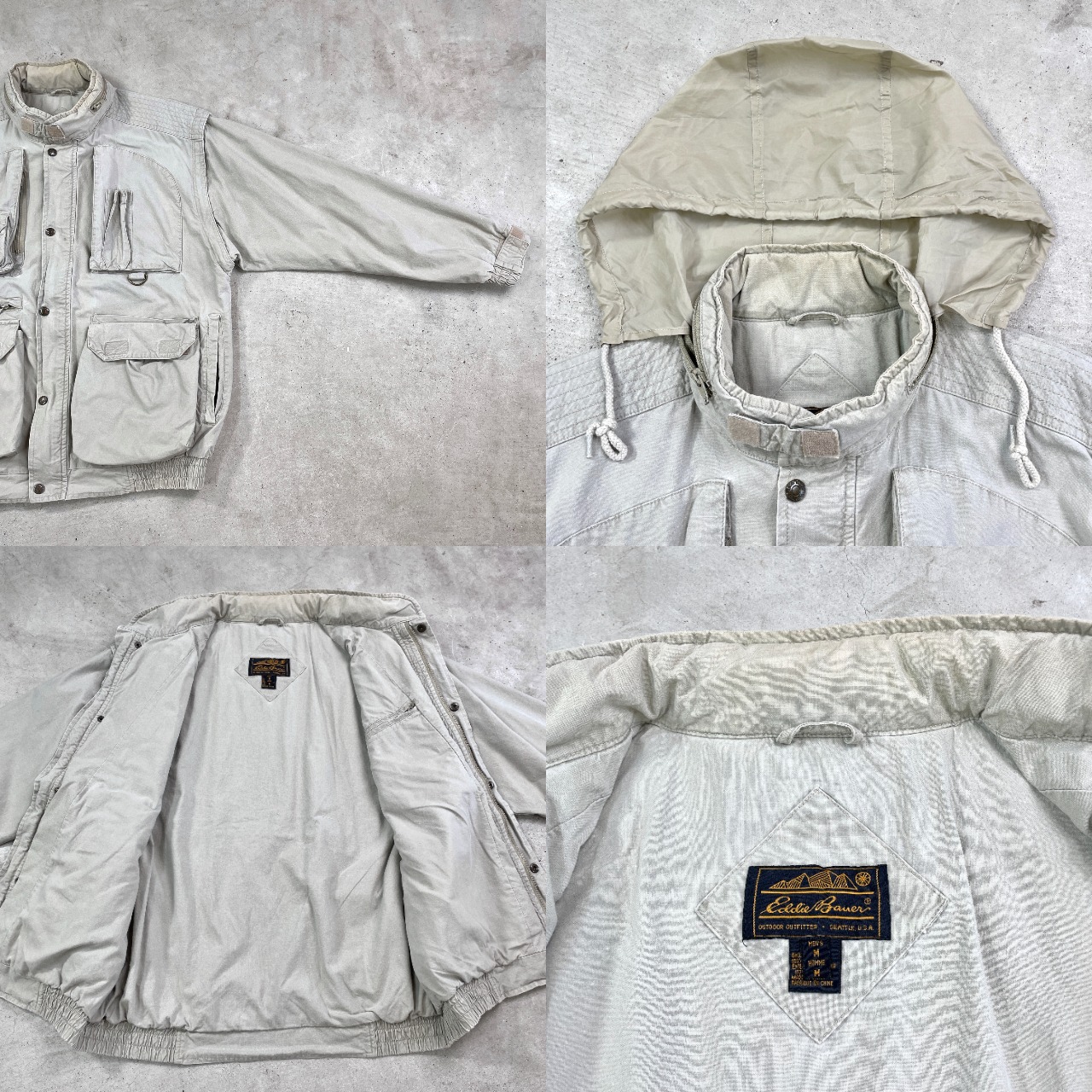 80〜90年代 Eddie Bauer エディーバウアー コットンフィッシングジャケット デタッチャブル 2WAY メンズL相当 古着 ヴィンテージ ビンテージ アウトドア 80s 90s 黒タグ 短丈 ショート丈 【アウトドアジャケット】/ベージュ【BS25s30a】
