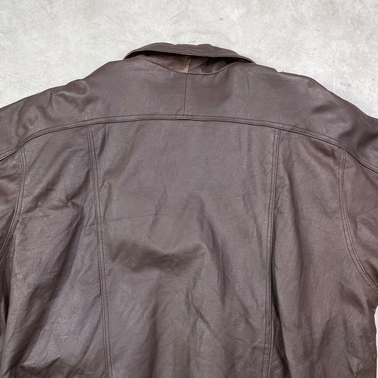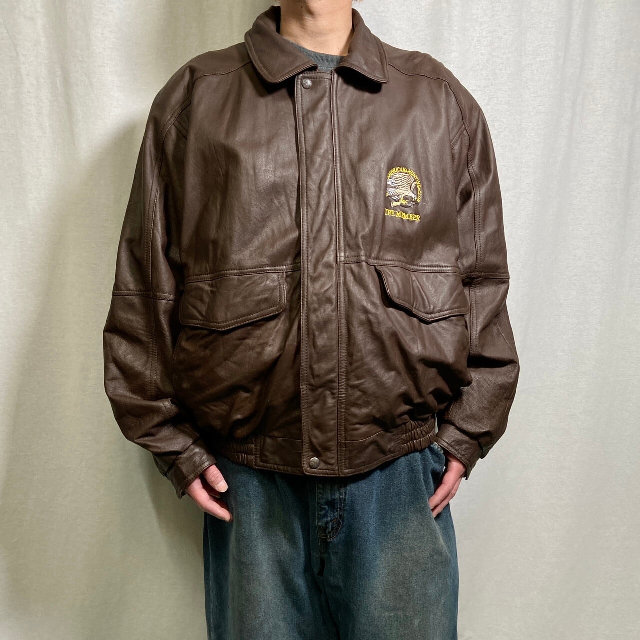 90年代 LIFE MEMBERS A-2タイプ レザージャケット ピッグレザー メンズ2XL 古着 90s ヴィンテージ VINTAGE 革ジャン ミリタリージャケット フライトジャケット 肩パッド 茶色 ビッグサイズ 大きいサイズ【ブルゾン・ジャケット】/ブラウン