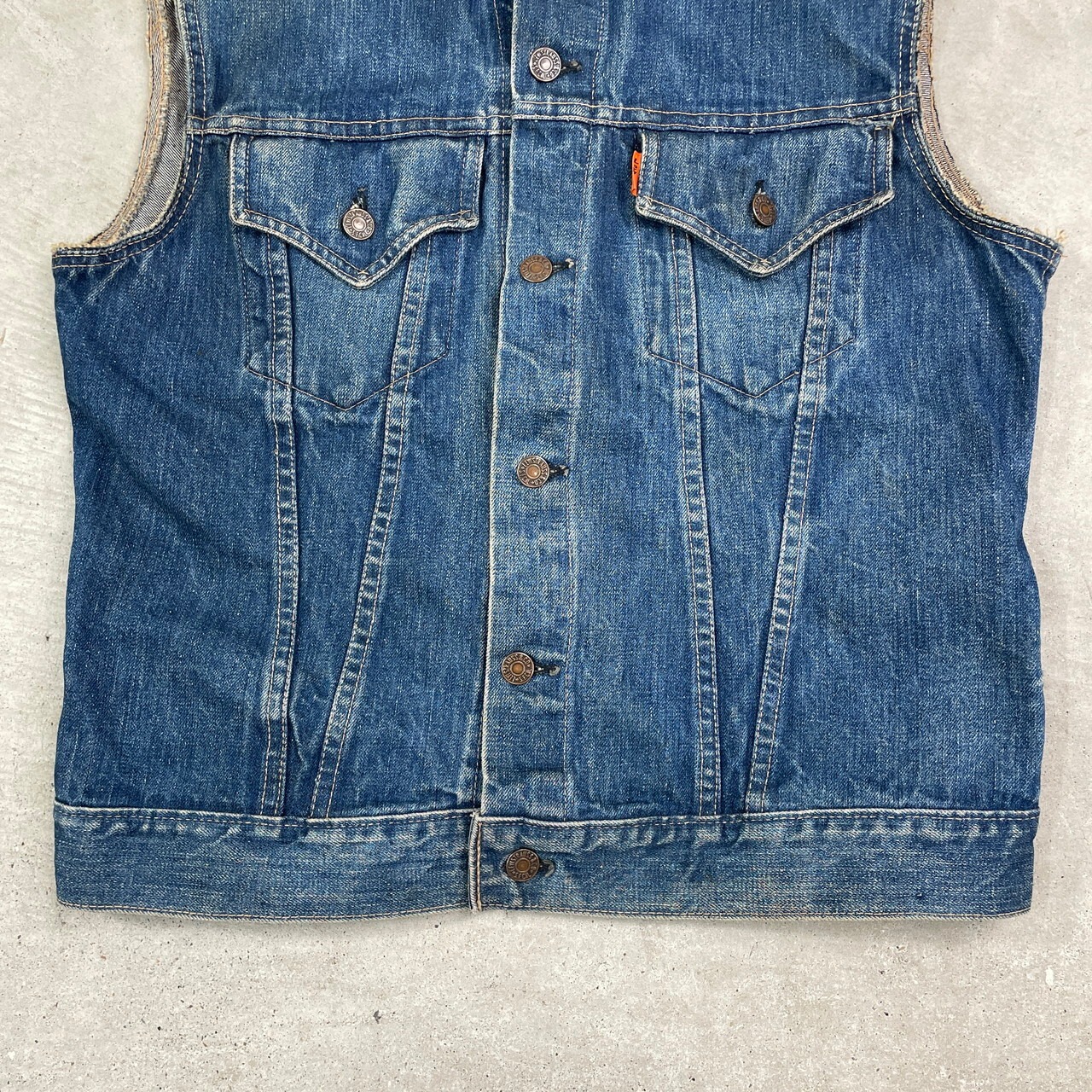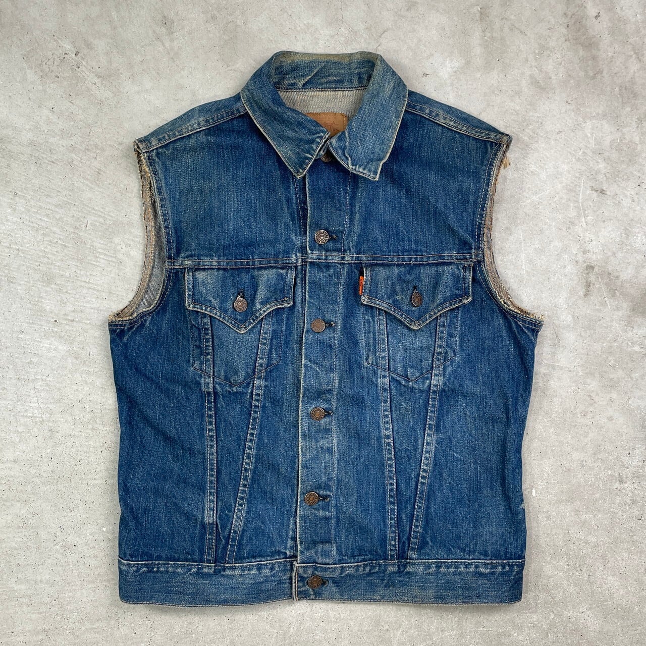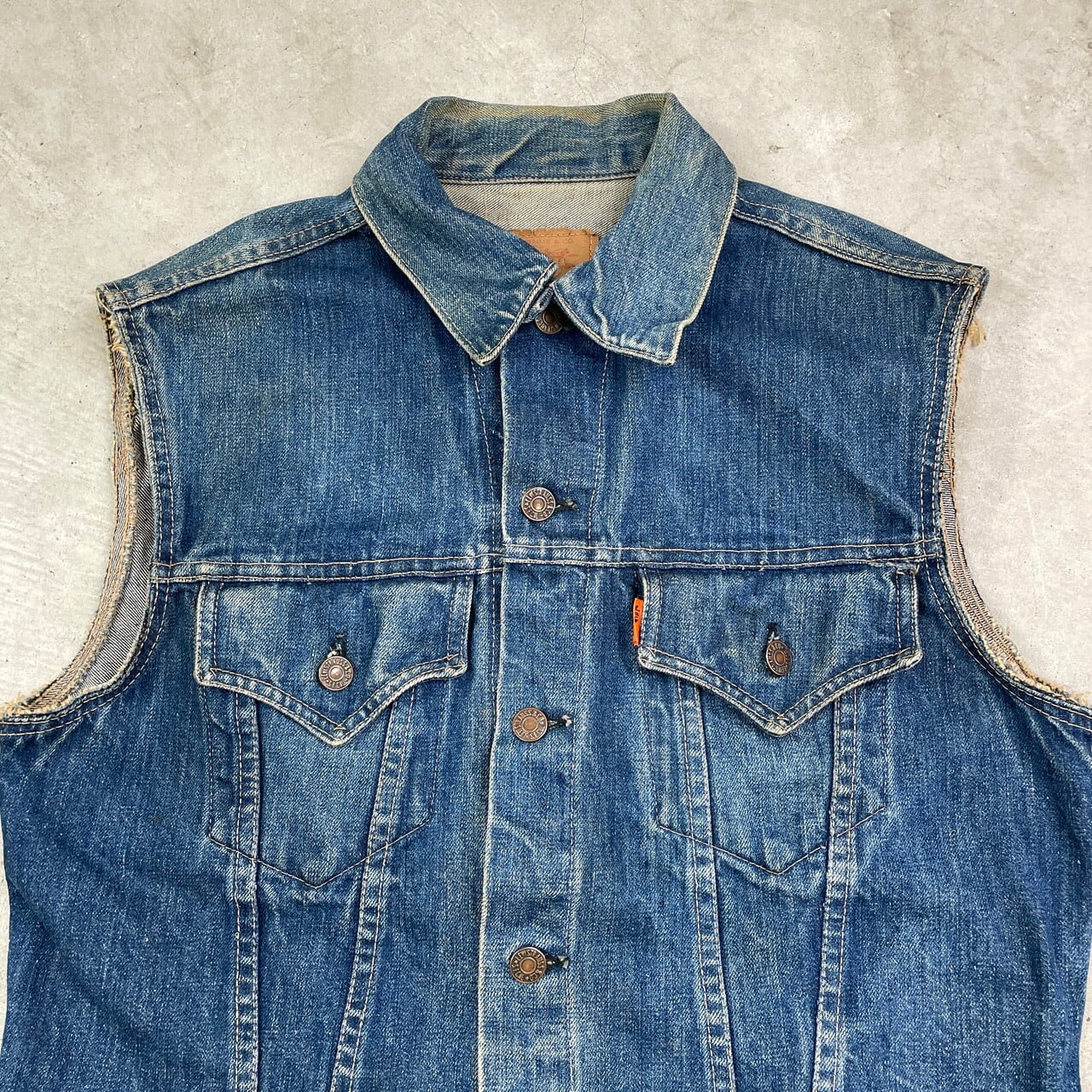 70年代 USA製 Levi's リーバイス 70505-0217 デニムベスト カットオフ オレンジタブ メンズM相当 古着 70s ヴィンテージ VINTAGE 【デニムジャケット】/ブルー【SS30-AW】