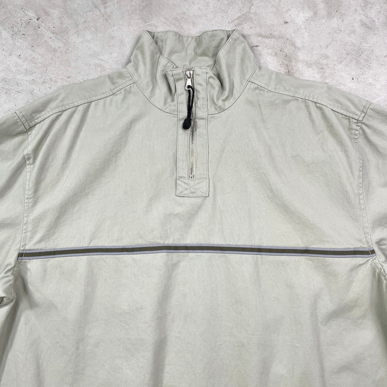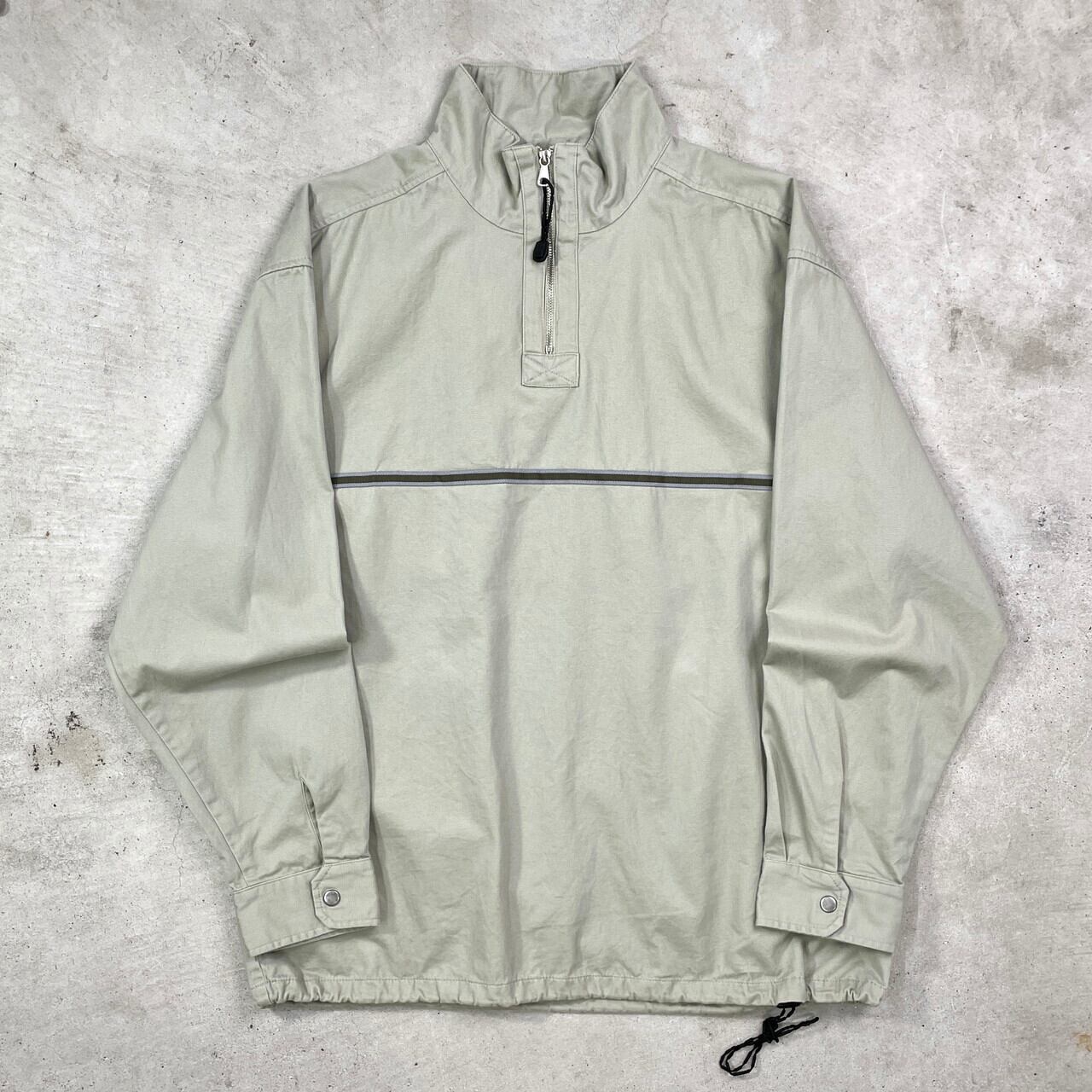 pacific waves ライン入り ハーフジップ コットンプルオーバージャケット メンズXL相当 古着 パシフィックウェーブス サーフショップ ライトカーキ【コットンジャケット】/ベージュSS30