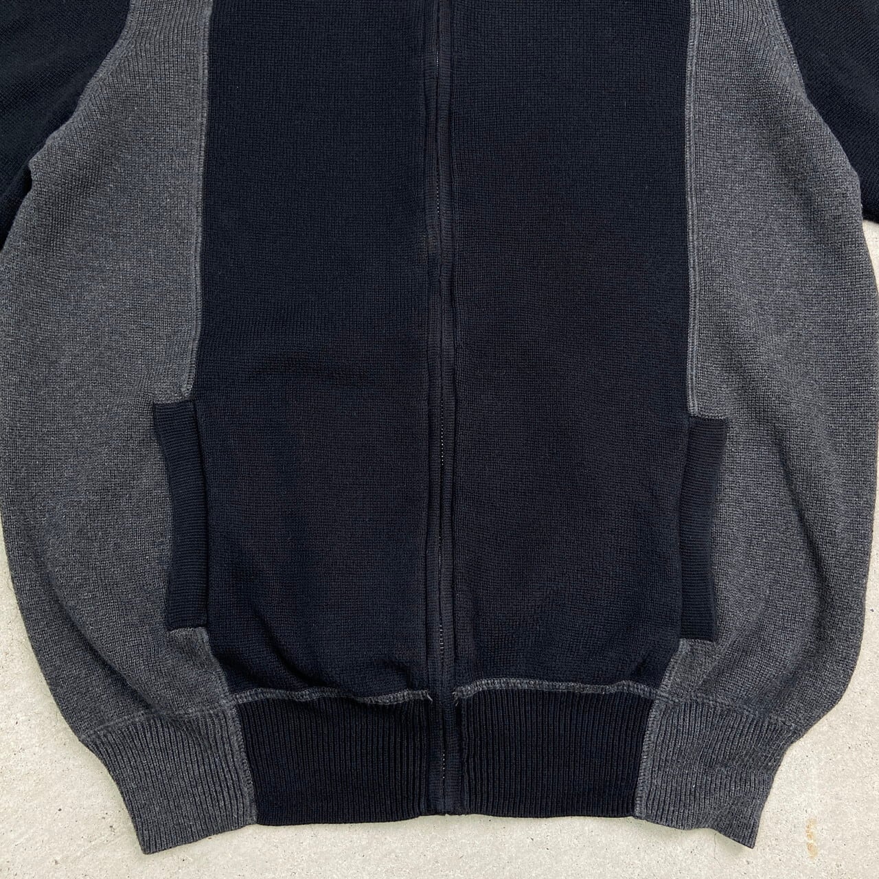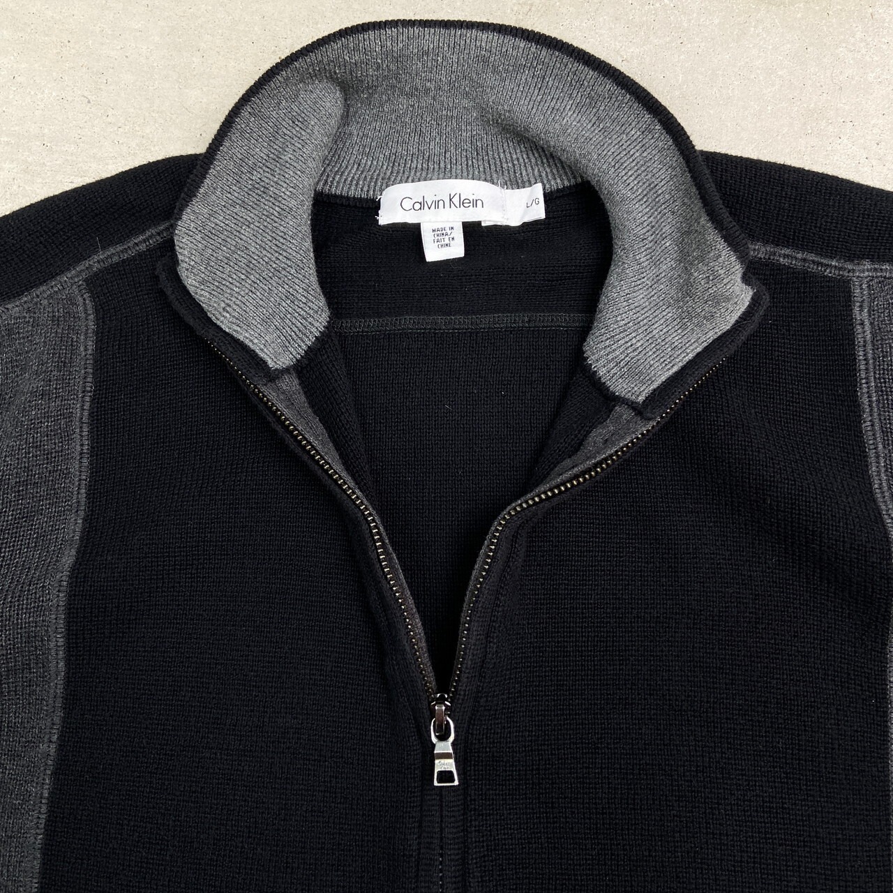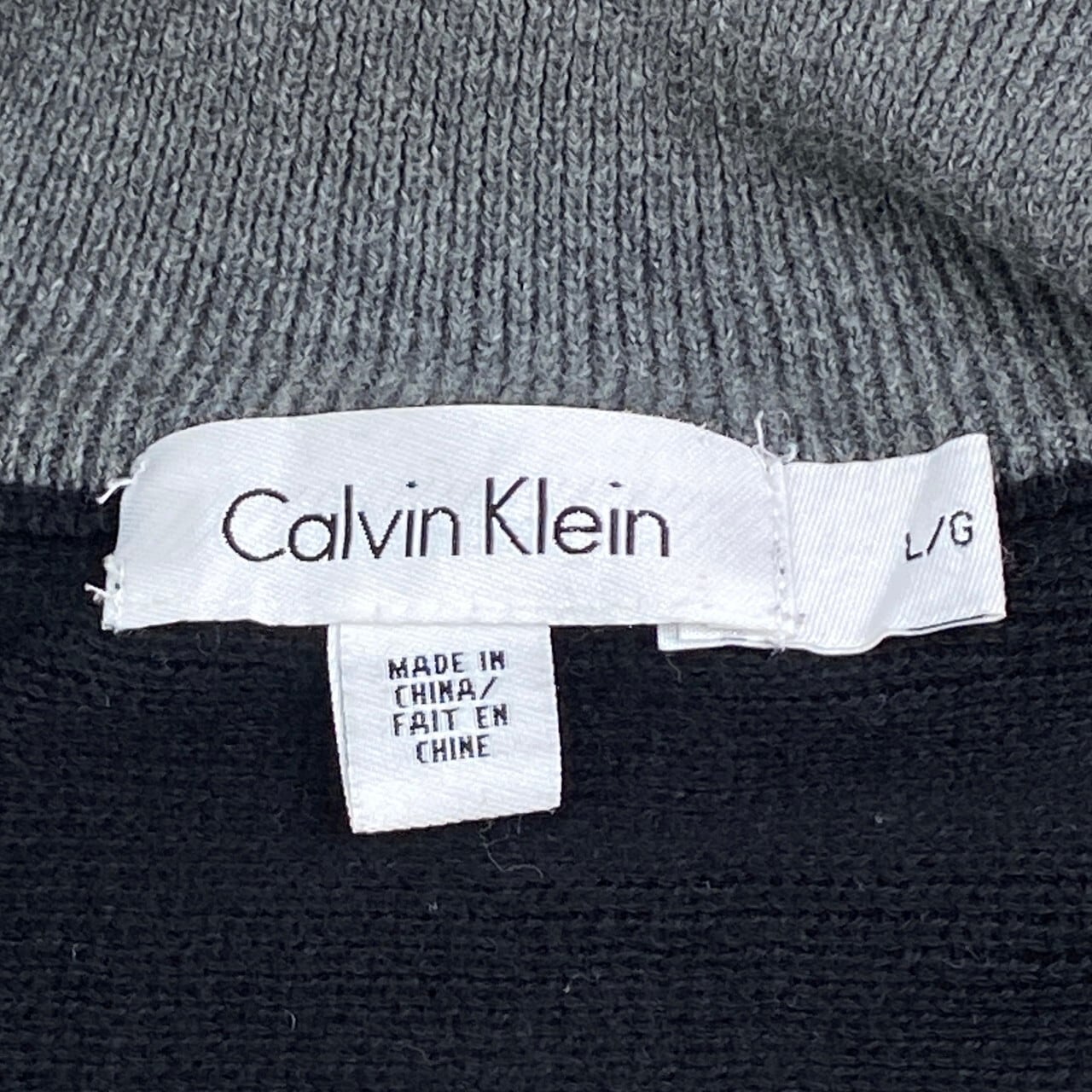 Calvin Klein カルバンクライン CK フルジップニットカーディガン ドライバーズニット ピマコットンニット メンズL 古着 グレー ブラック 灰色 黒 【ニットセーター】/マルチカラーSS30