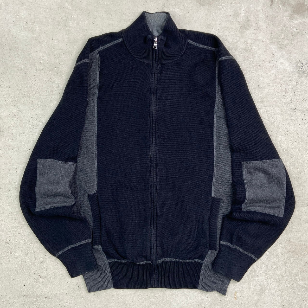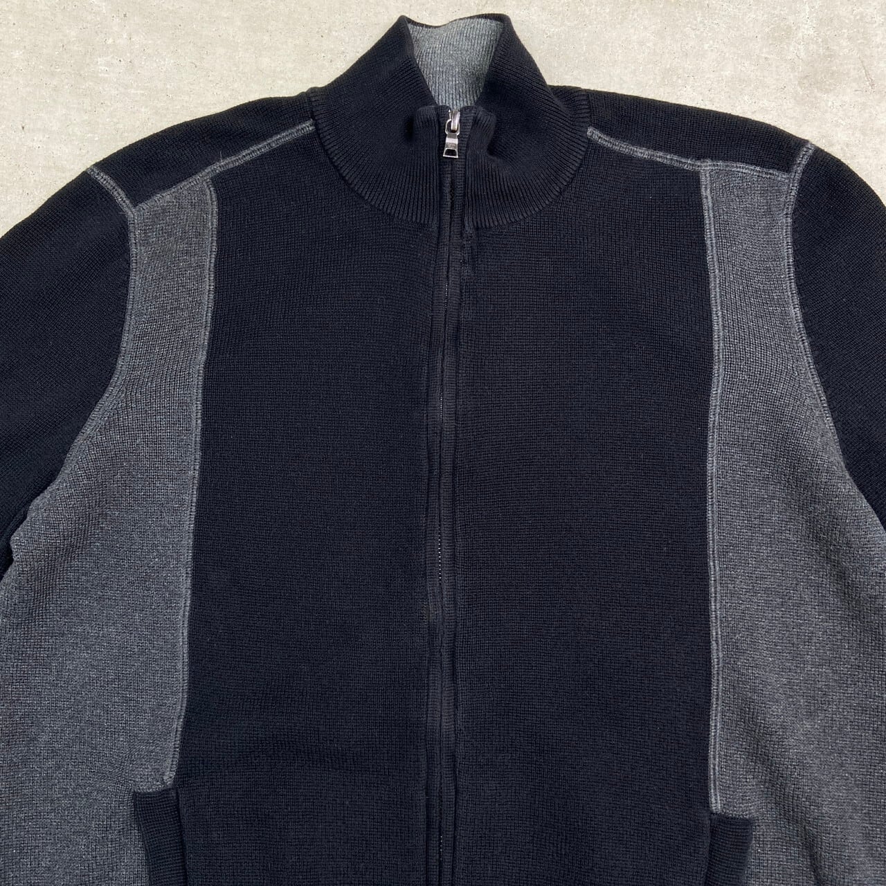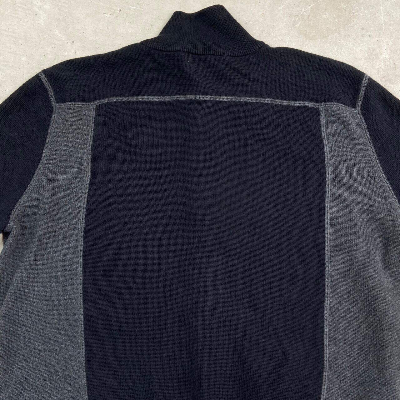 Calvin Klein カルバンクライン CK フルジップニットカーディガン ドライバーズニット ピマコットンニット メンズL 古着 グレー ブラック 灰色 黒 【ニットセーター】/マルチカラーSS30