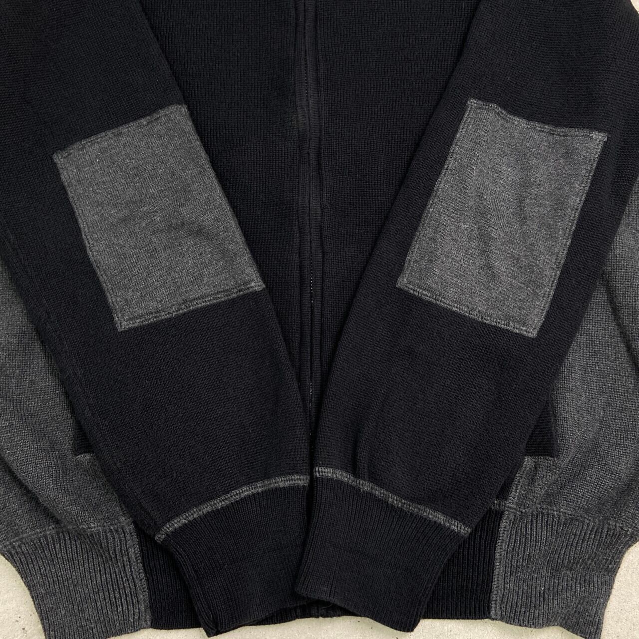 ■Calvin Klein カルバンクライン CK フルジップニットカーディガン ドライバーズニット ピマコットンニット メンズL 古着 グレー ブラック 灰色 黒 【ニットセーター】/マルチカラー