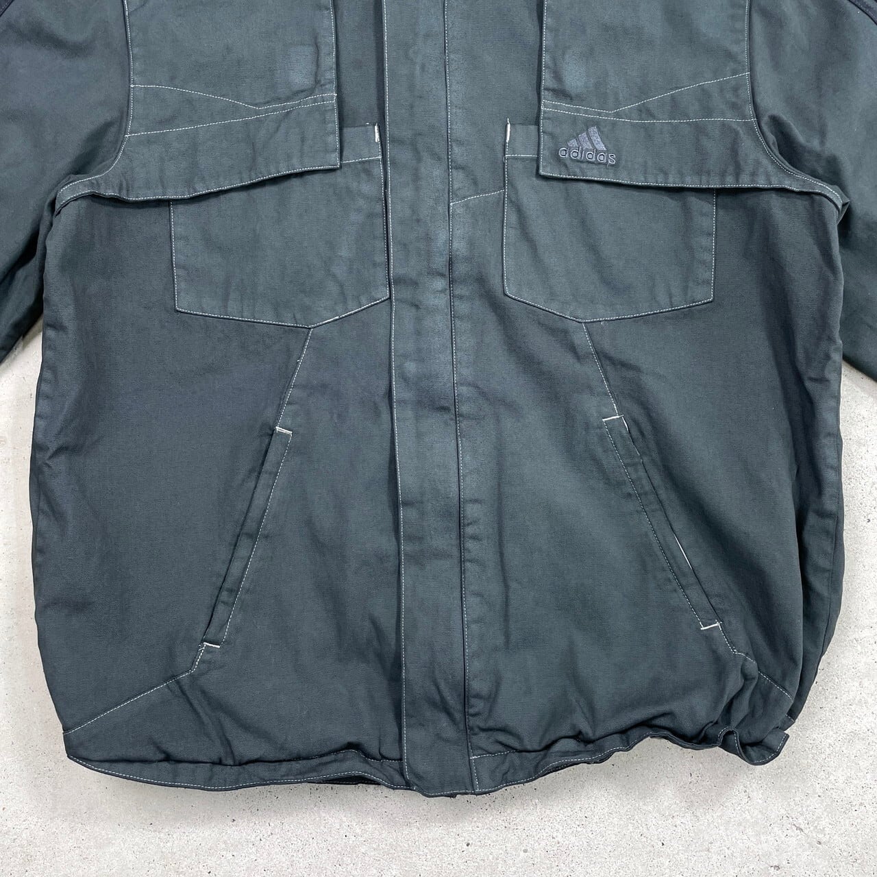 ■ 00年代 adidas アディダス 後染めブラック ダックジャケット メンズL相当 古着 00s ヴィンテージ VINTAGE Y2K テック系 メッシュライナー サイドライン フード収納型 墨黒 黒色【コットンジャケット】/ブラック