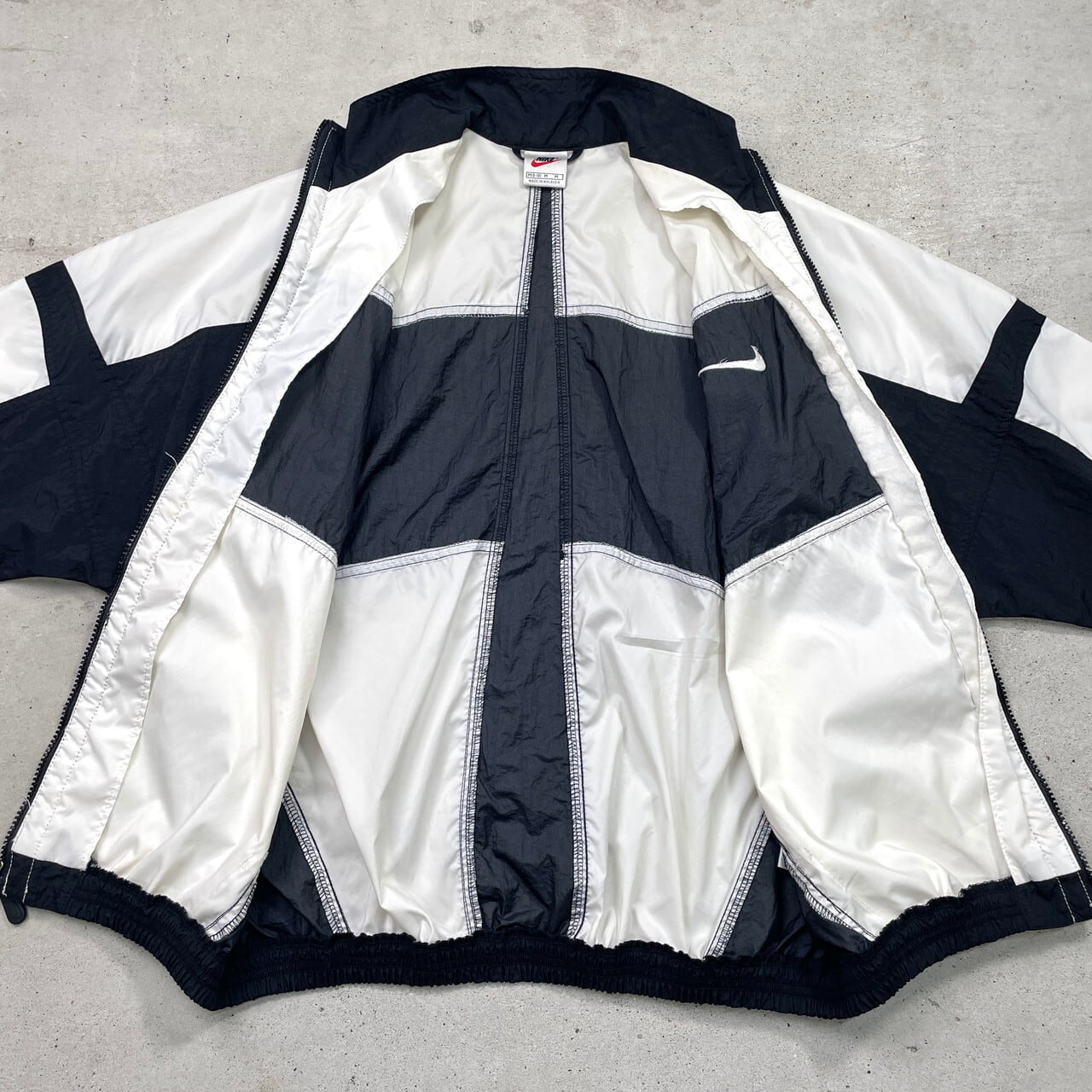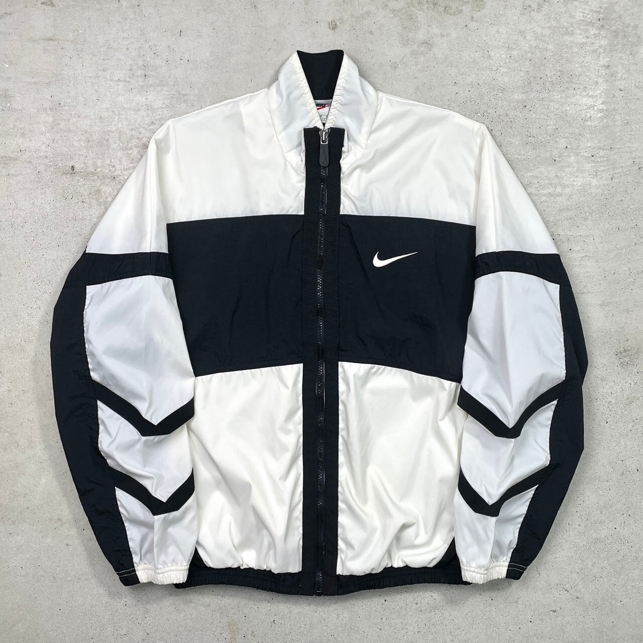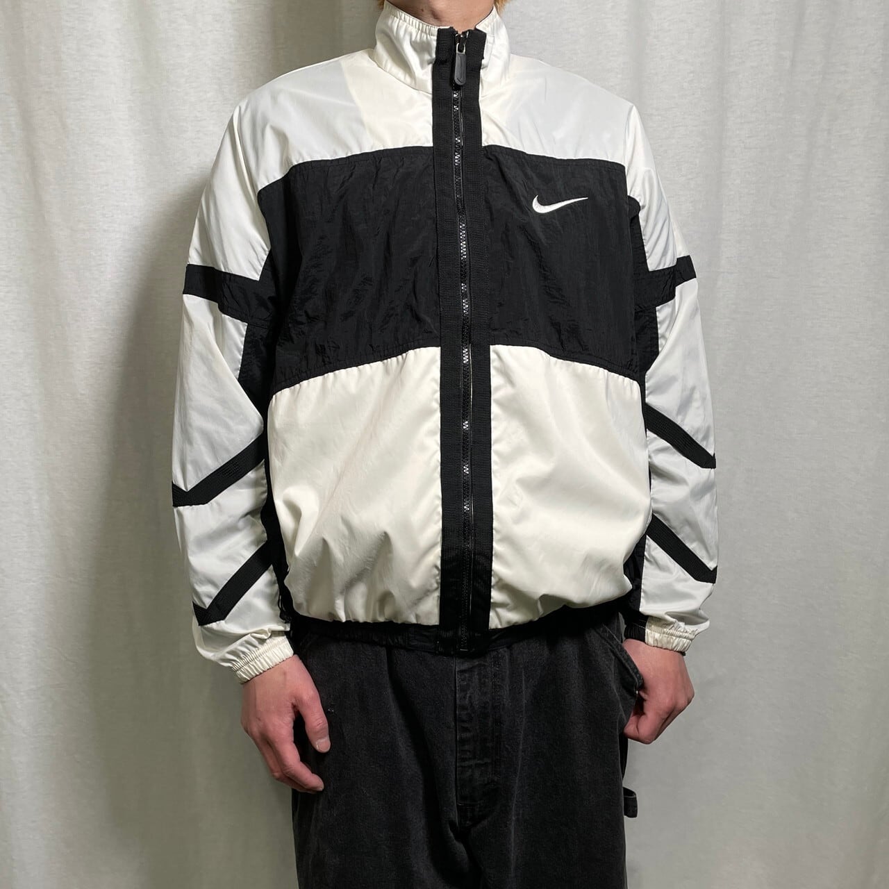 90年代 NIKE ナイキ ナイロンジャケット トラックジャケット メンズM相当 古着 90s ヴィンテージ VINTAGE 切り替え ホワイト ブラック 白色 黒色【ナイロンジャケット】/マルチカラーSS30