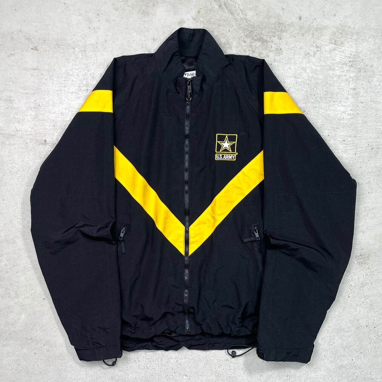 U.S.ARMY 米軍実品 APFU ミリタリー ナイロンジャケット メンズM相当 古着 ヴィンテージ VINTAGE リフレクター トレーニングウェア メッシュライナー イエロー 黒色 黄色【ナイロンジャケット】/ブラック