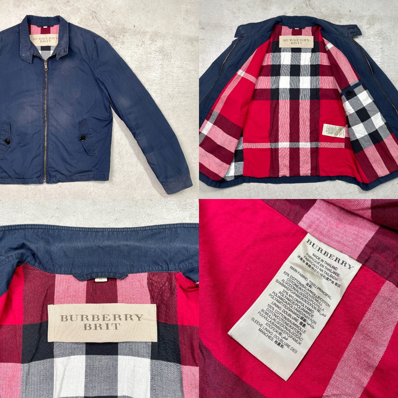 ■鬼フェード BURBERRY BRIT バーバリー スイングトップ スポーツジャケット コットンポプリン メンズXL 古着 ハリントンジャケット フェードネイビー 紺色【ブルゾン・ジャケット】/ネイビー