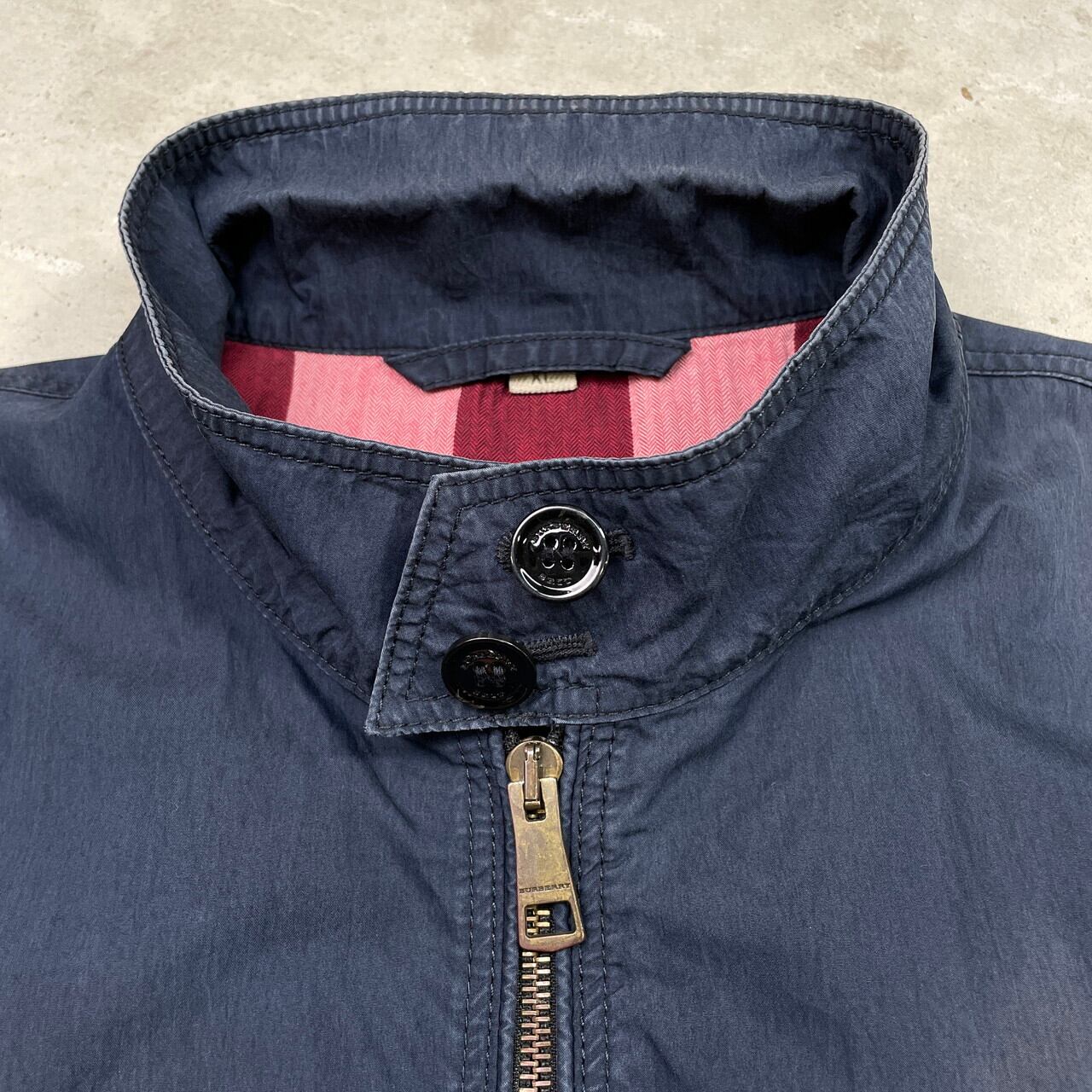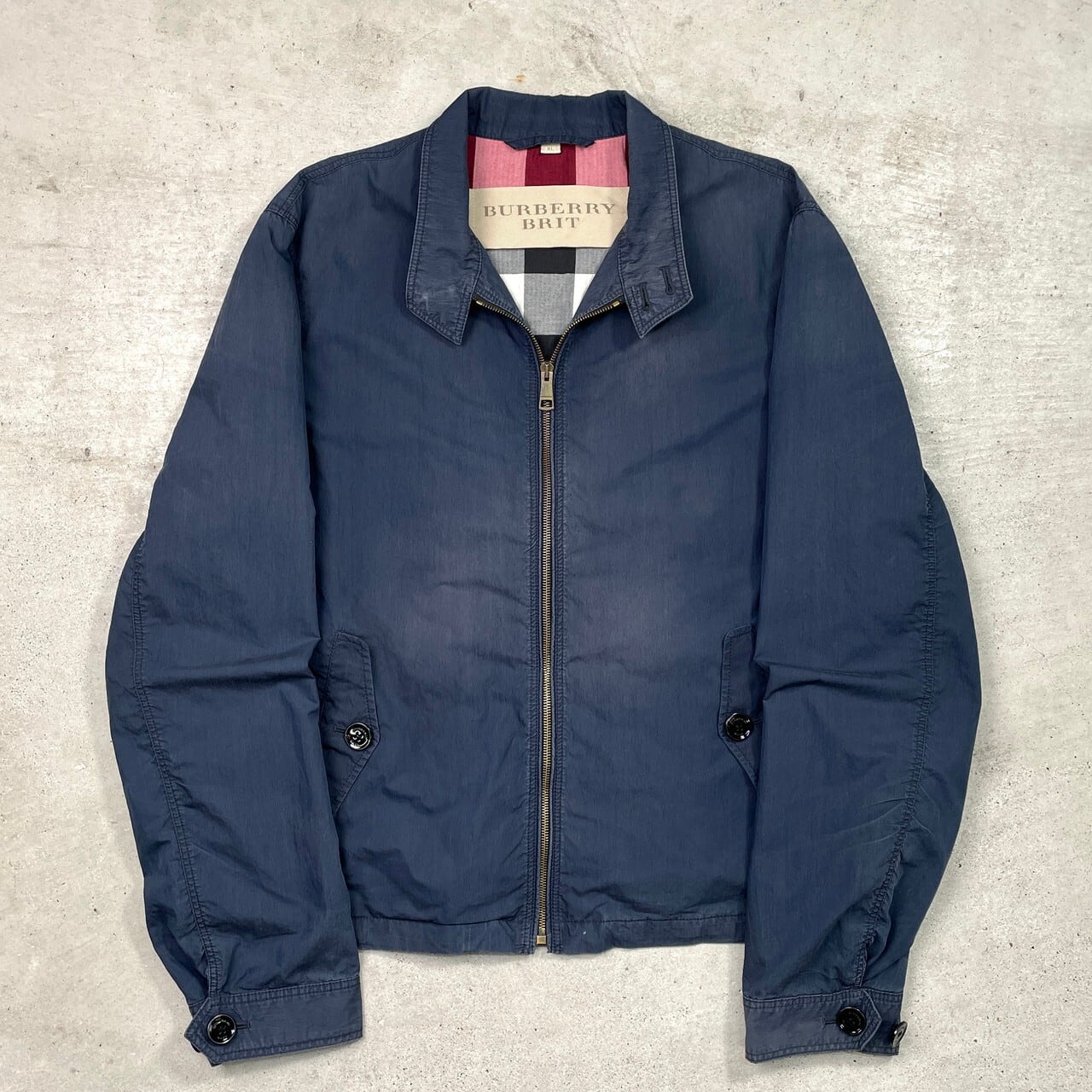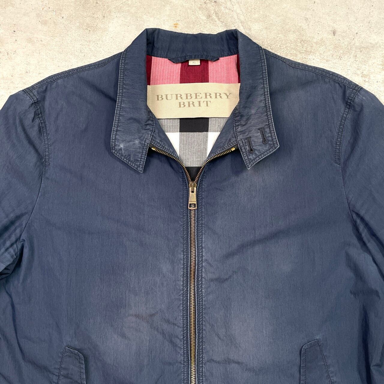 鬼フェード BURBERRY BRIT バーバリー スイングトップ スポーツジャケット コットンポプリン メンズXL 古着 ハリントンジャケット フェードネイビー 紺色【ブルゾン・ジャケット】/ネイビー