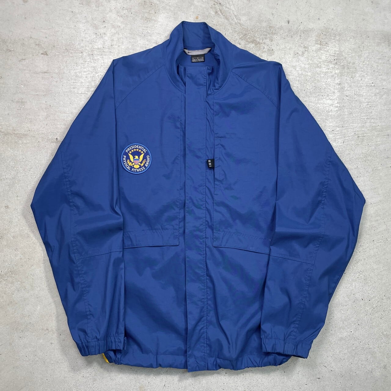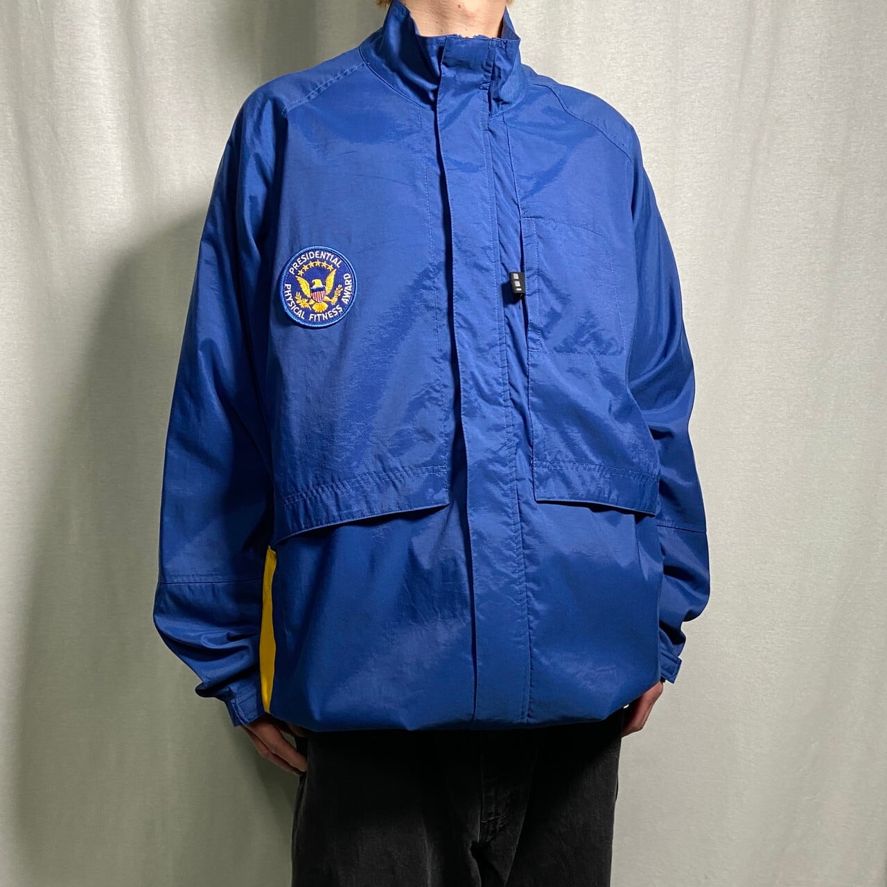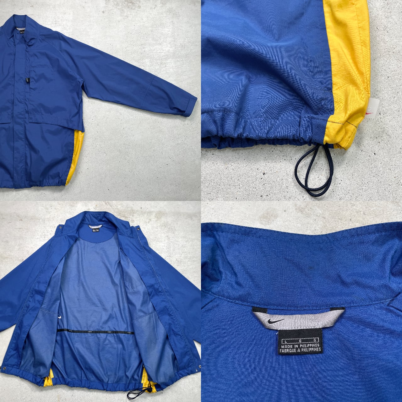 00年代 NIKE ナイキ ナイロンジャケット トラックジャケット ワッペン付き メンズXL相当 古着 00s Y2K ヴィンテージ VINTAGE ライン入り 青色 イエロー 黄色【ナイロンジャケット】/ブルーSS30