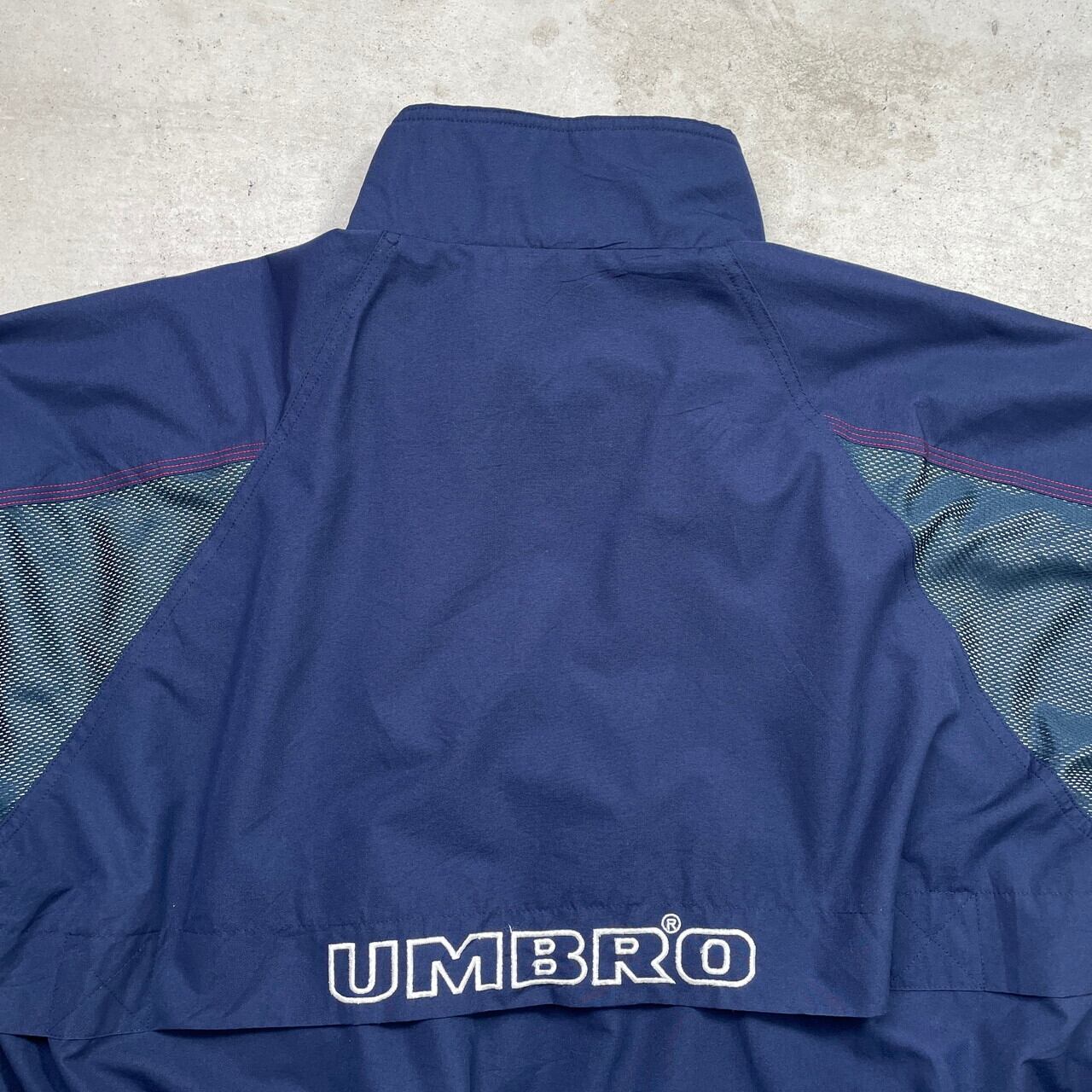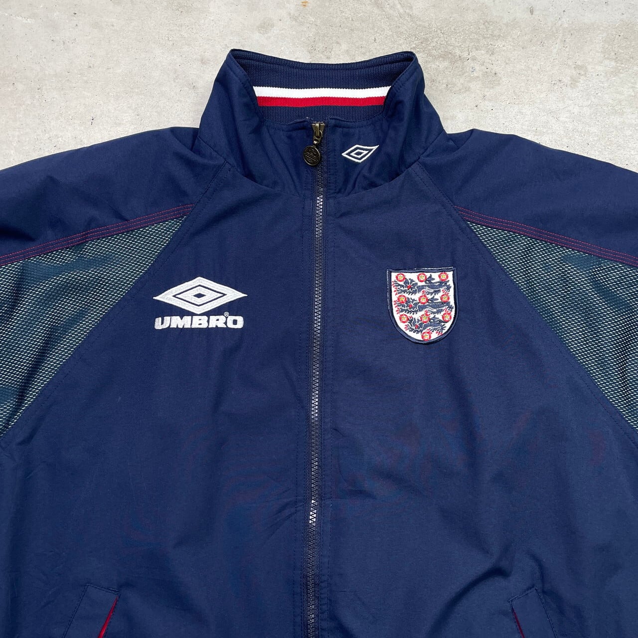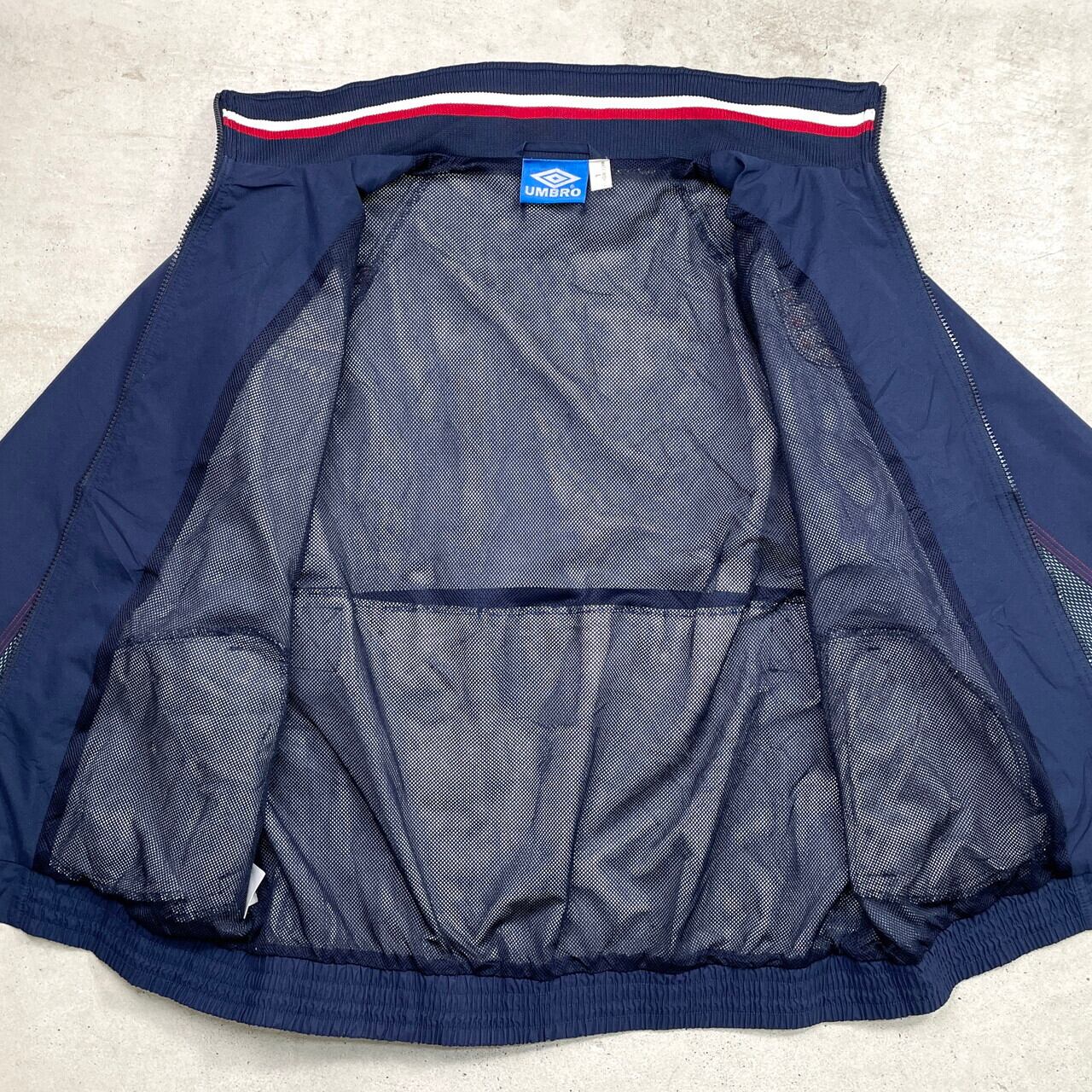 90年代 UMBRO アンブロ イングランド代表 ポリエステルトラックジャケット メンズXL相当 古着 90s VINTAGE ヴィンテージ メッシュ切り替え サッカー ロゴ刺繍 紺色 【ナイロンジャケット】/ネイビー