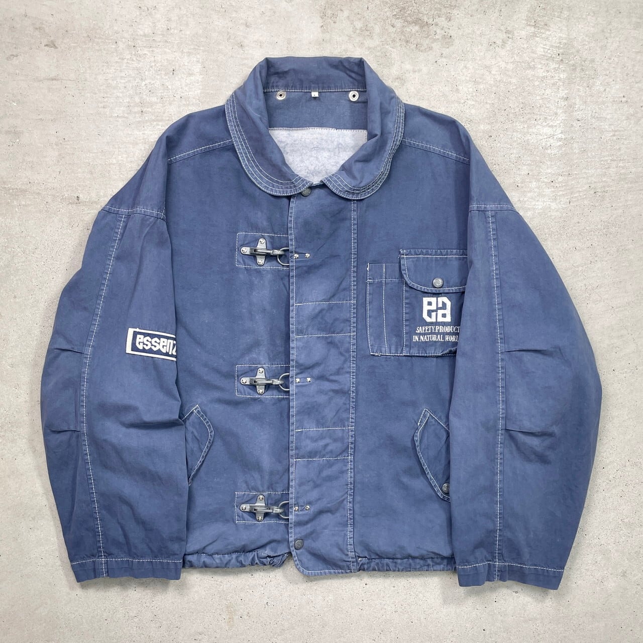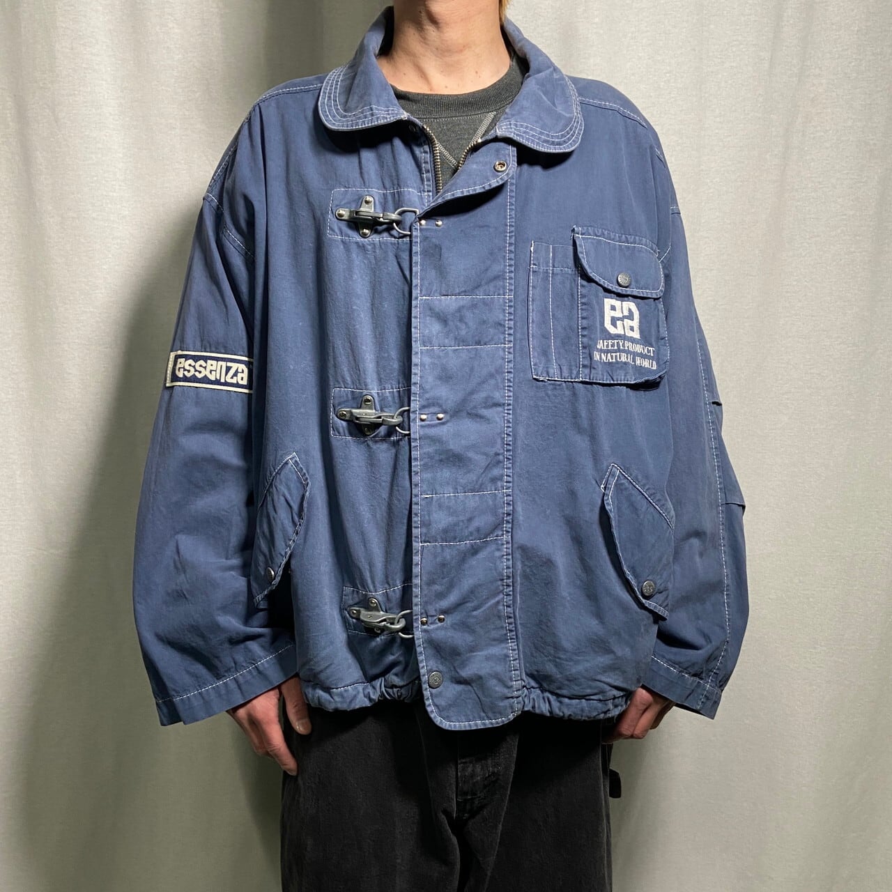 90年代 ESSENZA 短丈 コットンファイヤーマンジャケット メンズL 古着 90s ヴィンテージ VINTAGE ユーロ 裾ドローコード フェードブルー 水色【コットンジャケット】/ブルー