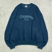 ■00年代 Champion チャンピオン スウェットシャツ インサイドアウト ビッグロゴ刺繍 メンズ2XL 古着 00s ヴィンテージ VINTAGE Y2K トレーナー 前Vガゼット 紺色 ビッグサイズ 大きいサイズ 【スウェット】/ネイビー