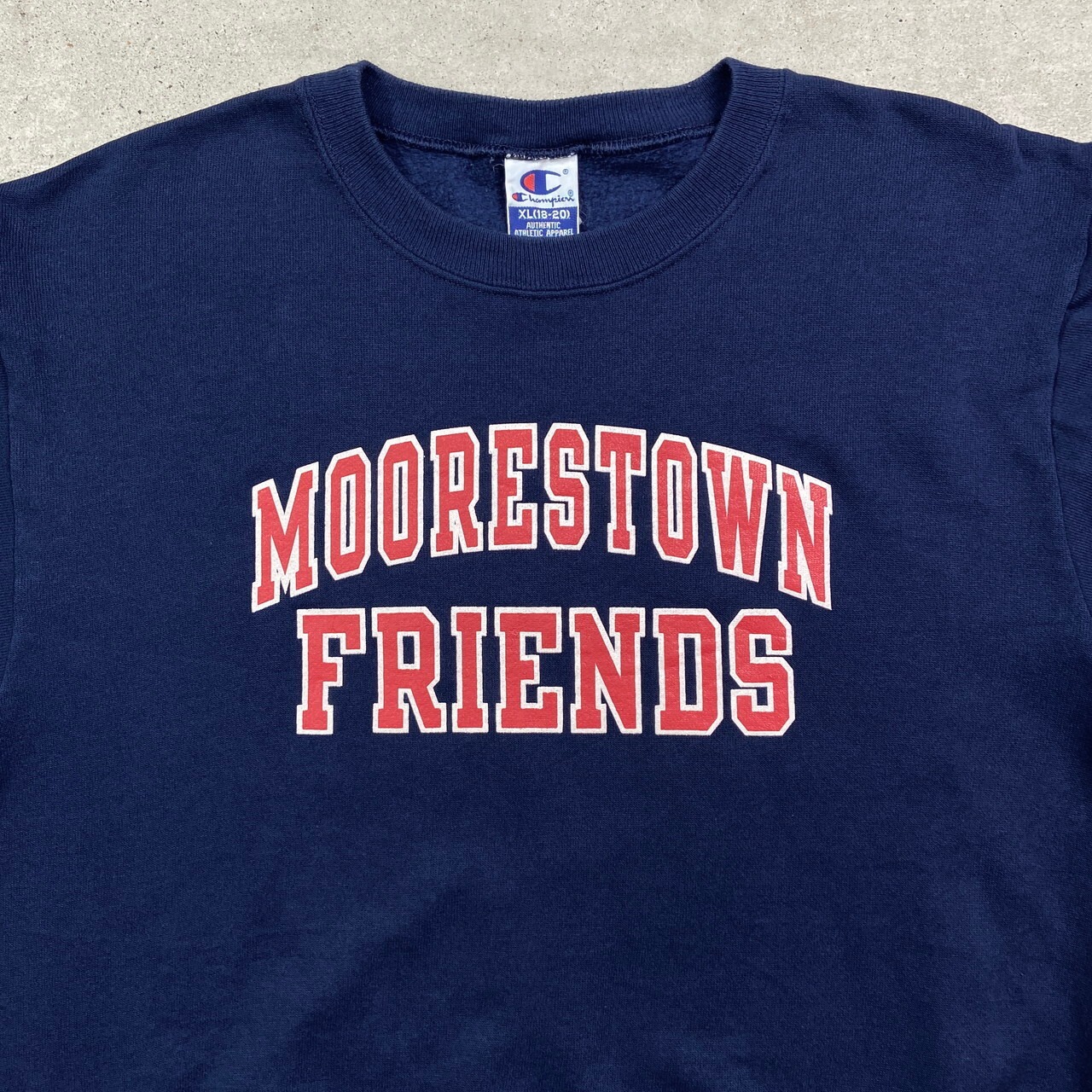 ■00年代 Champion チャンピオン スウェットシャツ カレッジロゴプリント メンズM相当 古着 00s ヴィンテージ VINTAGE Y2K トレーナー MOORESTOWN FRIENDS 紺色 【スウェット】/ネイビー