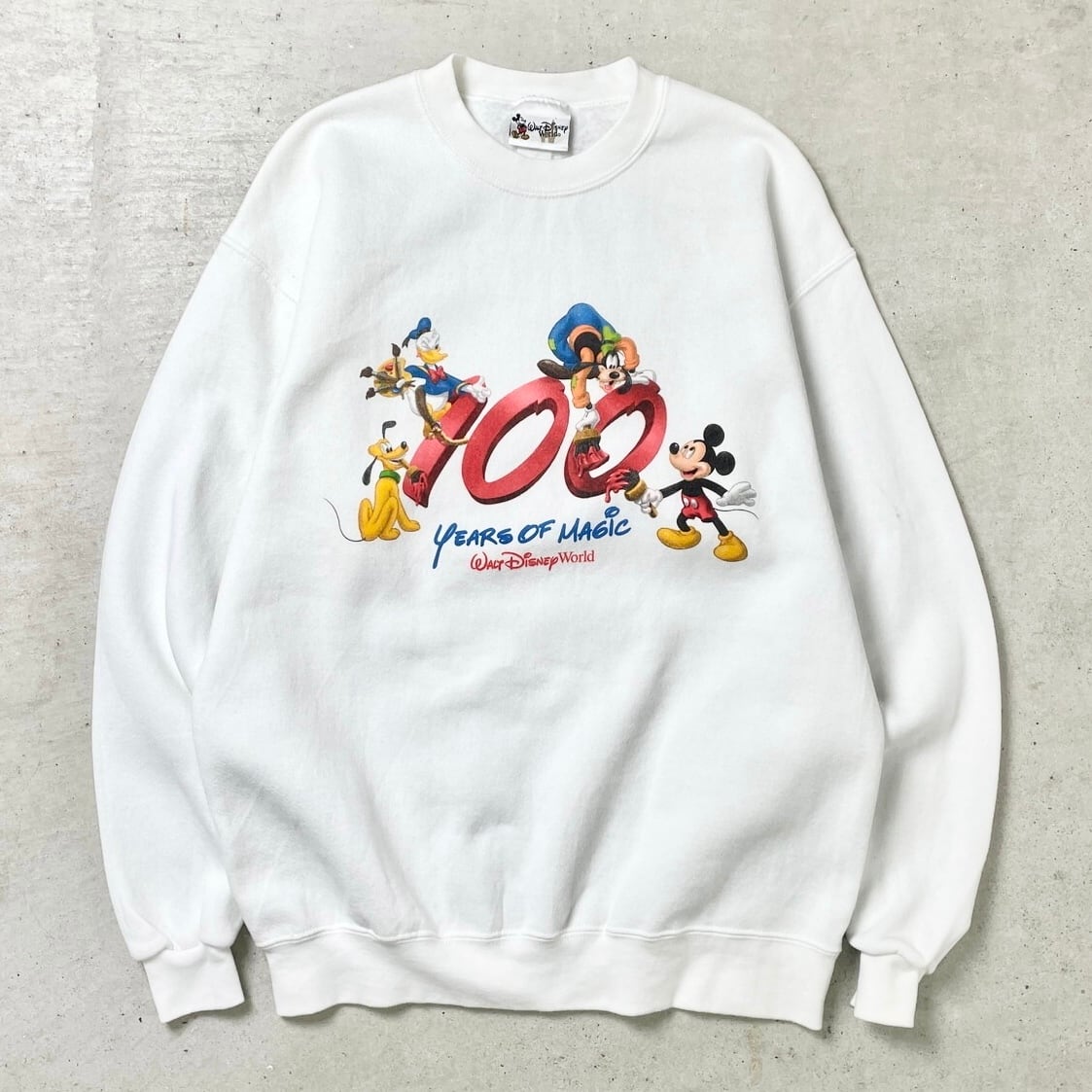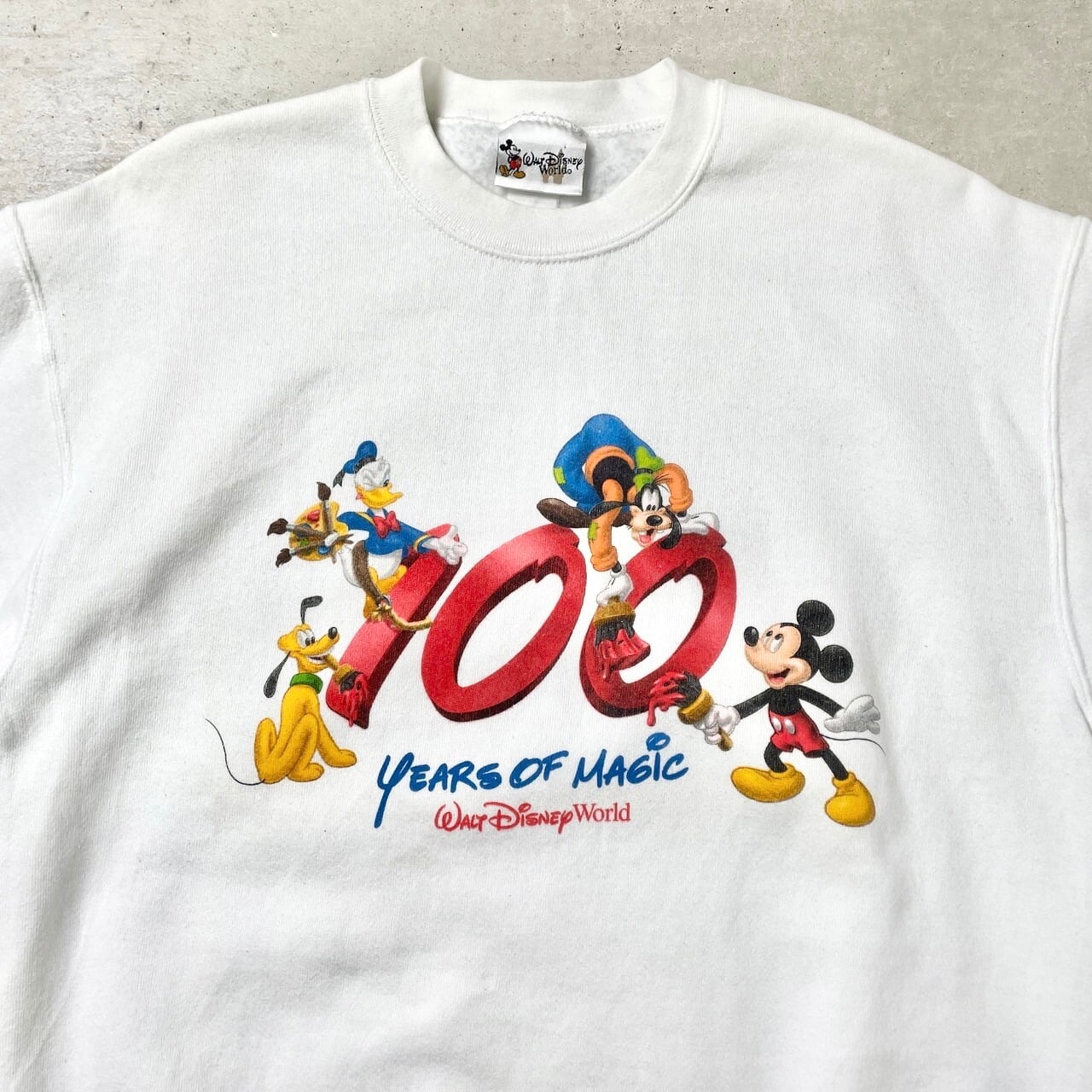 00年代 WALT DISNEY WORLD ディズニーワールド キャラクタープリントスウェットシャツ ウォルト生誕100周年 メンズM 古着 00s ヴィンテージ VINTAGE Y2K ミッキー グーフィー ドナルドダック プルート ミキフレ 白色【スウェット】/ホワイトSS30