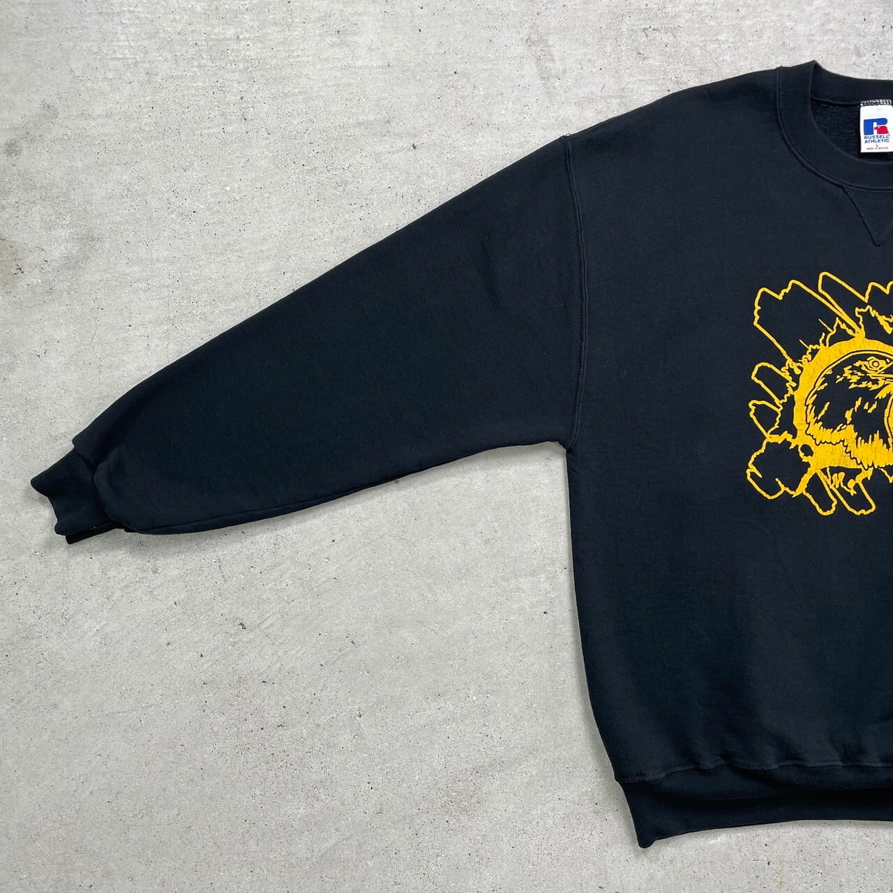 ■00年代 刺繍タグ RUSSELL ATHLETIC ラッセル イーグル アニマルプリント ナンバリング スウェットシャツ メンズXL相当 古着 00s Y2K ヴィンテージ VINTAGE 前Vガゼット アメカジ トレーナー チーム 両面プリント 黒色【スウェット】/ブラック