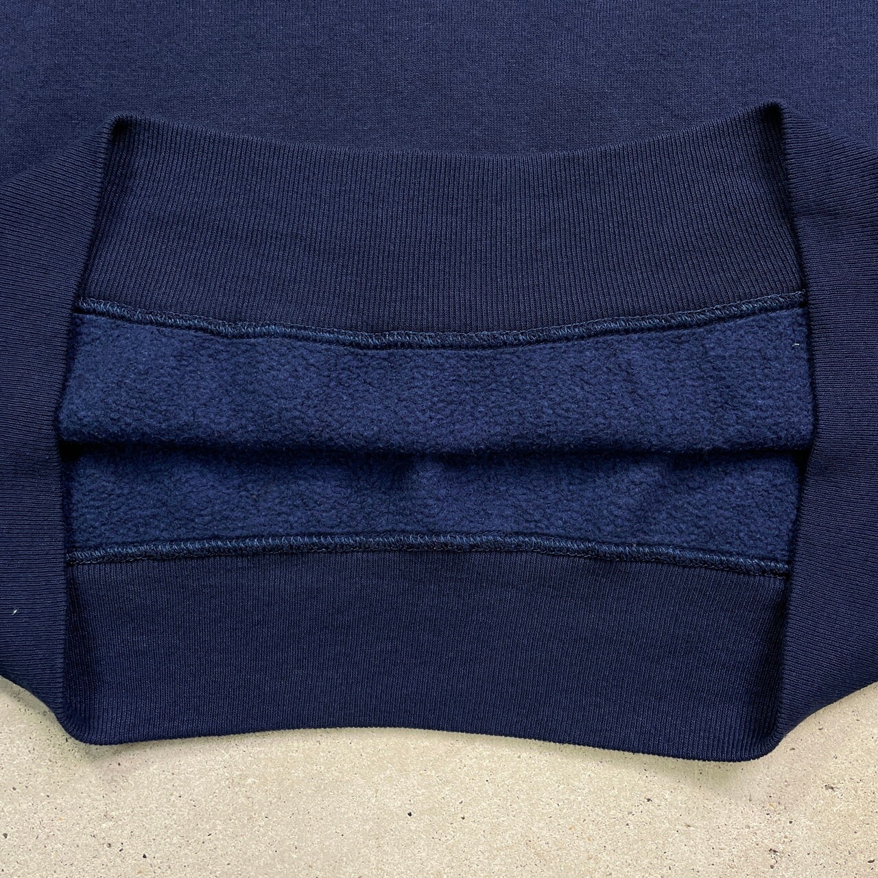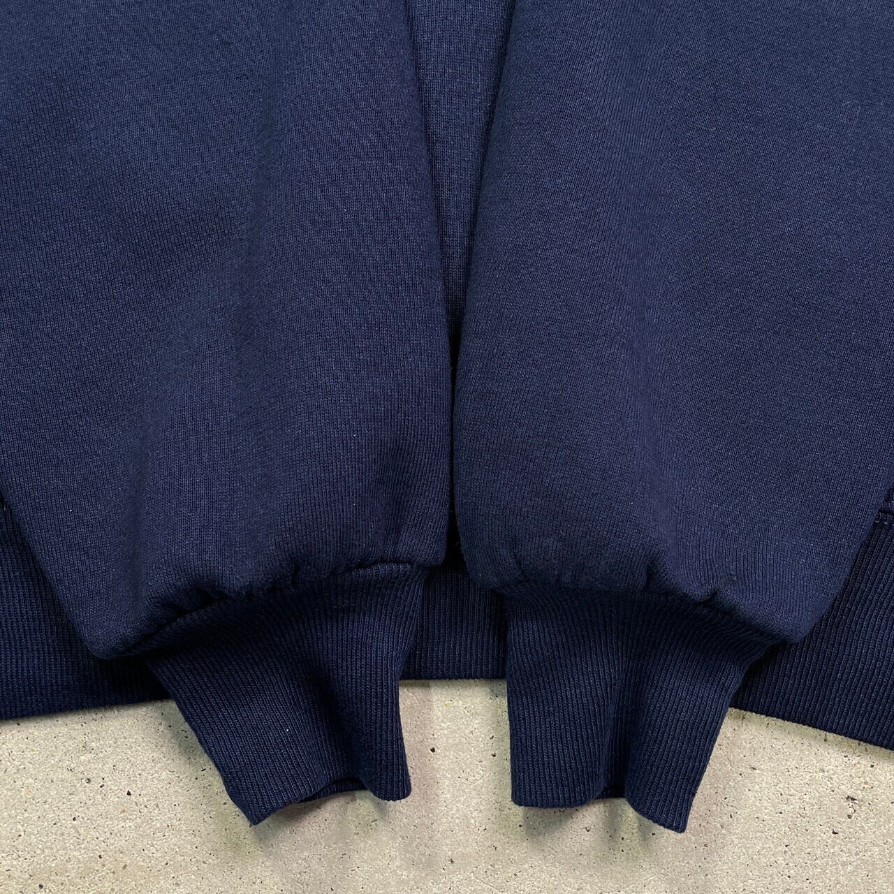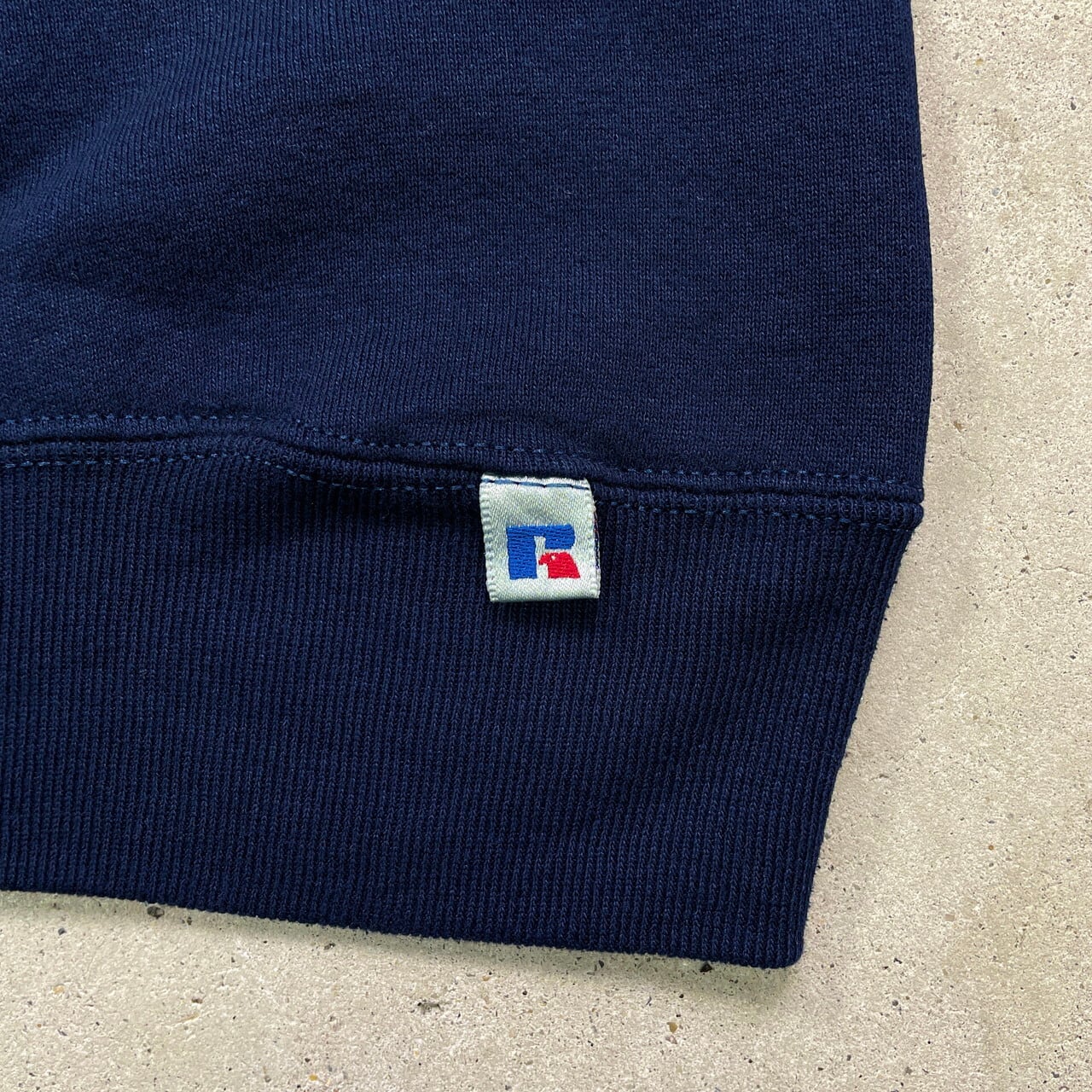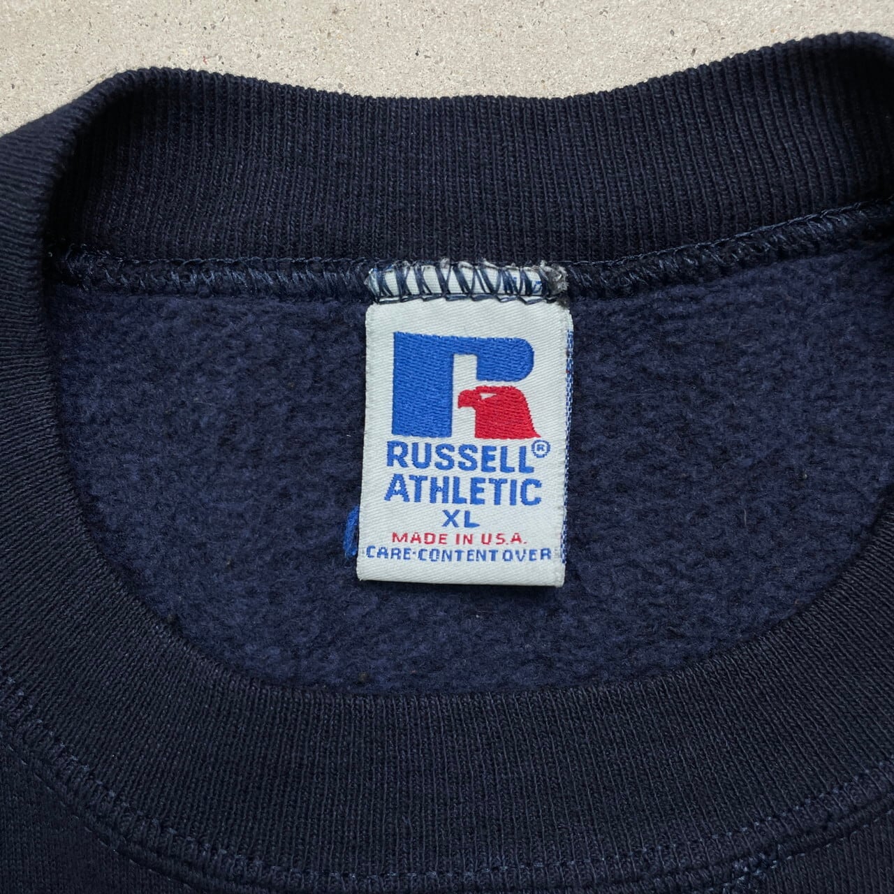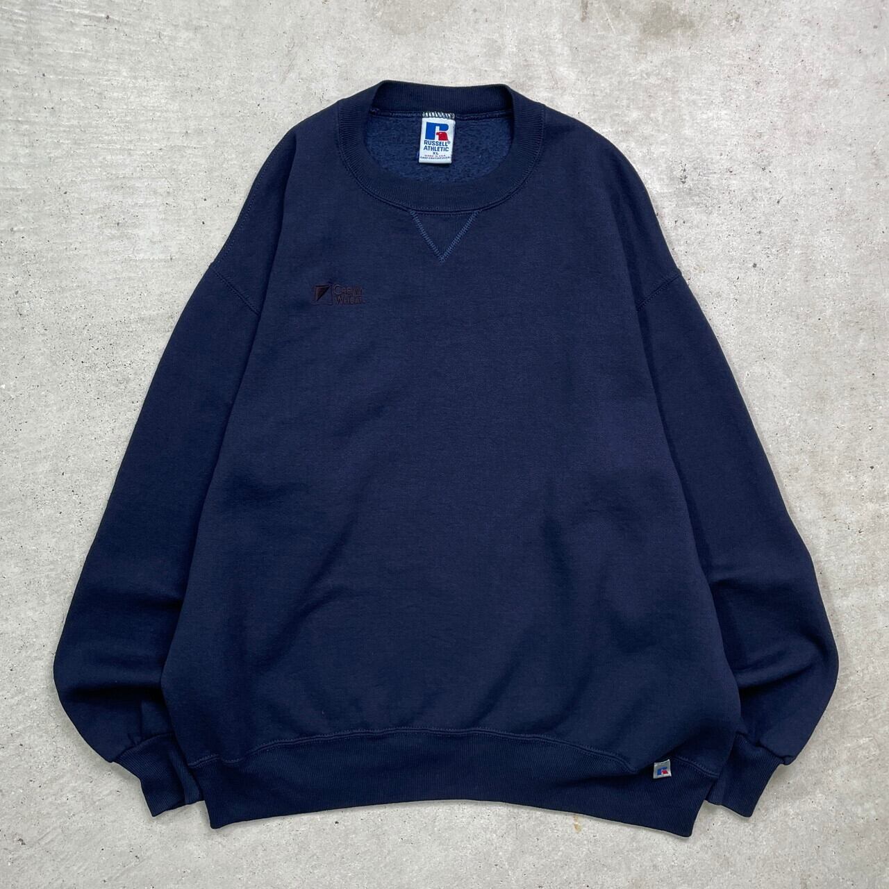 90年代 USA製 RUSSELL ATHLETIC ラッセル CREAM OF WHEAT 企業ロゴ刺繍 スウェットシャツ メンズL相当 古着 90s ヴィンテージ VINTAGE 前Vガゼット アメカジ トレーナー クリームオブホイート 刺繍タグ 紺色【スウェット】/ネイビーSS30