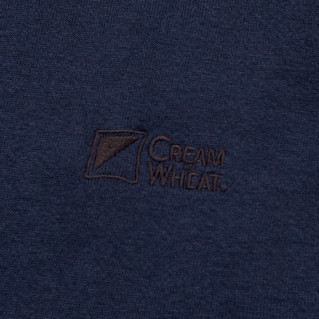 ■90年代 USA製 RUSSELL ATHLETIC ラッセル CREAM OF WHEAT 企業ロゴ刺繍 スウェットシャツ メンズL相当 古着 90s ヴィンテージ VINTAGE 前Vガゼット アメカジ トレーナー クリームオブホイート 刺繍タグ 紺色【スウェット】/ネイビー