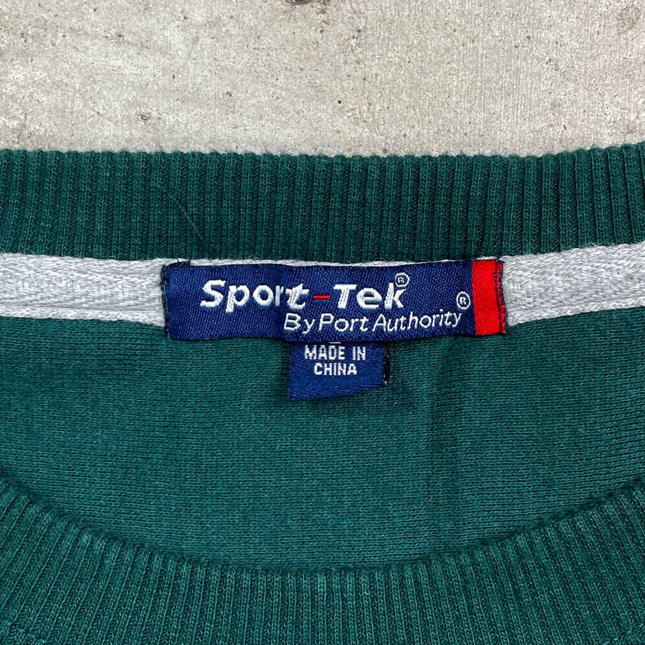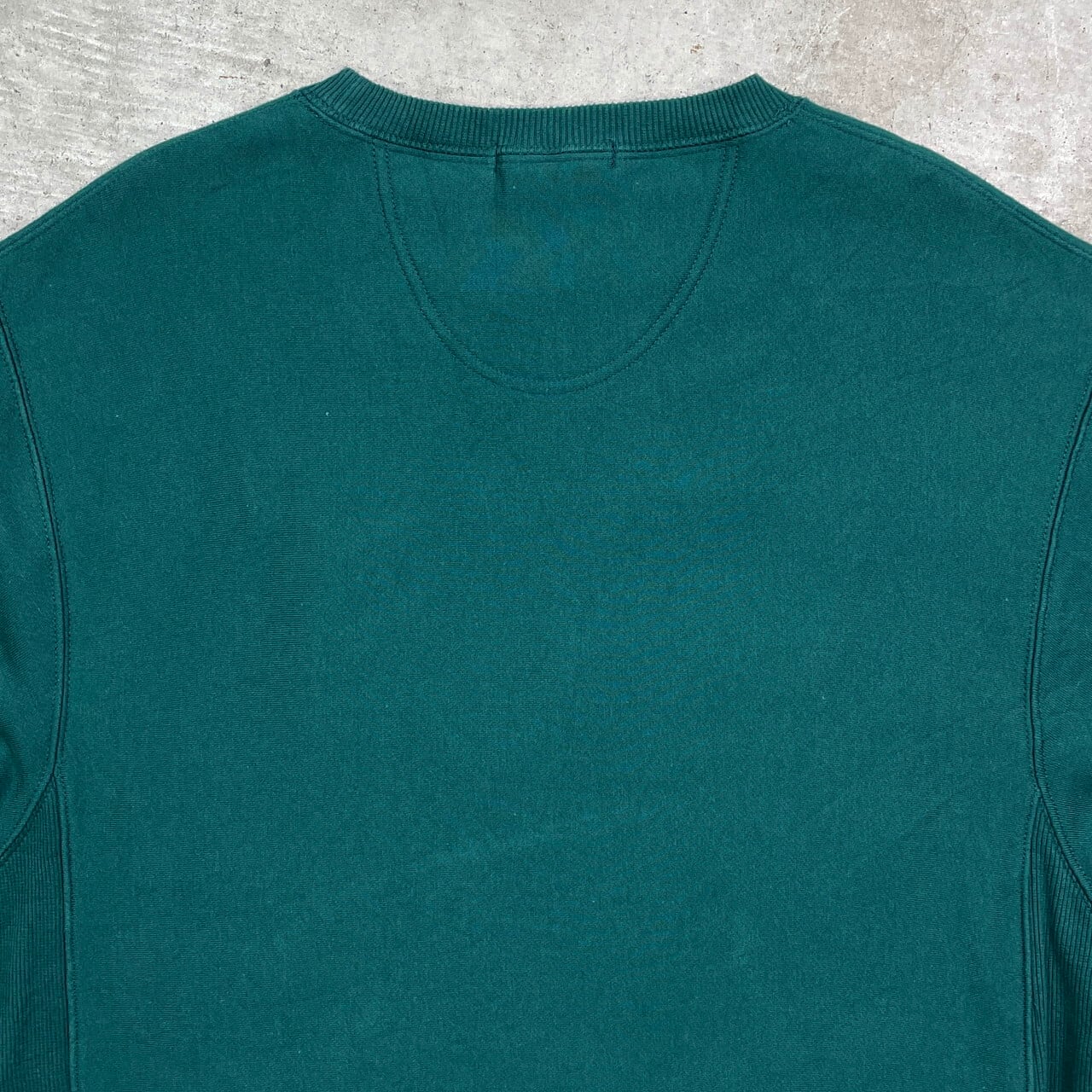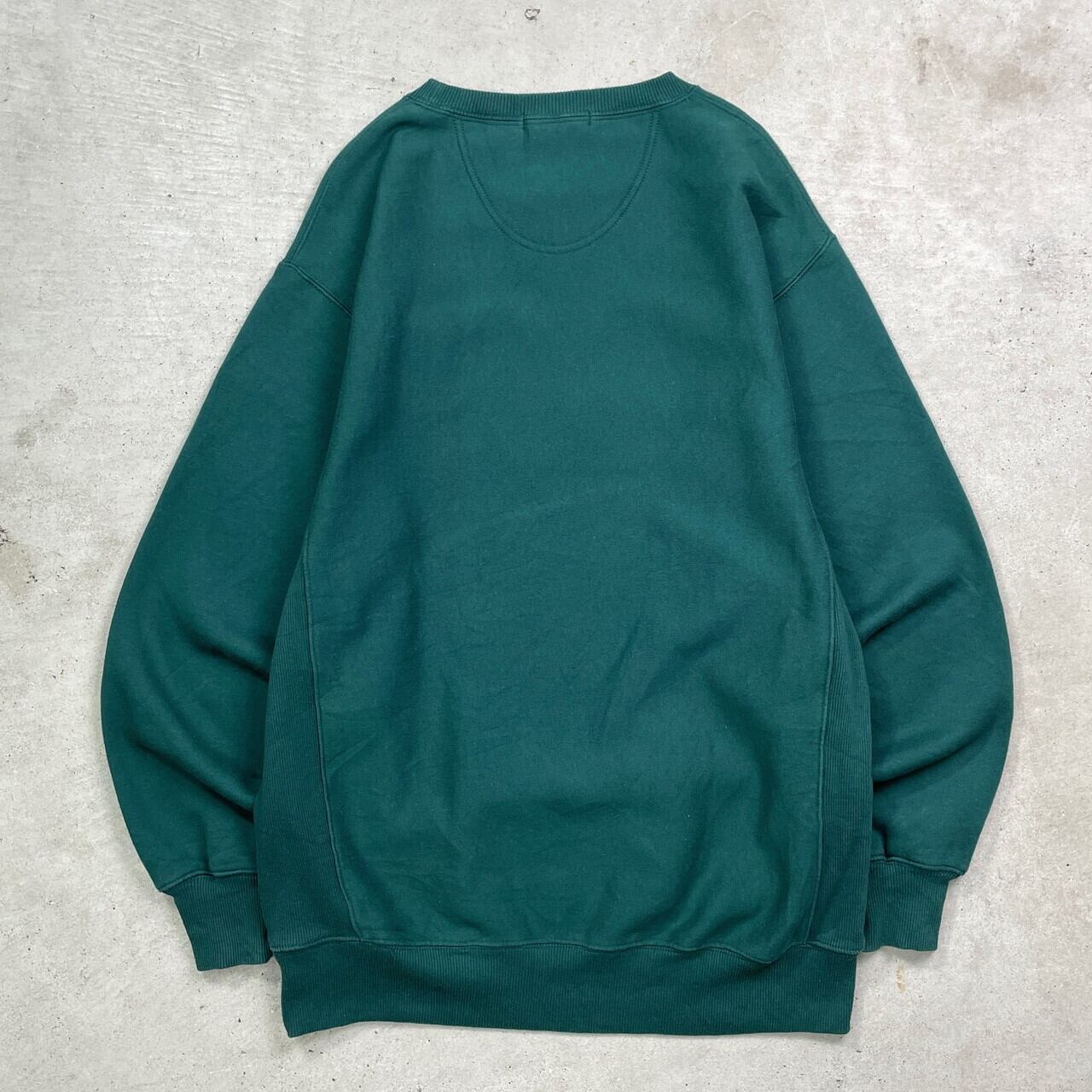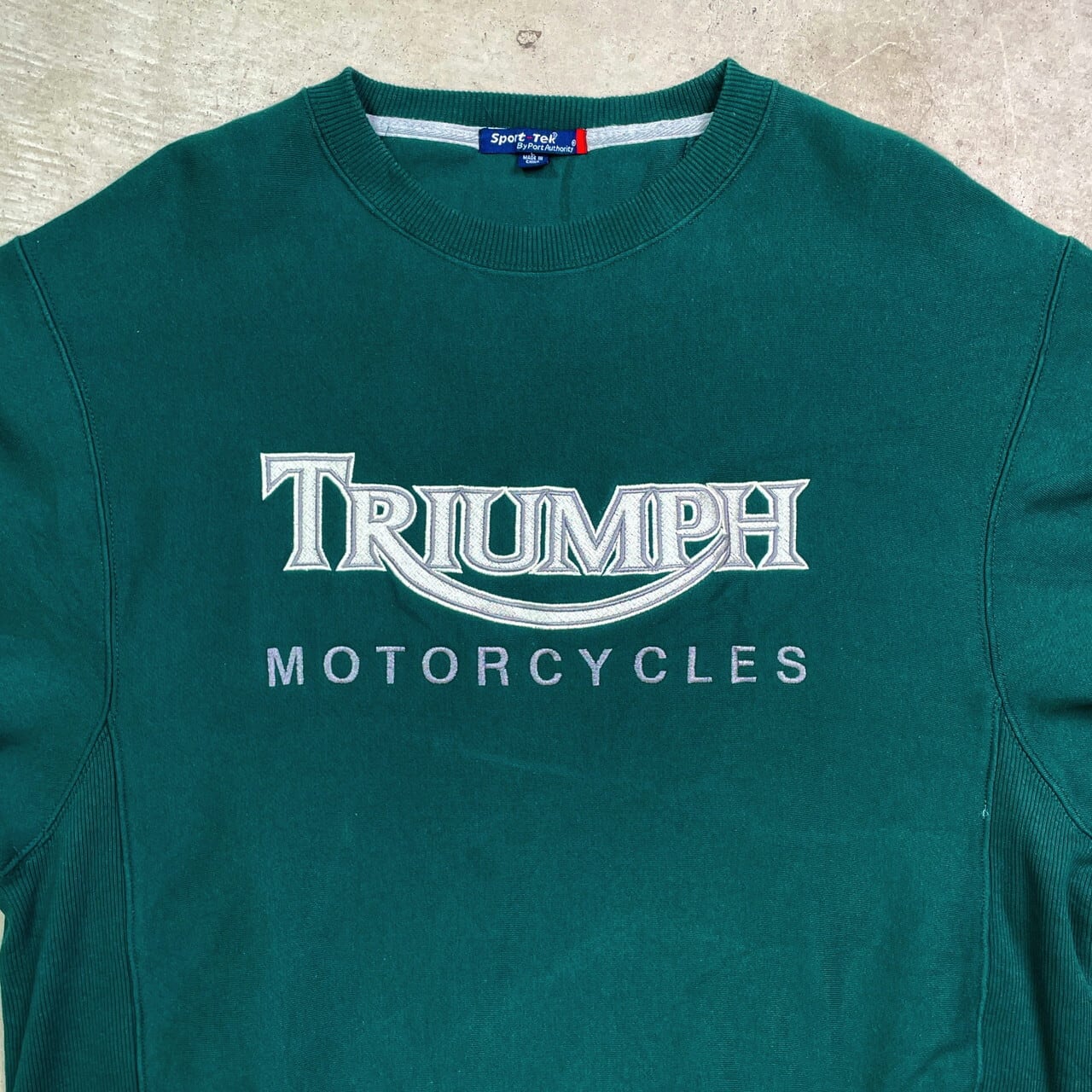 TRIUMPH MOTORCYCLES トライアンフ 企業ロゴ刺繍 リバースタイプ スウェットシャツ メンズXL相当 古着 アメカジ アドバタイジング 緑色【スウェット】/グリーンSS30