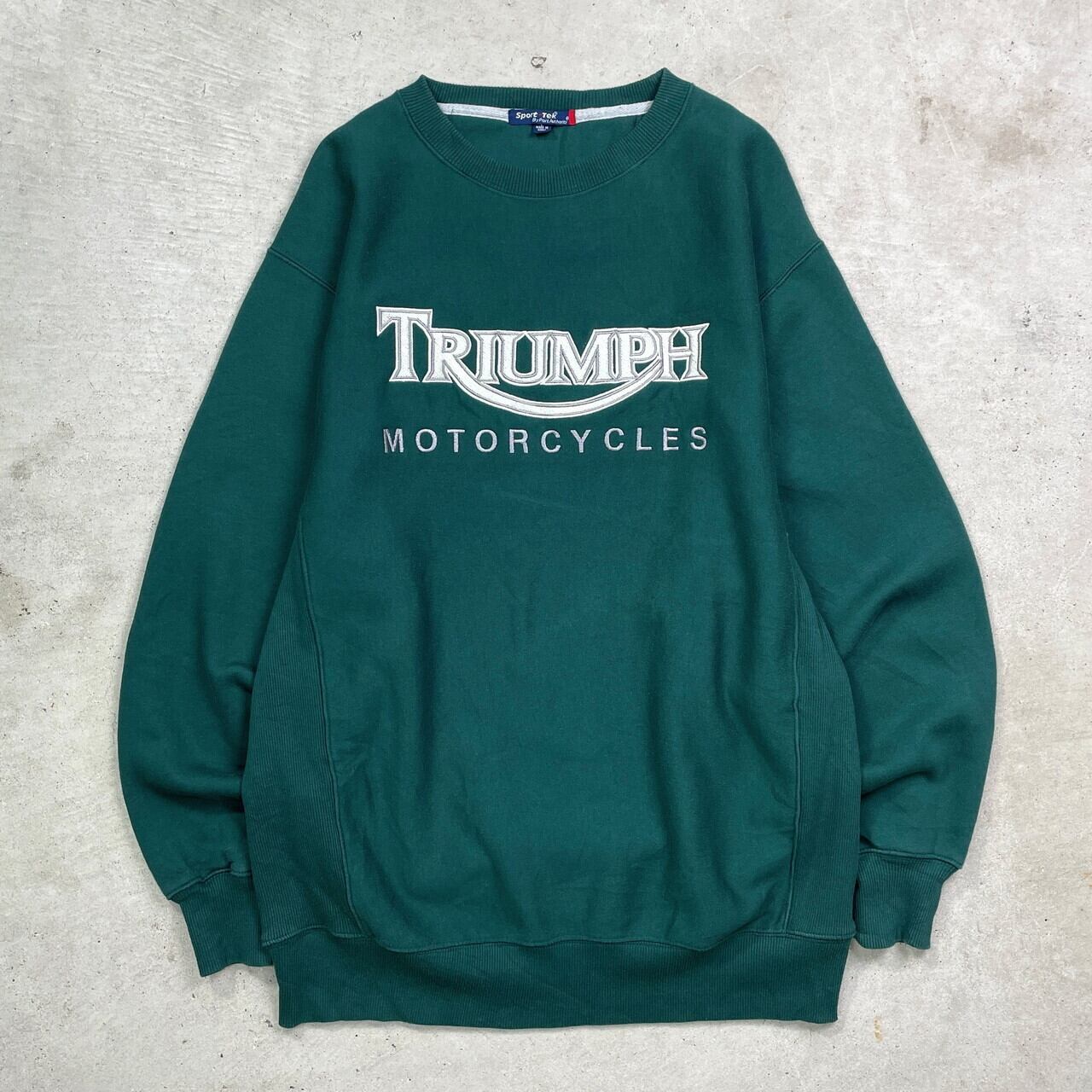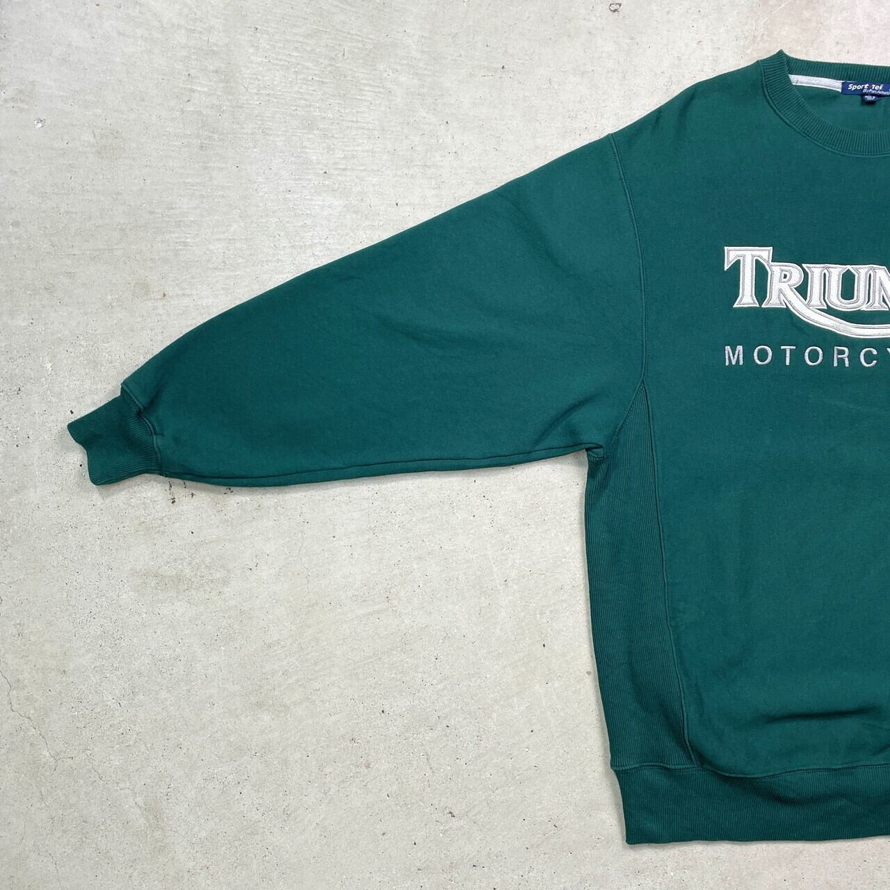 ■ TRIUMPH MOTORCYCLES トライアンフ 企業ロゴ刺繍 リバースタイプ スウェットシャツ メンズXL相当 古着 アメカジ アドバタイジング 緑色【スウェット】/グリーン