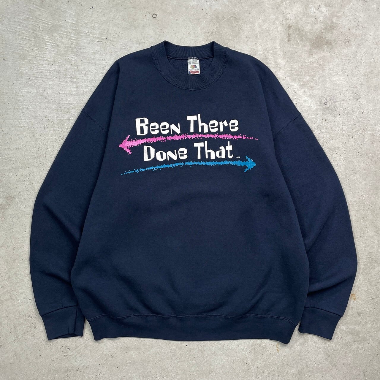 90年代 USA製 Been There Done That メッセージプリント スウェットシャツ メンズXL 古着 90s ヴィンテージ VINTAGE トレーナー 紺色【スウェット】/ネイビーSS30
