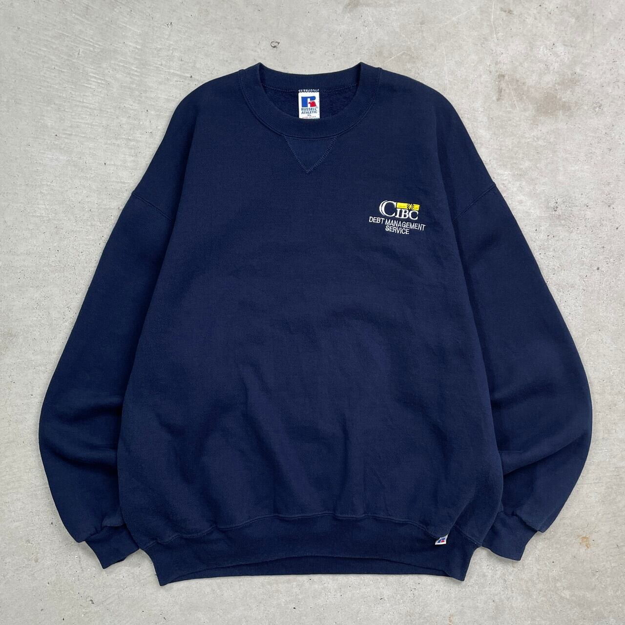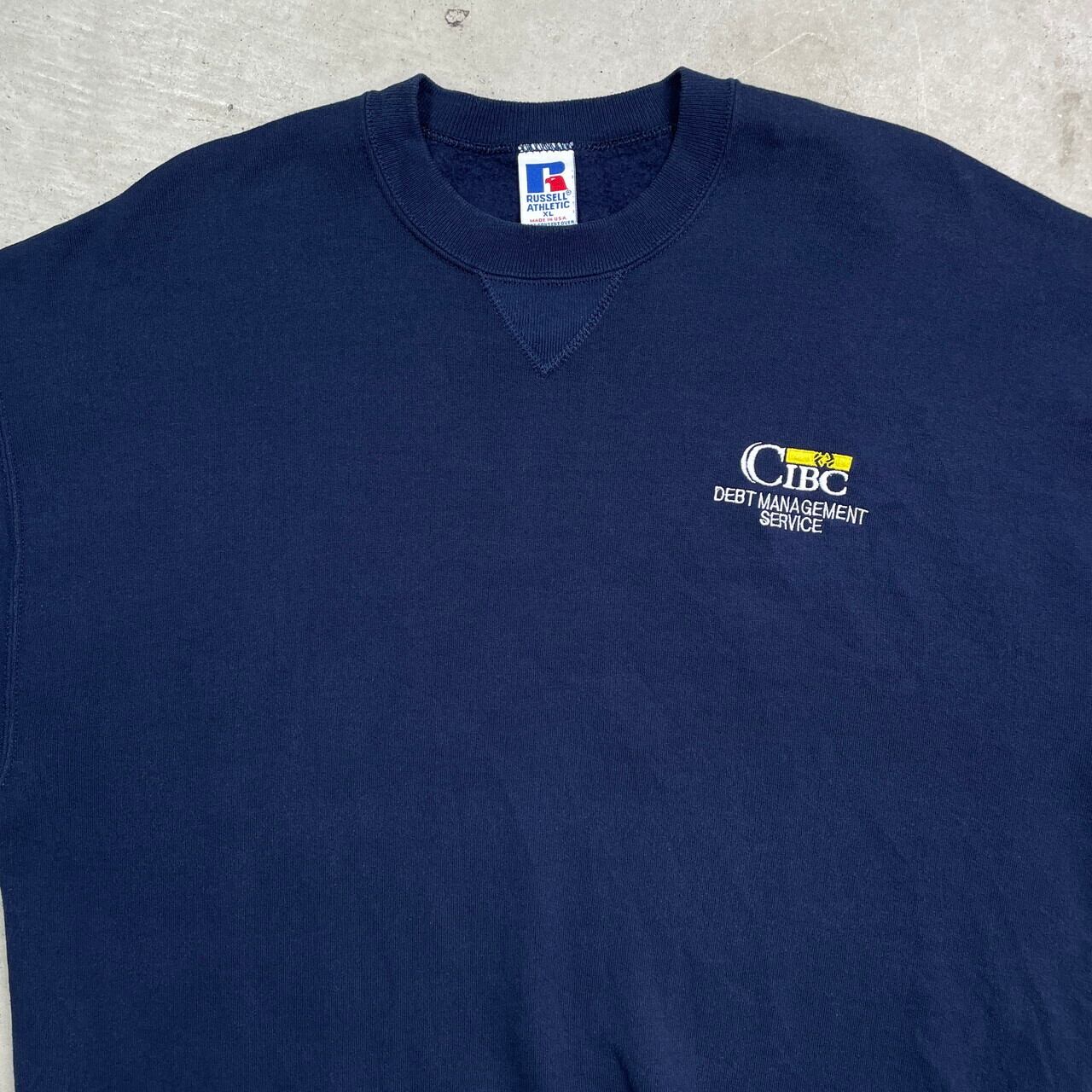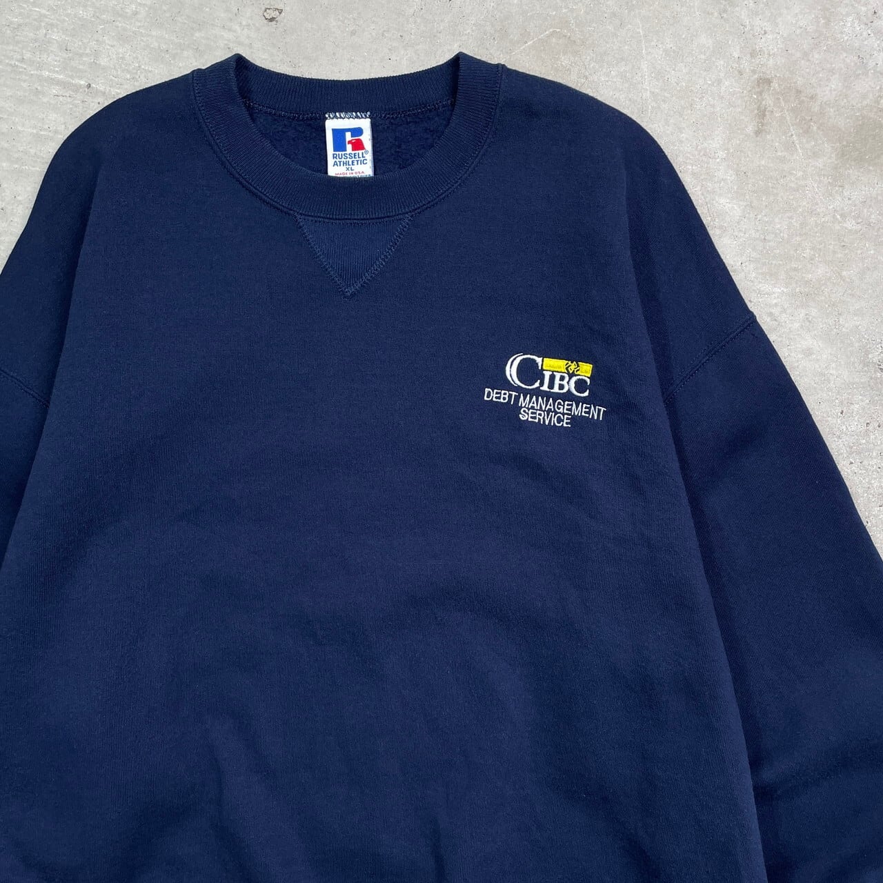 ■90年代 USA製 RUSSELL ATHLETIC ラッセル CIBC 企業ロゴ刺繍 スウェットシャツ メンズXL 古着 90s ヴィンテージ VINTAGE 前Vガゼット アメカジ トレーナー 刺繍タグ 紺色【スウェット】/ネイビー