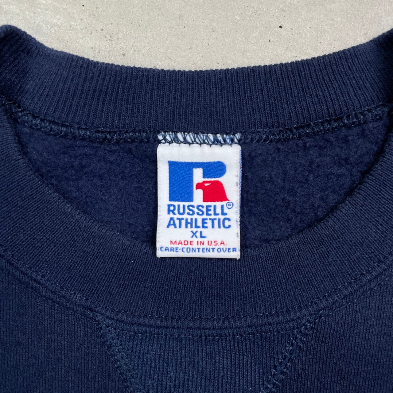 90年代 USA製 RUSSELL ATHLETIC ラッセル CIBC 企業ロゴ刺繍 スウェットシャツ メンズXL 古着 90s ヴィンテージ VINTAGE 前Vガゼット アメカジ トレーナー 刺繍タグ 紺色【スウェット】/ネイビーSS30