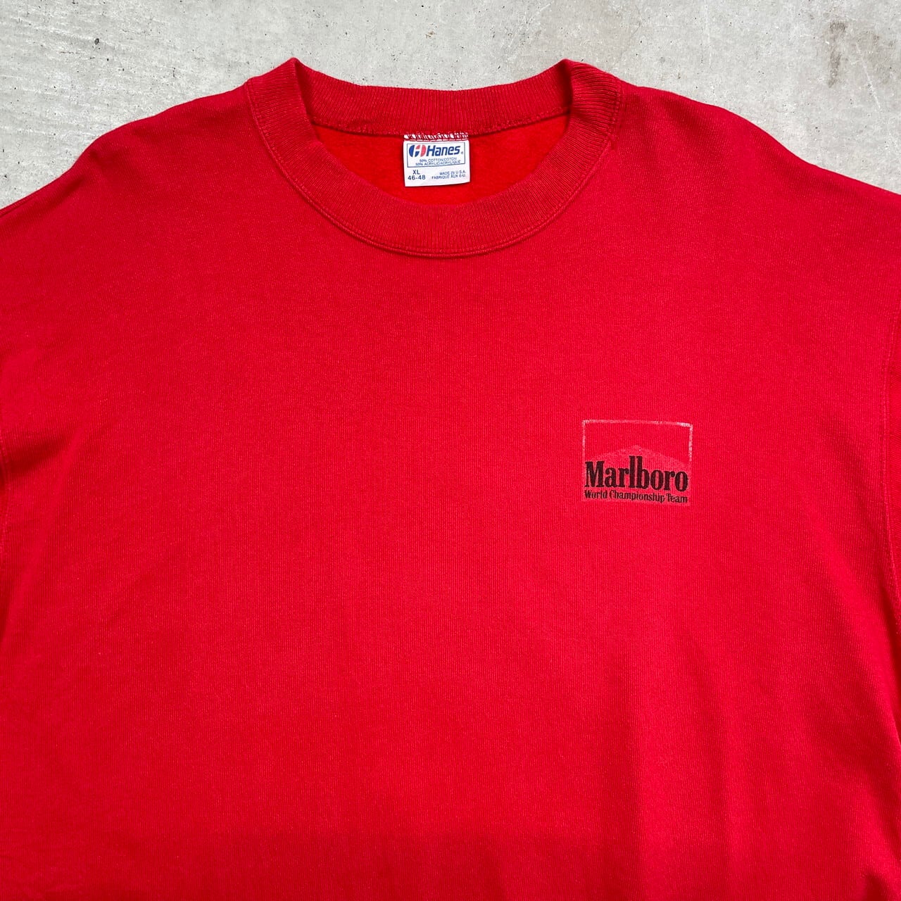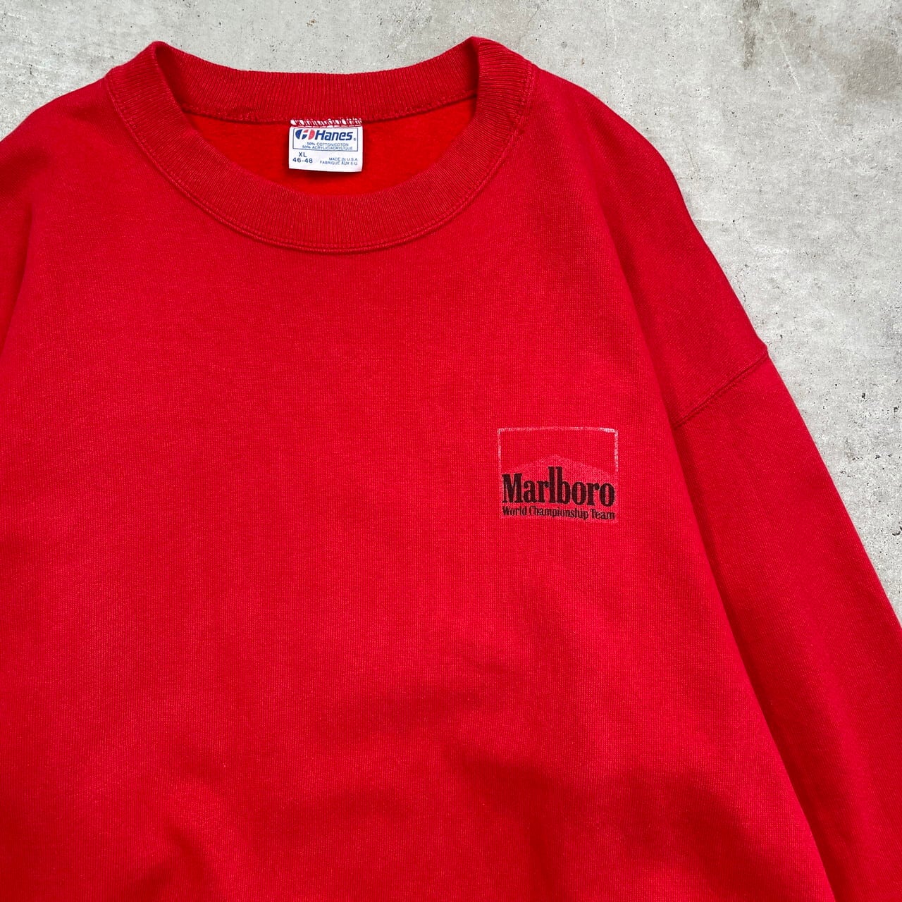 80年代 USA製 Hanes ヘインズ Marlboro マルボロ スウェットシャツ 企業ロゴプリント メンズXL 古着 80s ヴィンテージ VINTAGE 赤色 【スウェット】/レッド