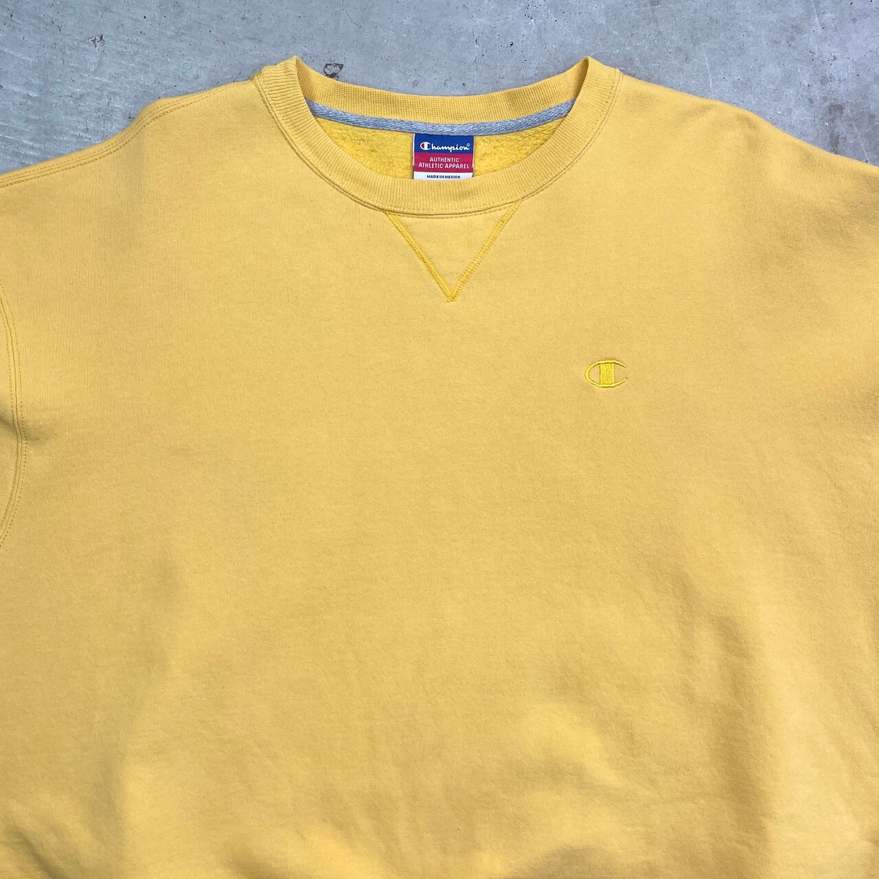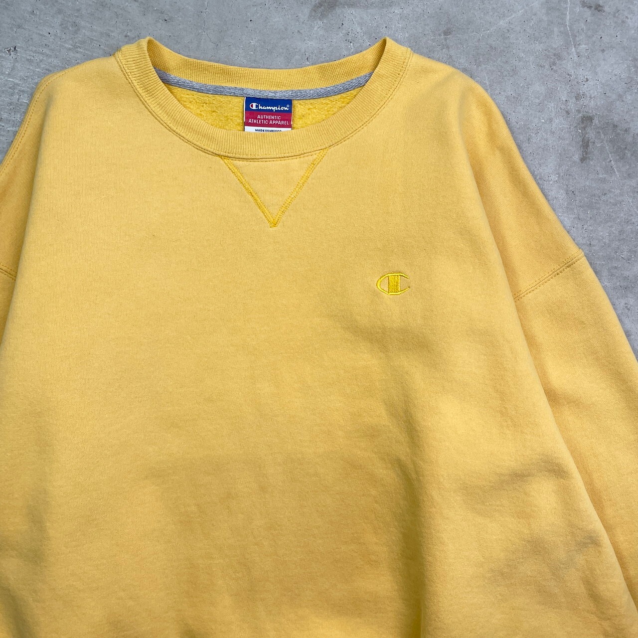■00年代 Champion チャンピオン スウェットシャツ ワンポイントロゴ刺繍 メンズXL 古着 00s ヴィンテージ VINTAGE Y2K トレーナー 前Vガゼット 黄色【スウェット】/イエロー