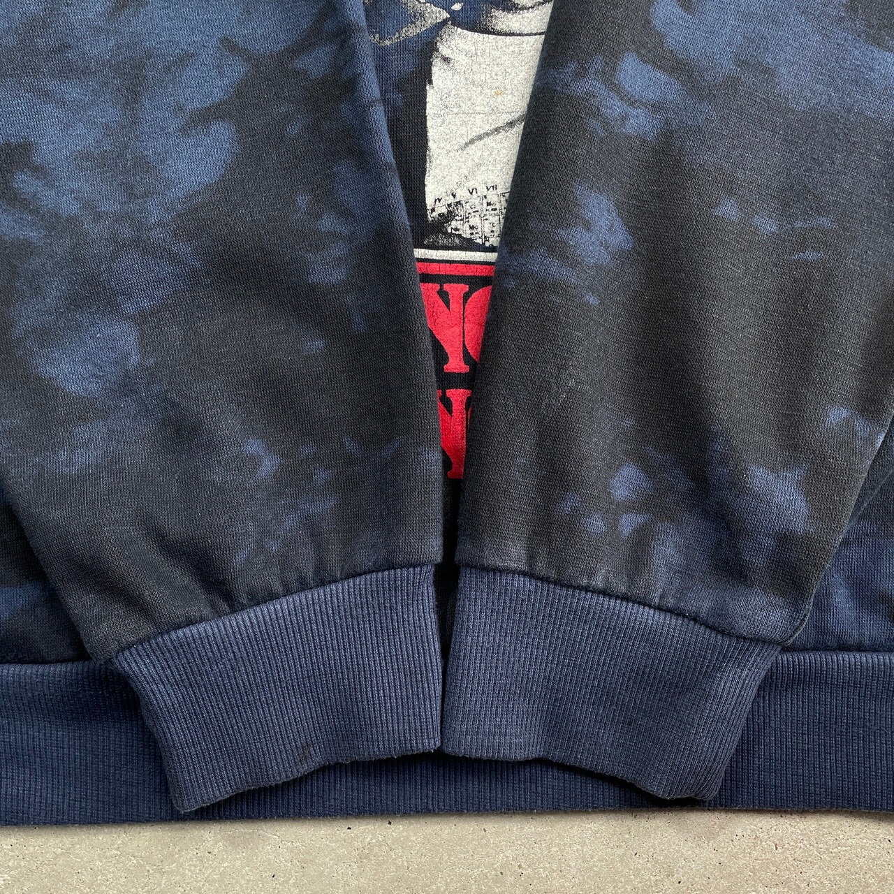 ■ストレンジャーシングス キャラクタープリント スウェットシャツ メンズL 古着 STRANGER THINGS ドラマ ムービー 映画 タイダイ ブルー ブラック 青色 黒色【スウェット】/マルチカラー