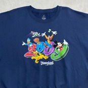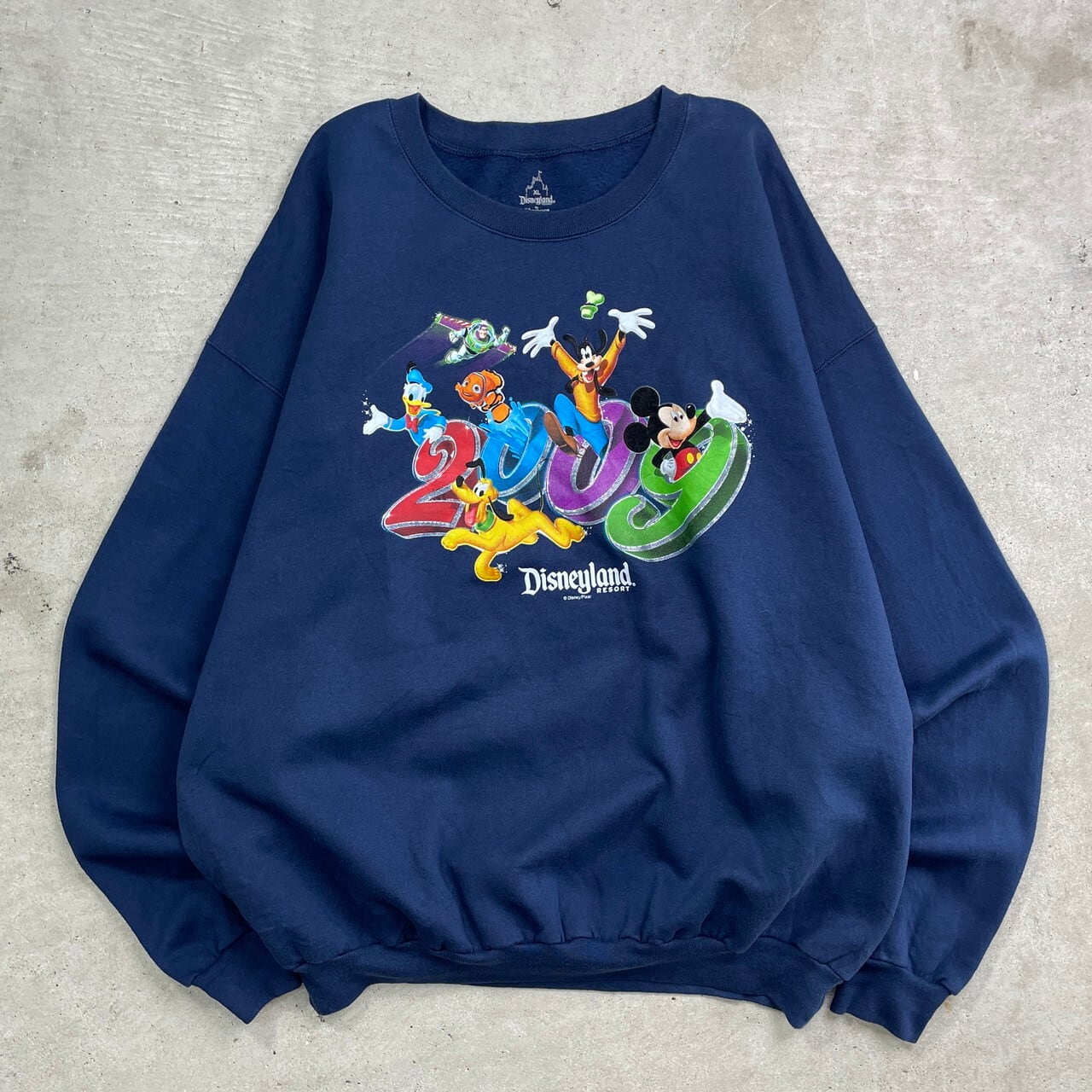■Disneyland RESORT by Hanes ディズニー キャラクタープリント スウェットシャツ メンズXL 古着 ミッキー グーフィー ドナルドダック プルート ニモ バズライトイヤー 紺色【スウェット】/ネイビー