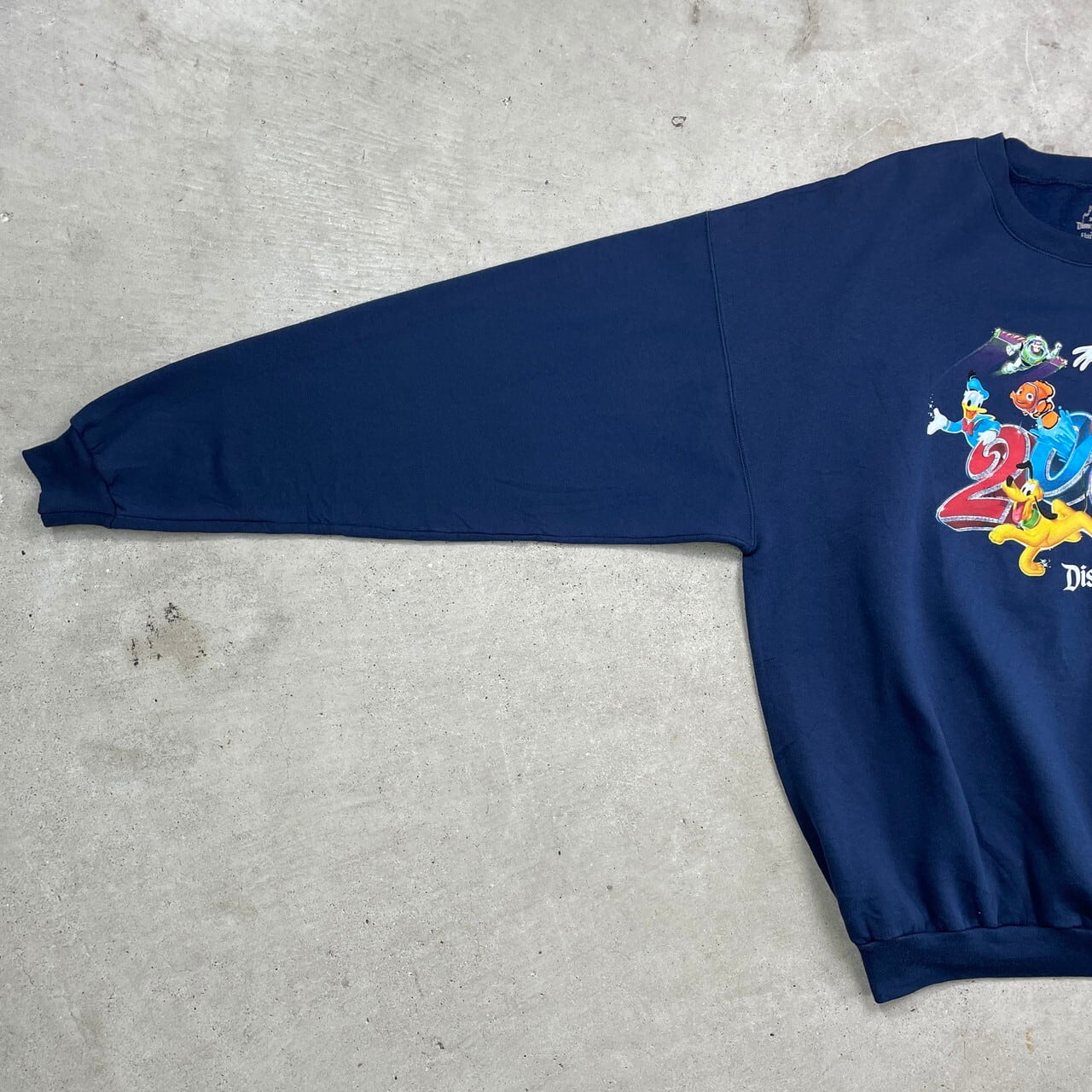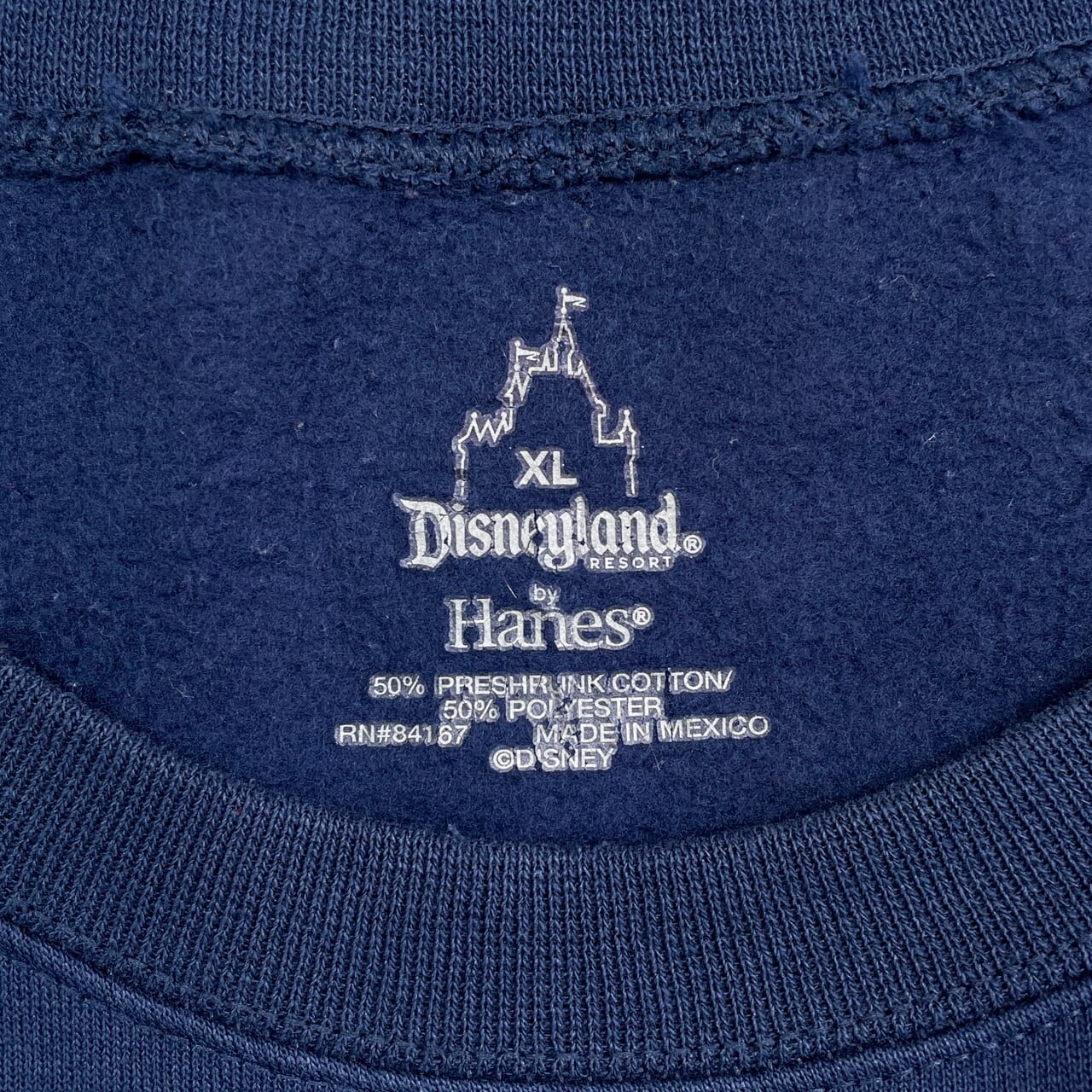 Disneyland RESORT by Hanes ディズニー キャラクタープリント スウェットシャツ メンズXL 古着 ミッキー グーフィー ドナルドダック プルート ニモ バズライトイヤー 紺色【スウェット】/ネイビーSS30