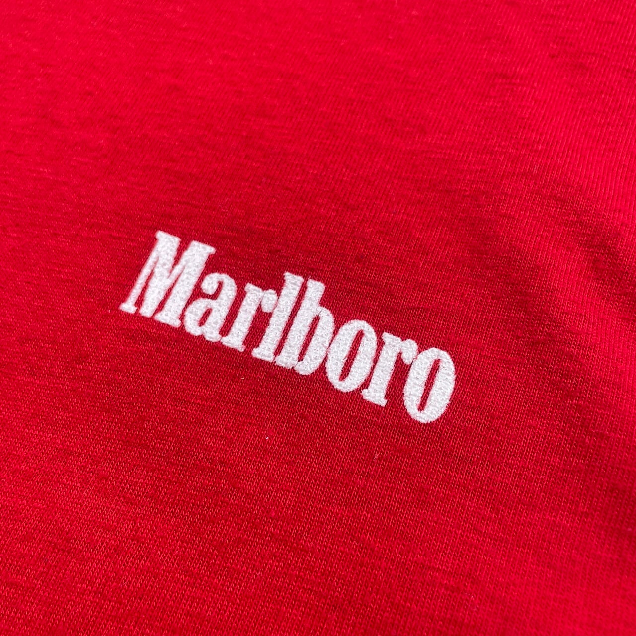 70年代 USA製 Marlboro マルボロ ロゴ プリントTシャツ メンズM相当 古着 70s 裾シングルステッチ ヴィンテージ VINTAGE 赤色【Tシャツ】/レッド【SS50】