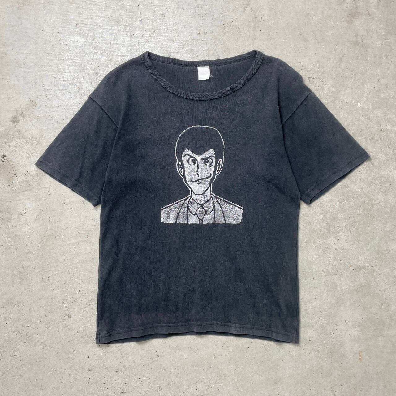 ルパン三世 キャラクター プリントTシャツ メンズS相当 レディース 古着 ヴィンテージ VINTAGE 漫画 アニメ フェードブラック 黒色【Tシャツ】/ブラック