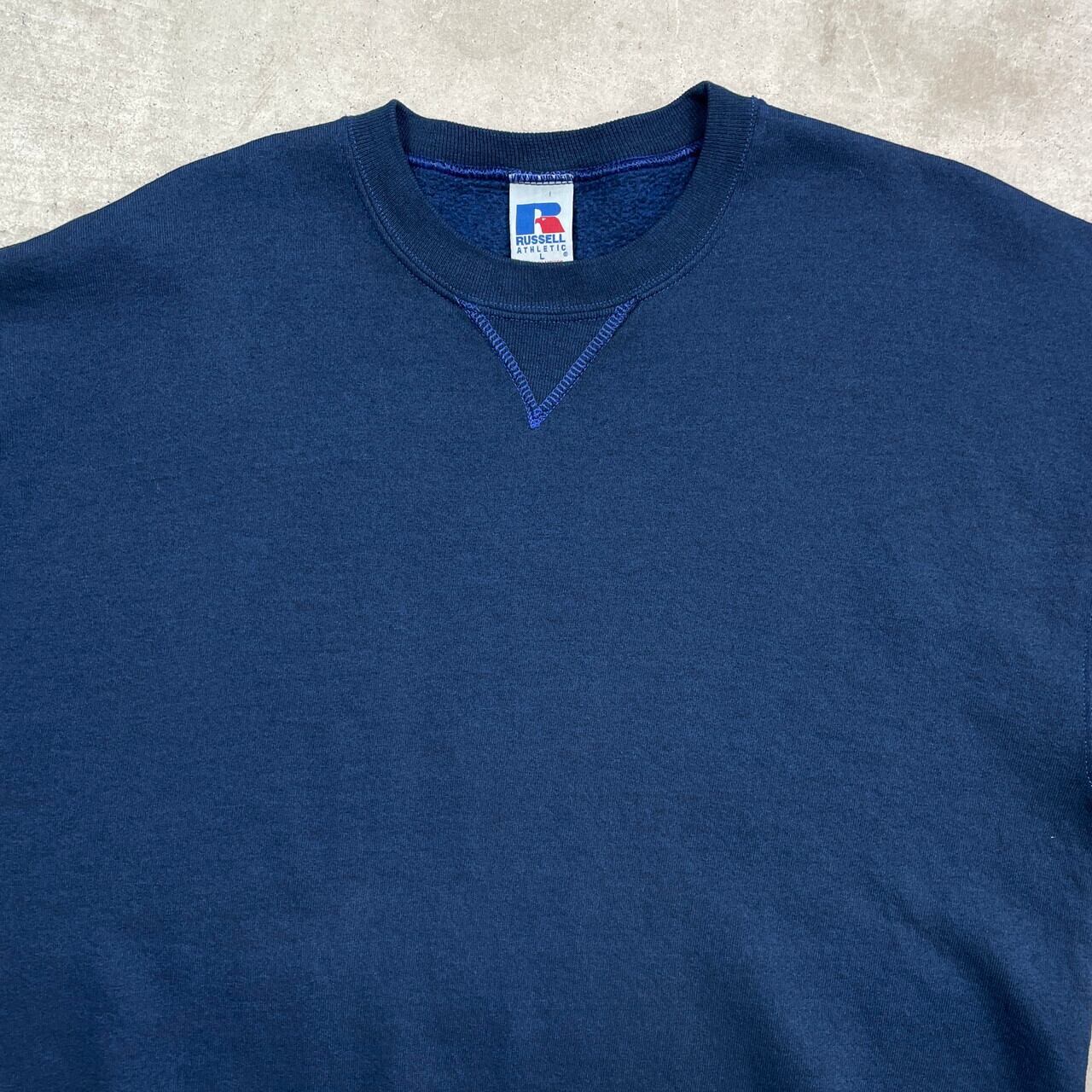 00年代 RUSSELL ATHLETIC ラッセル ブランクスウェットシャツ 後染め 無地 メンズL 古着 00s Y2K VINTAGE ヴィンテージ アメカジ トレーナー 前Vガゼット ダークネイビー 紺色【スウェット】/ネイビーSS30